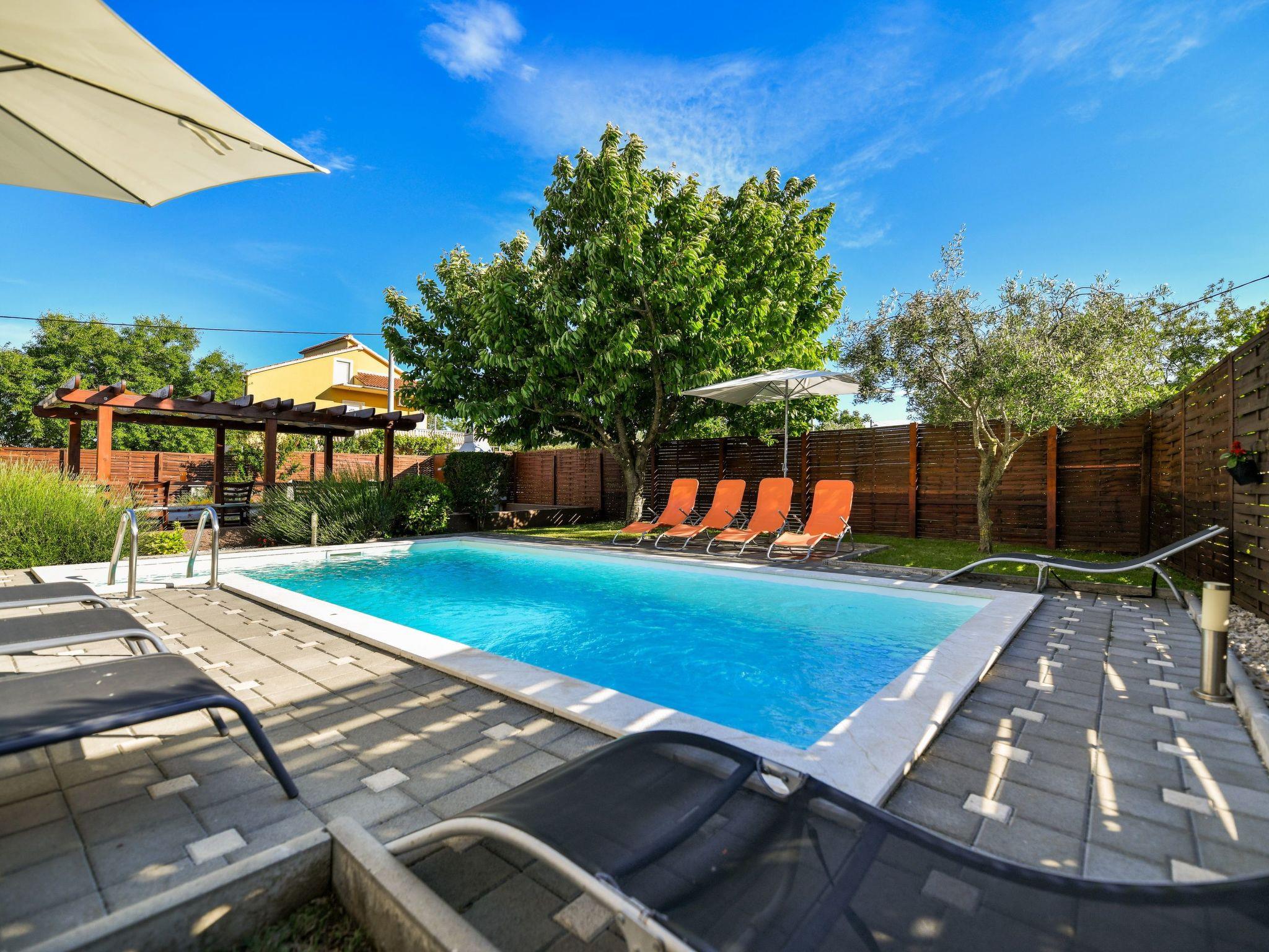 This elegant, only recently in 2010 newly built holiday villa is nestled in a green 1,000 square meter plot of land in a rural setting. The nearest beaches are in Sv. Petar and Biograd. Biograd is a town rich in historical heritage and lots of restaurants. The sea and beach is only 3 km away.Fully enclosed, six-bedroom holiday villa with a private illuminated swimming pool and large terrace with a traditional stone grill