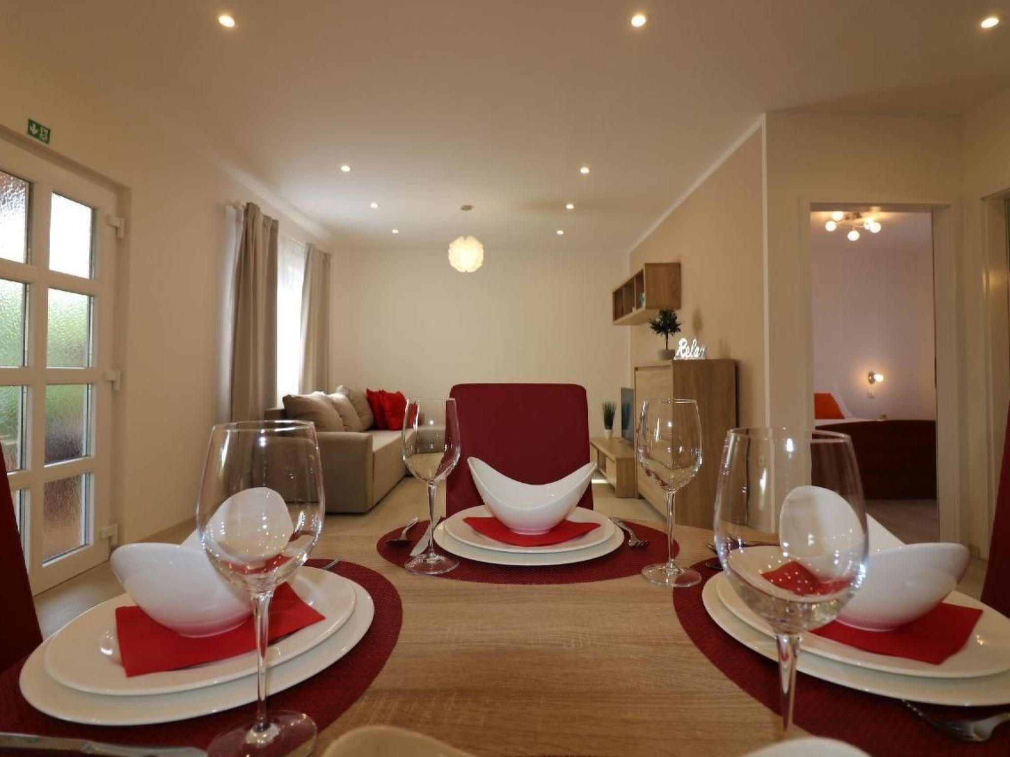 Outside you will find a lovingly tended, fenced garden with lawn and an orchard as well as a sunny sunbathing lawn. The saltwater pool (9 x 4 m), which is available from April to mid-October, promises refreshing moments. There is garden furniture and a communal barbecue for cosy evenings outdoors. The covered terrace with patio furniture invites you to dine al fresco, while a private car park is at your disposal.