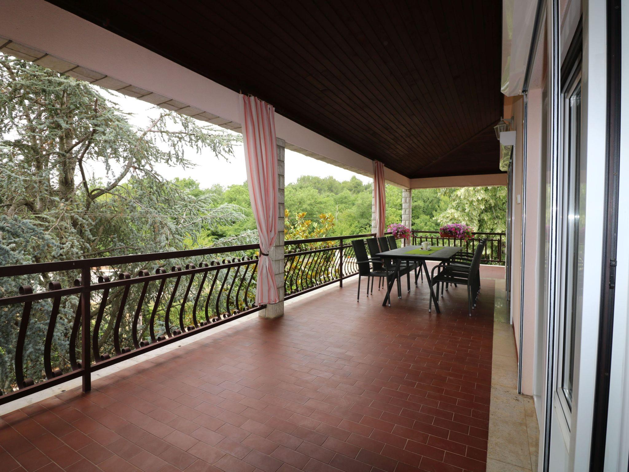 The impressive 5000m2 fenced plot of the complex boasts a beautifully landscaped garden with flowers and olive trees, covered parking for several cars, a brick barbecue area with garden furniture and a secluded 50m2 pool with sun loungers surrounded by greenery. The owner family welcomes you on the ground floor of the house, which guarantees a personal and familiar atmosphere.