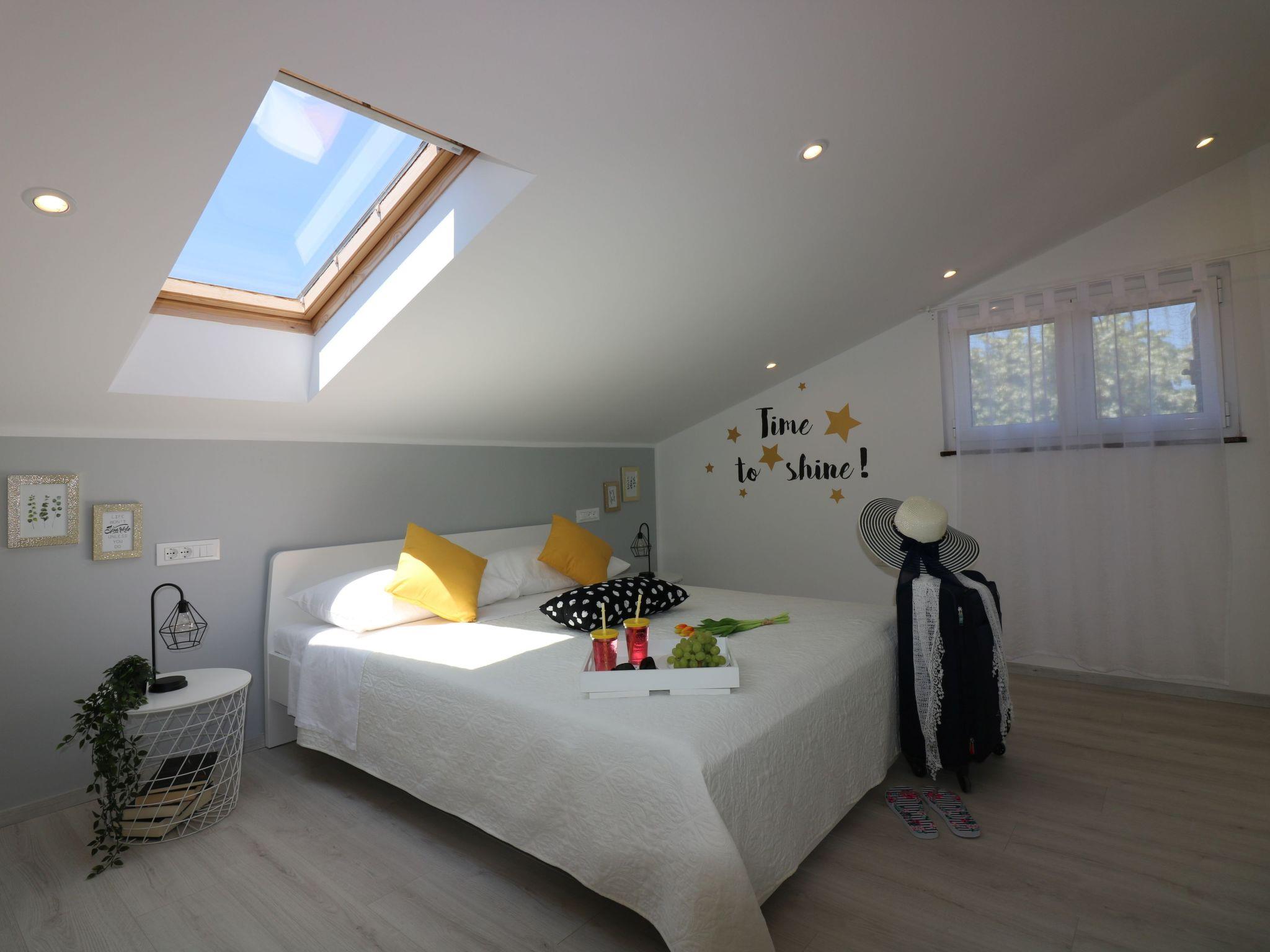 The Luna holiday flat, a spacious accommodation ideal for up to 8 guests, is spread over two floors on the 1st floor. It has a living space of 190 square metres. On the lower floor, guests will find a spacious living room with a dining area and access to a 40sqm balcony with garden furniture, a fully equipped kitchen, a double bedroom and a bathroom with shower/WC. The upper floor accommodates three further double bedrooms and a bathroom with shower/WC as well as a cosy lounge suite in the hallway. Fully air-conditioned and equipped with WLAN, this holiday flat offers every comfort.