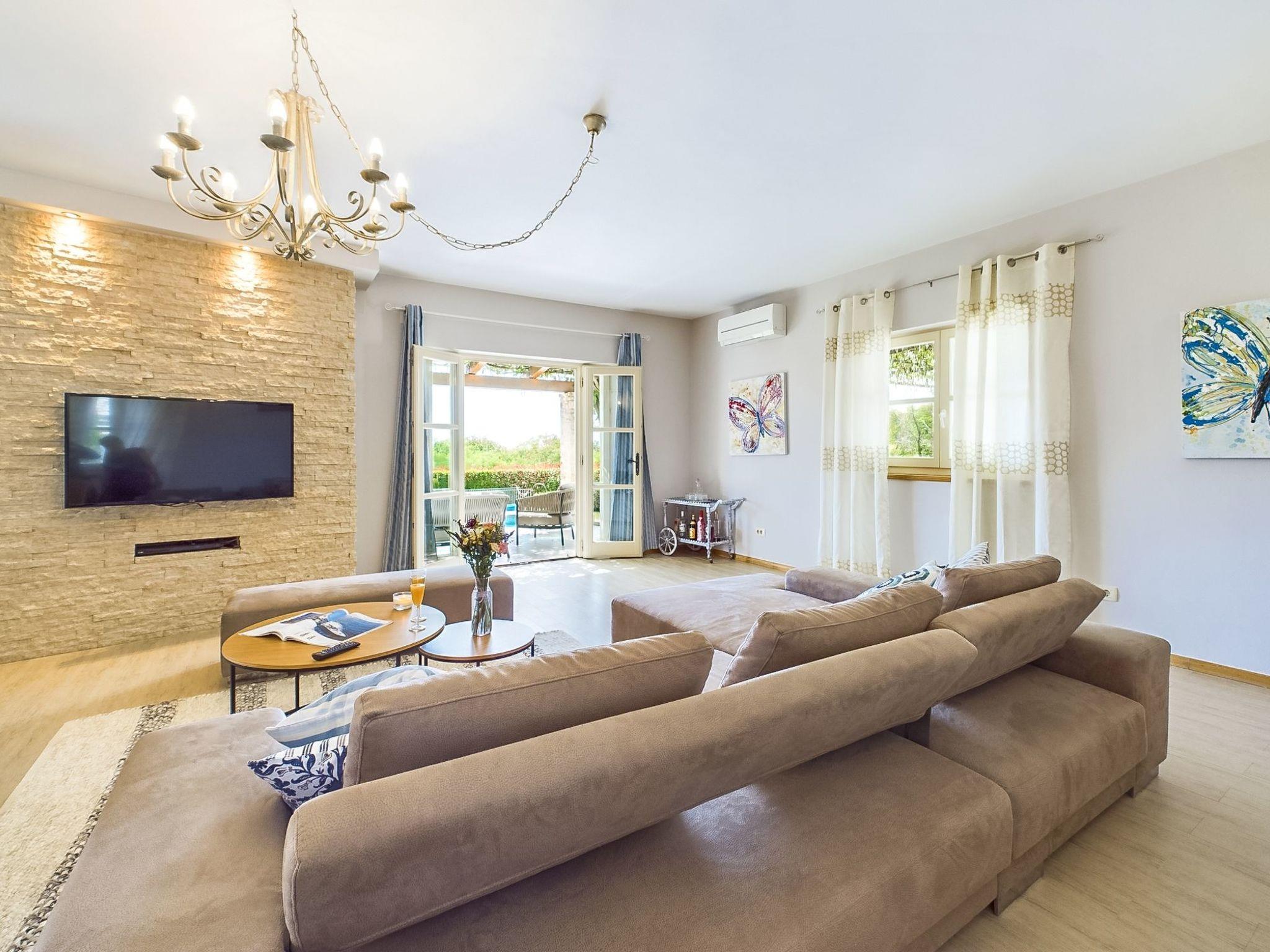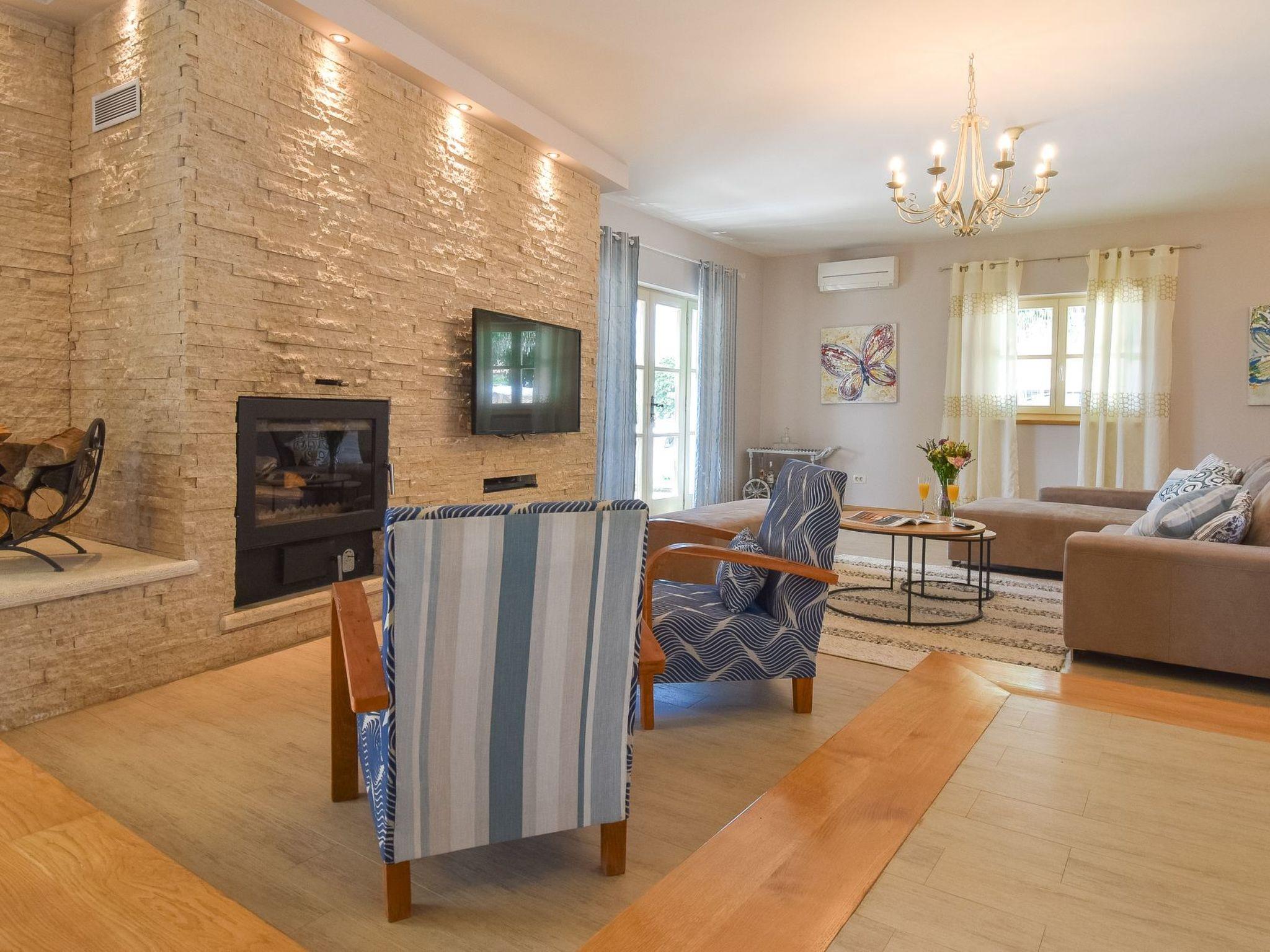 in the whole house there is free internet, the whole house is air-conditioned in total there are 3 TVs swimming pool heated in spring and autumn fireplace heating