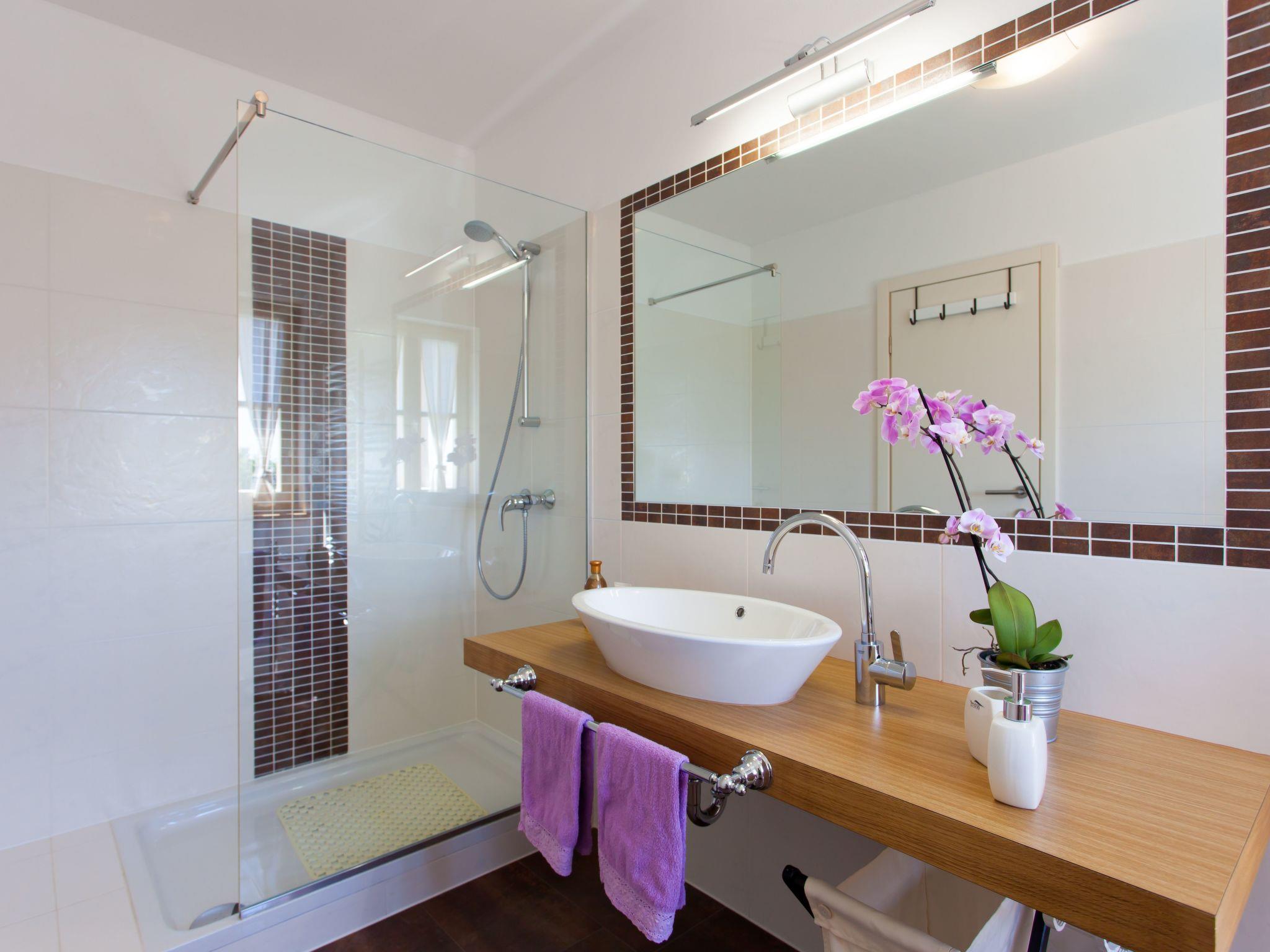 Terrace with garden furniture Dining table Private heated swimming pool 11m x 5m (depth from 0,4m - 1,5m) Barbecue with outdoor kitchen Bathroom with shower and toilet