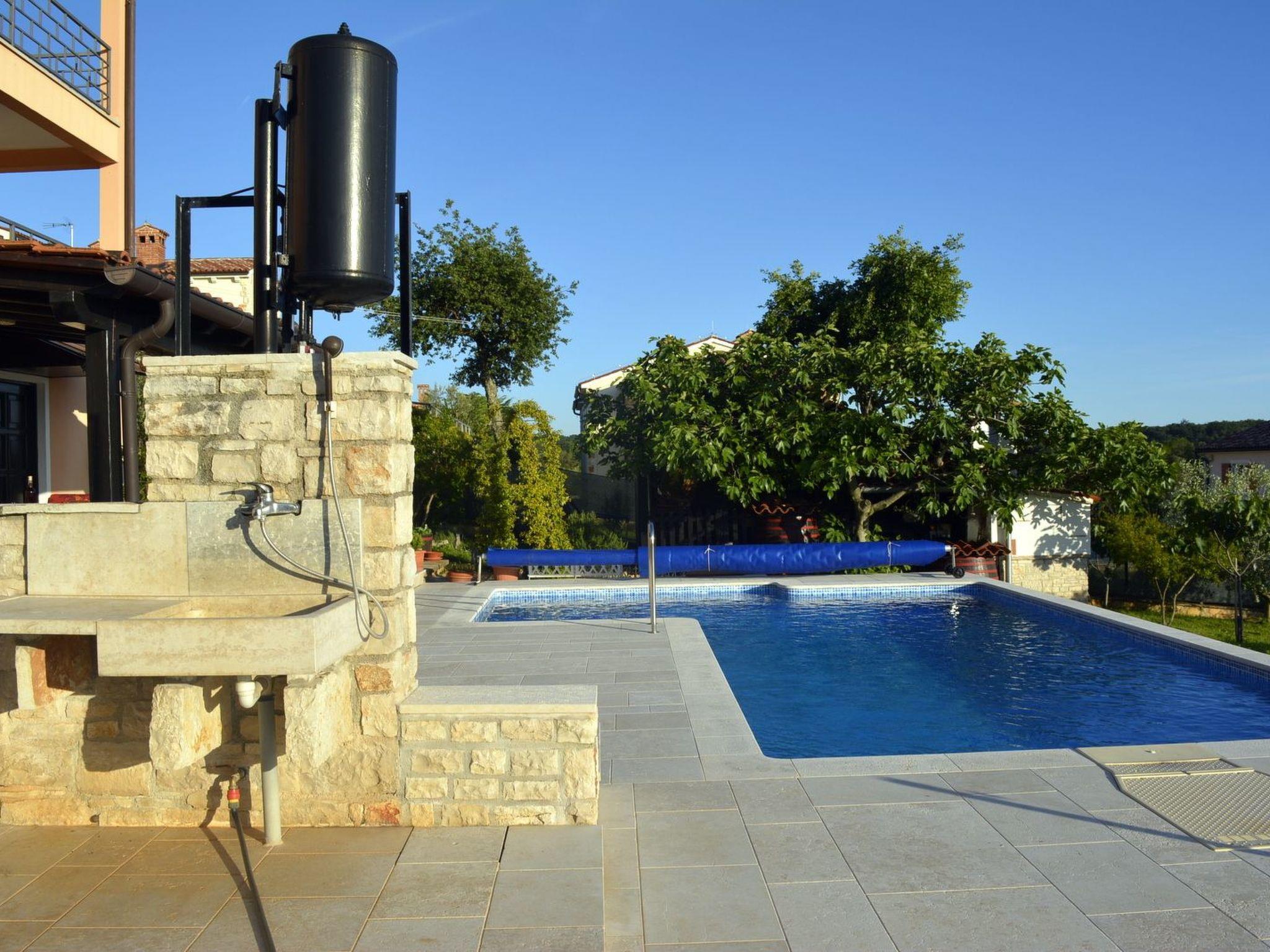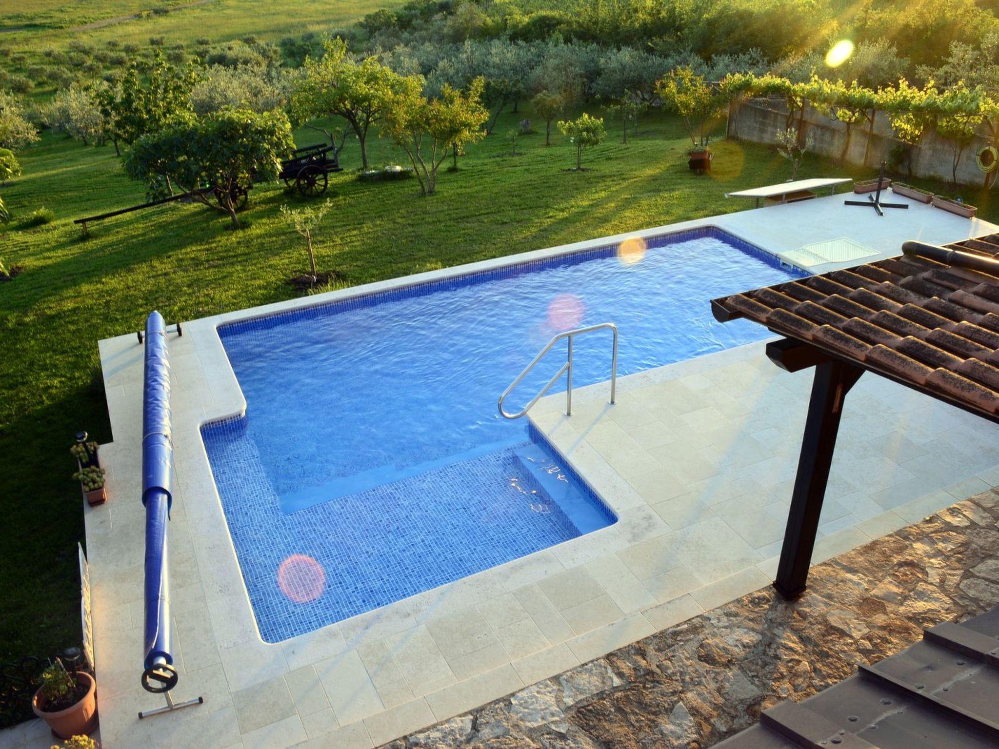 The detached house is situated on the edge of the village and offers beautiful views of nature and the town of Funtana. It has 2 holiday flats, each for 2 persons. The house offers its guests a covered car park for 2 cars in the yard, a well-kept garden with olive trees, a 32m2 pool with sun loungers, barbecue and garden furniture.