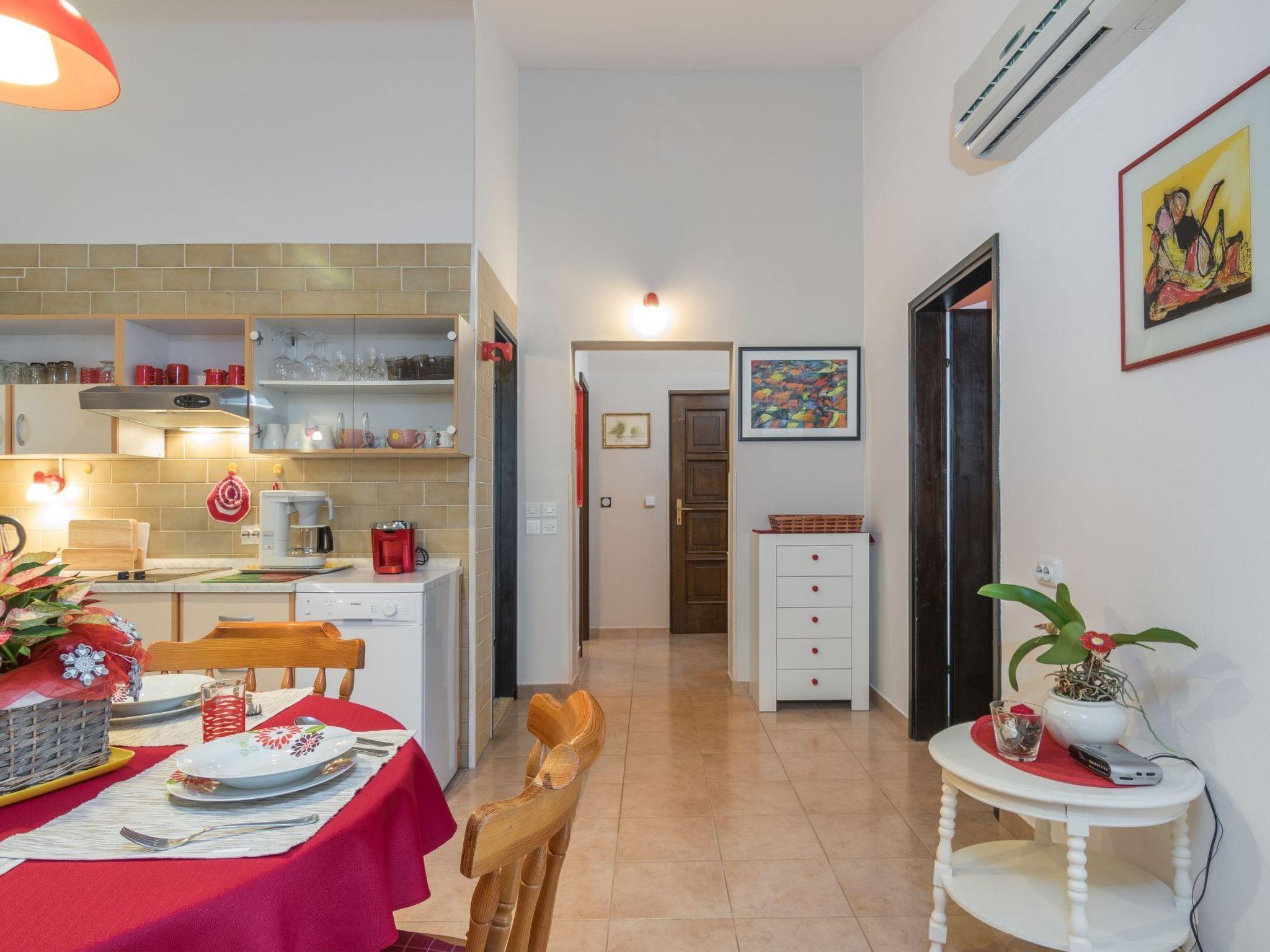 Flat Natalia 2 for 2 persons is located on the 1st floor of the house on a 47m2 large area and has a kitchen-living room with dining table and couch, bathroom with shower/WC, separate toilet, a bedroom with double bed and covered balcony with seating and enchanting view. Air conditioning and WLAN are available and included in the price.