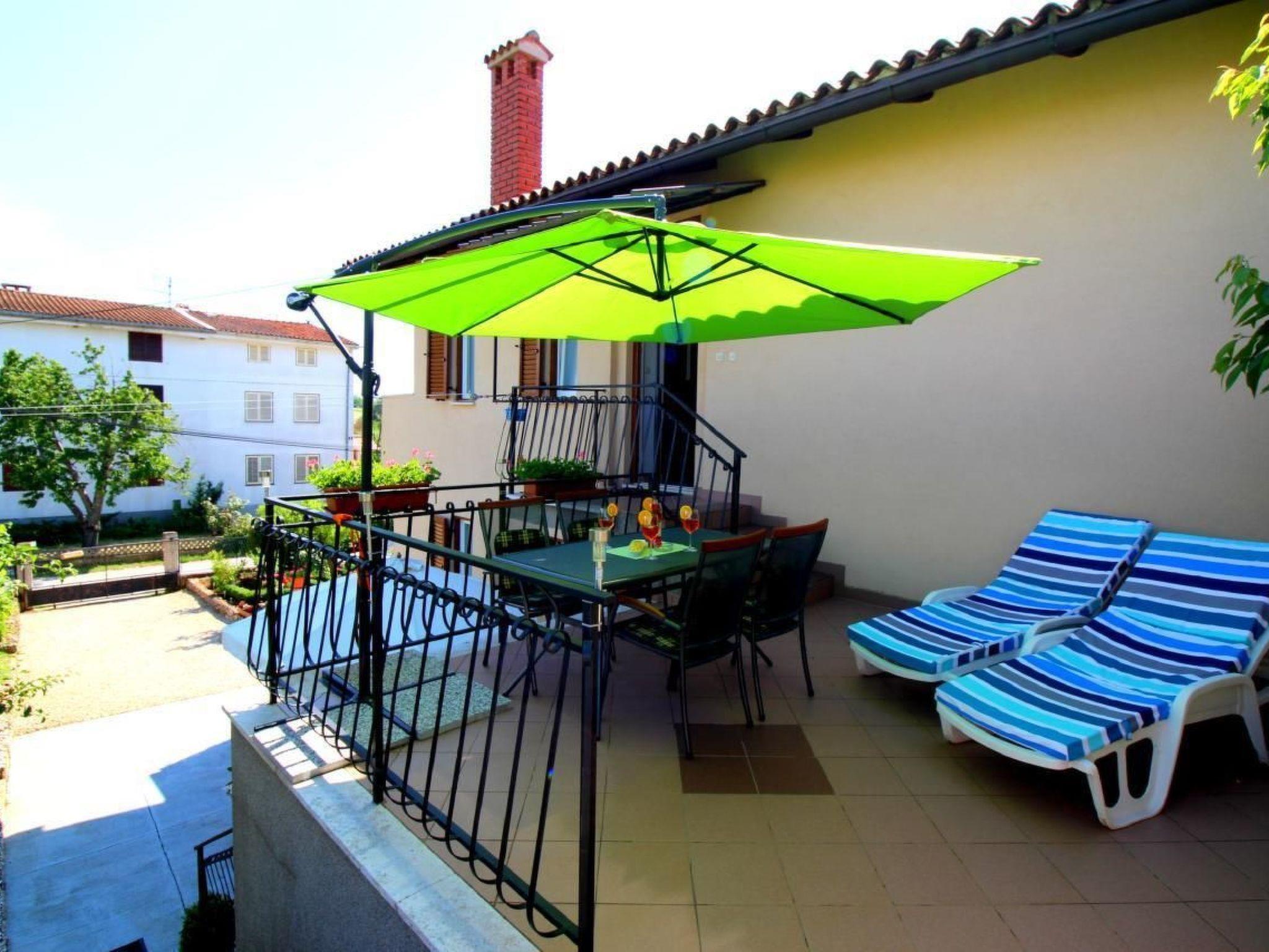 The outdoor area of this beautiful property invites you to enjoy the peaceful atmosphere of Istria to the full. The shared garden, equipped with sun loungers and a gas barbecue, provides the perfect backdrop for cosy evenings in the open air. The balcony with a seating set allows you to enjoy relaxing moments in the private atmosphere of your holiday flat.