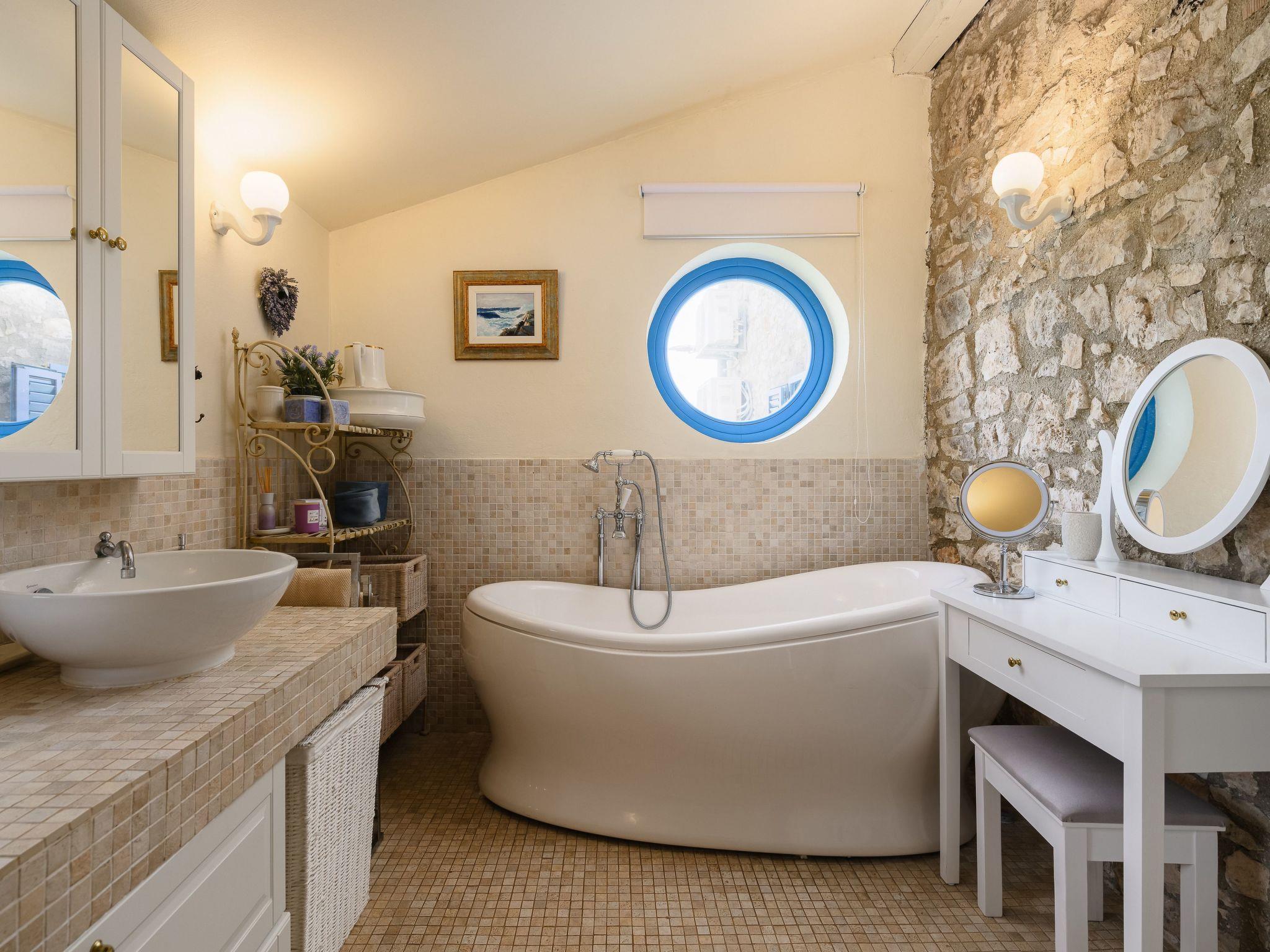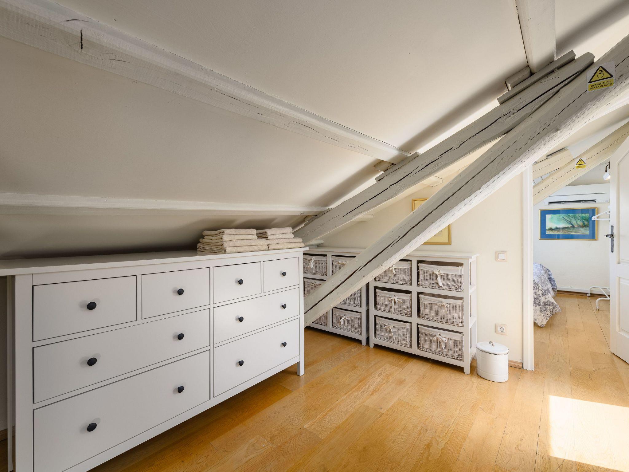 On the top floor there are two further bedrooms with double beds and panoramic views of the sea and the green hinterland.