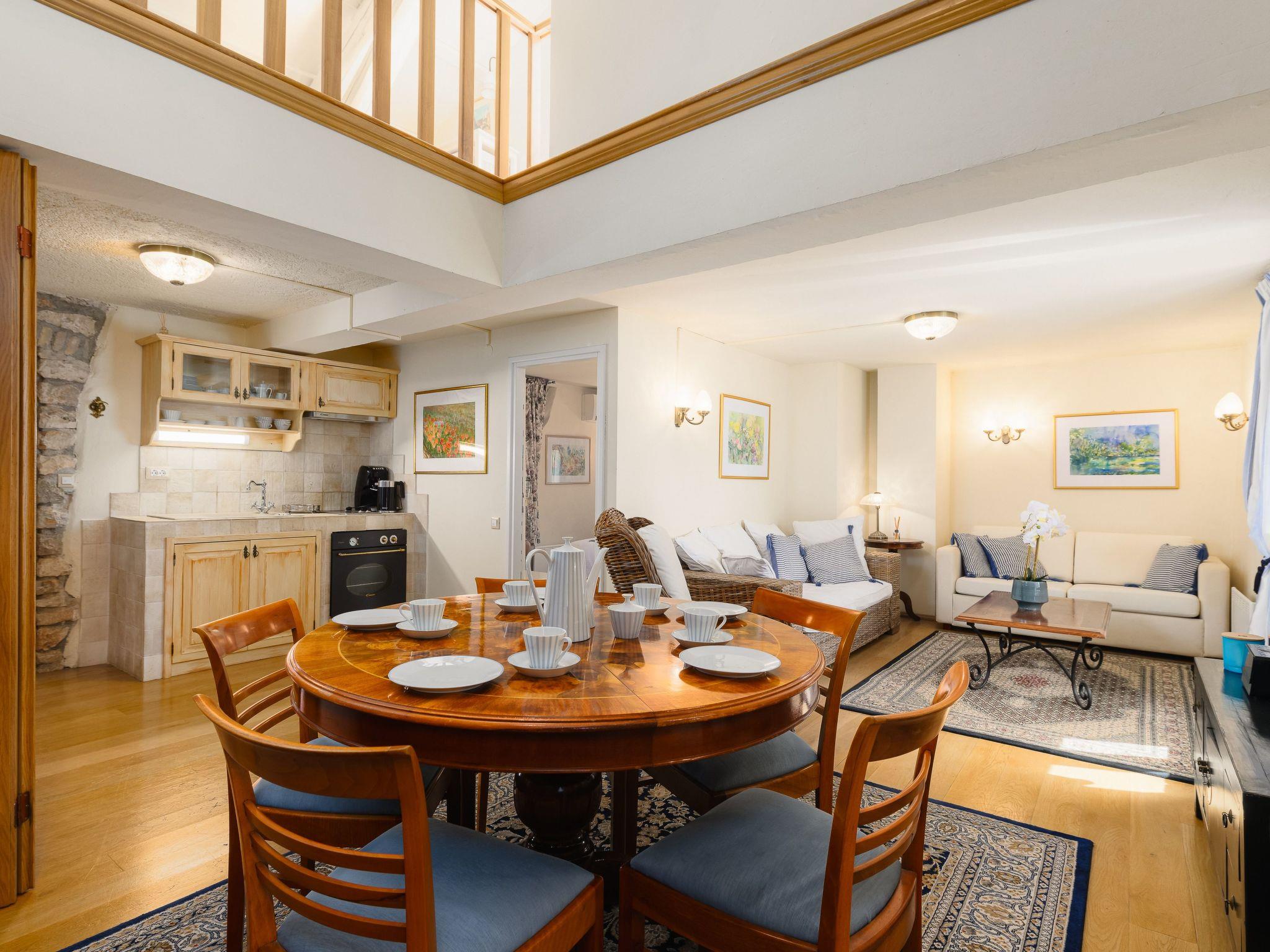 On the 1st floor there is a living room with kitchenette, dining room and sitting area - all in one room with access to a covered balcony with seating and beautiful views. On the first floor there is also a bedroom with a double bed and a bathroom with a shower and hydromassage bath.