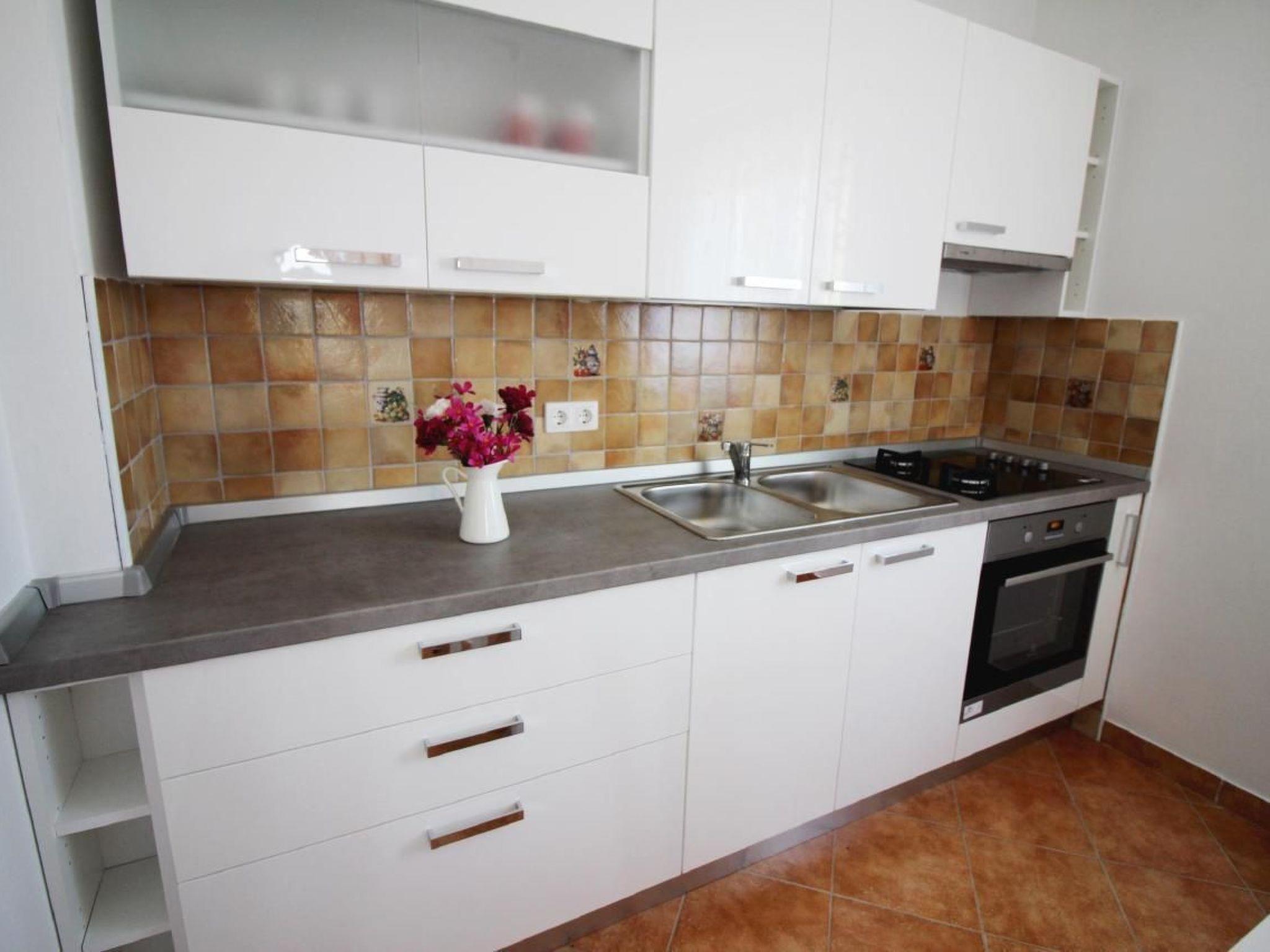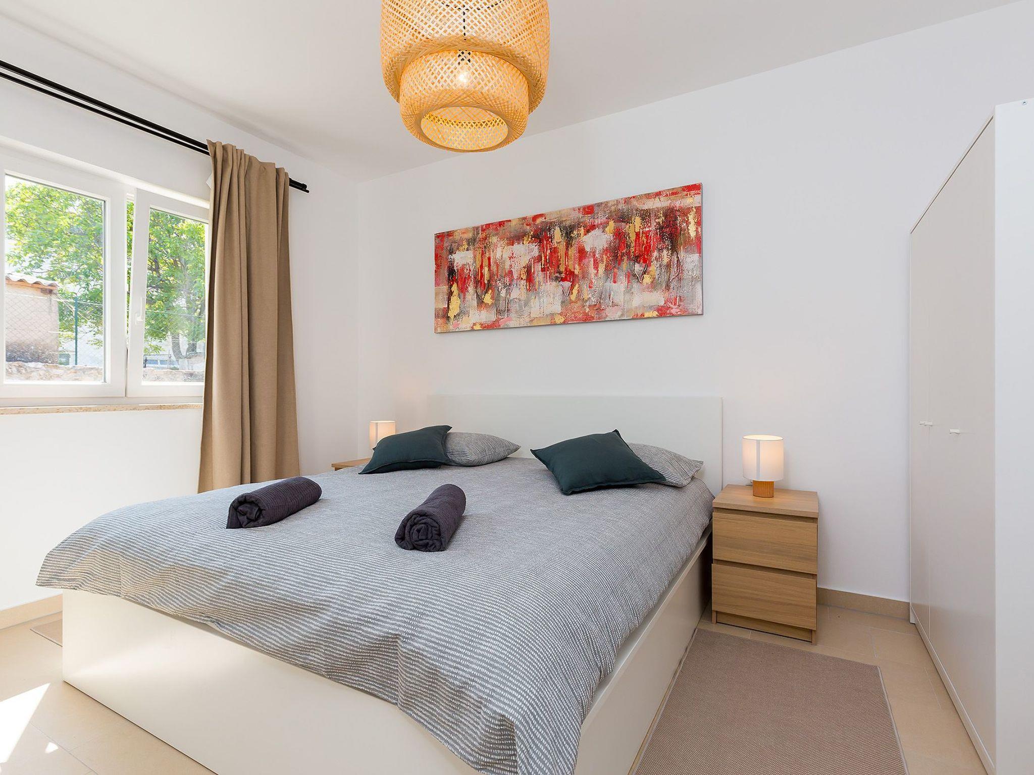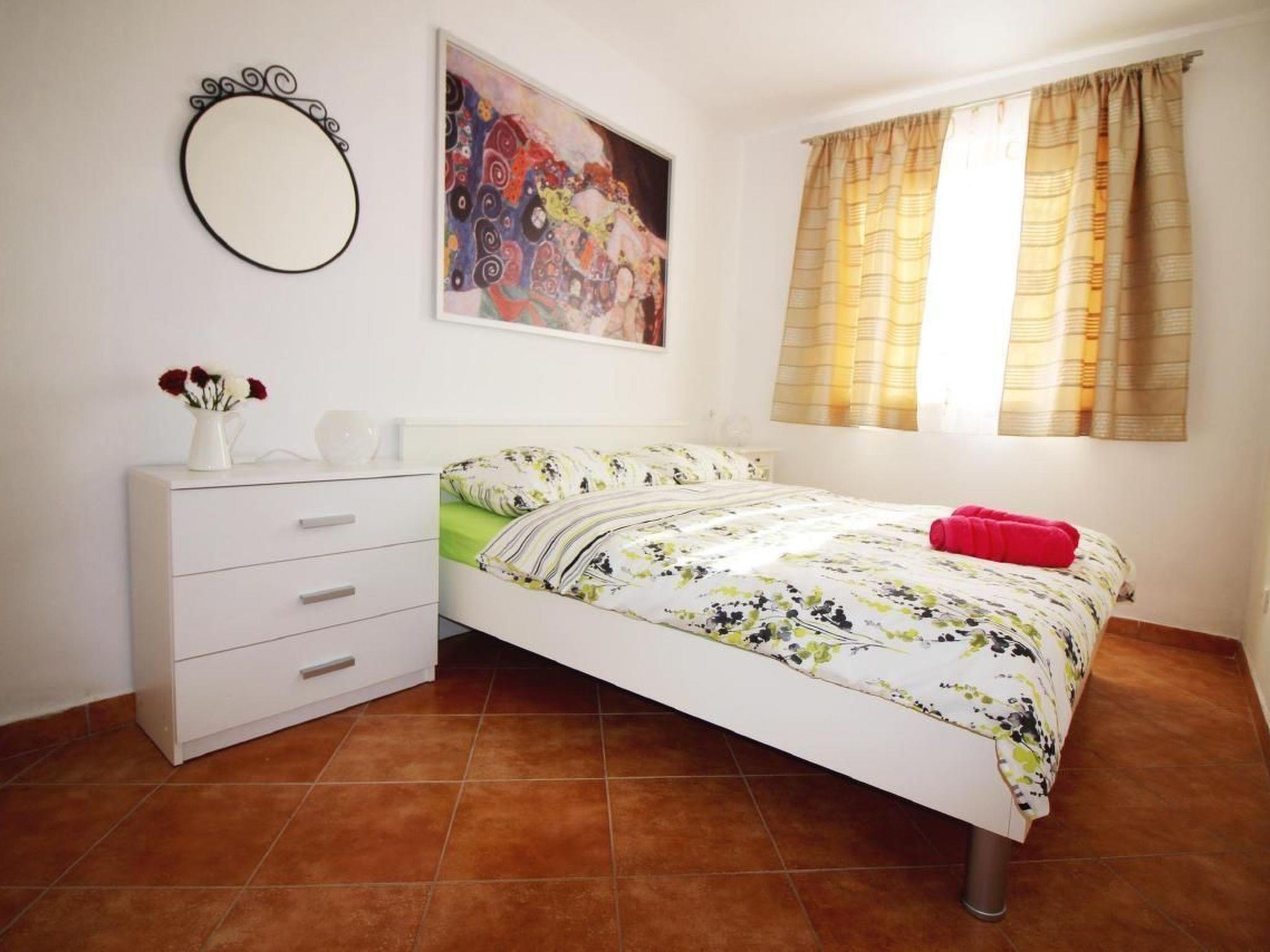 In the upper part of the house is the modern flat for 4-6 persons and consists of a living room with fully equipped kitchen, dining table, pull-out couch and covered balcony with beautiful sea view, two bedrooms and bathroom with shower/WC. Air conditioning and WLAN are available on both floors and are included in the price