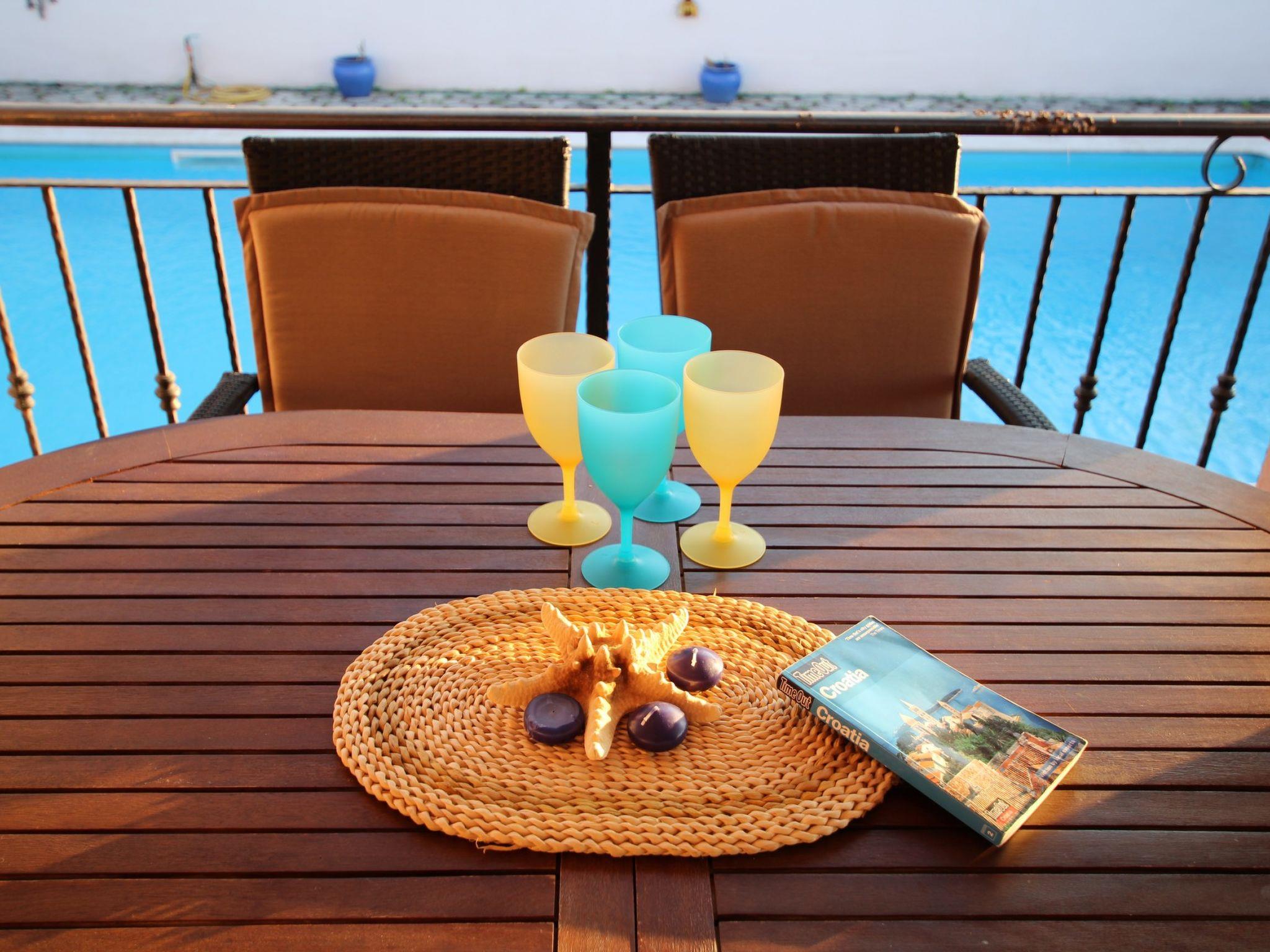 The house covers a 130 m2 ground floor with access to a 36 m2 pool with a depth of 115 cm to 170 cm.Three bedrooms are air-conditioned. One bedroom has a double bed. The second bedroom has two separate beds. The third bedroom has a bunk bed suitable for two children. The bathroom with shower, toilet and sink is located between the bedrooms, and there is also a separate toilet with a washing machine.The kitchen is equipped with a stove with 4 electric plates, an oven, a refrigerator with an icebox, a kettle and a coffee machine. A table and 6 chairs are located in the continuation of the kitchen, as well as the living room with direct access to the covered terrace and pool.The covered terrace is equipped with a table and chairs. There is a panoramic view of green olive groves and red Istrian fields.In the garden there is a charcoal grill and garden furniture with several deckchairs.Ideal for families!