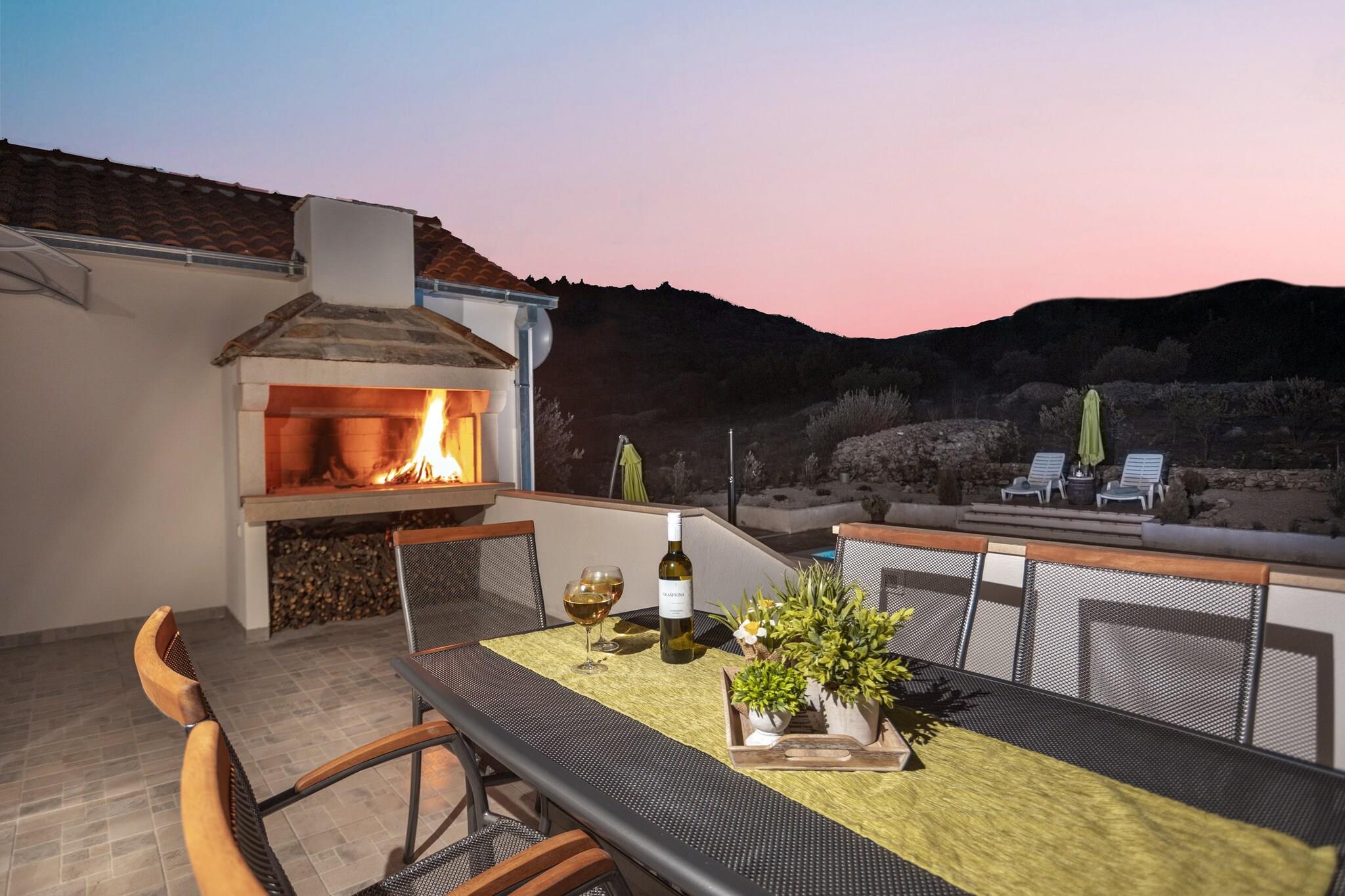 Feriehus med Ela ligger i en fredelig landsby i hjertet af øen Brac kaldet Dracevica. Ejendommen tilbyder privat opvarmet udendørs swimmingpool og rummelig terrasse med udendørs spiseplads. Rummelig have med basketballlegeplads, trampolin, tennisbord og grillfaciliteter er også tilgængelig, så som privat spabad. Bagageopbevaring før check-in og efter check-out er tilgængelig, så du kan udforske området lidt mere før afgang.Gratis privat parkering er tilgængelig på stedet, reservation er ikke nødvendig.Kæledyr er tilladt uden tillæg.Dette moderne feriehus med 3 soveværelser har gratis trådløs internetadgang, aircondition og LCD-kabel-tv. Køkkenet er fuldt udstyret og leveres med kombineret spiseplads og stue. Badeværelserne er udstyret med brusere og hårtørrer. Vaskemaskine og strygefaciliteter er til gæsternes rådighed. Poolen er opvarmet og omgivet af rummelig terrasse udstyret med udendørsmøbler, liggestole og parasoller. Rummelig have med basketballlegeplads, trampolin, tennisbord og grillfaciliteter er også til rådighed, så som privat varme kar.Feriehus Ela er beliggende i Dracevica, en ganske charmerende og fredelig landsby på øen Brac, kendt for sine mange vinmarker.Dracevicas gamle centrum er bygget i middelhavsstil med hovedtorvet i byens centrum og en række gader, der fører til husene.Busstationen ligger kun 100 m fra lejligheden, mens den nærmeste strand og apotek kan nås inden for 6 km. Det nærmeste marked kan findes inden for 250 m.Supetar færgehavn ligger 12 km fra ejendommen. Brac Lufthavn ligger 25 km derfra, mens Split Lufthavn ligger 52 km derfra.