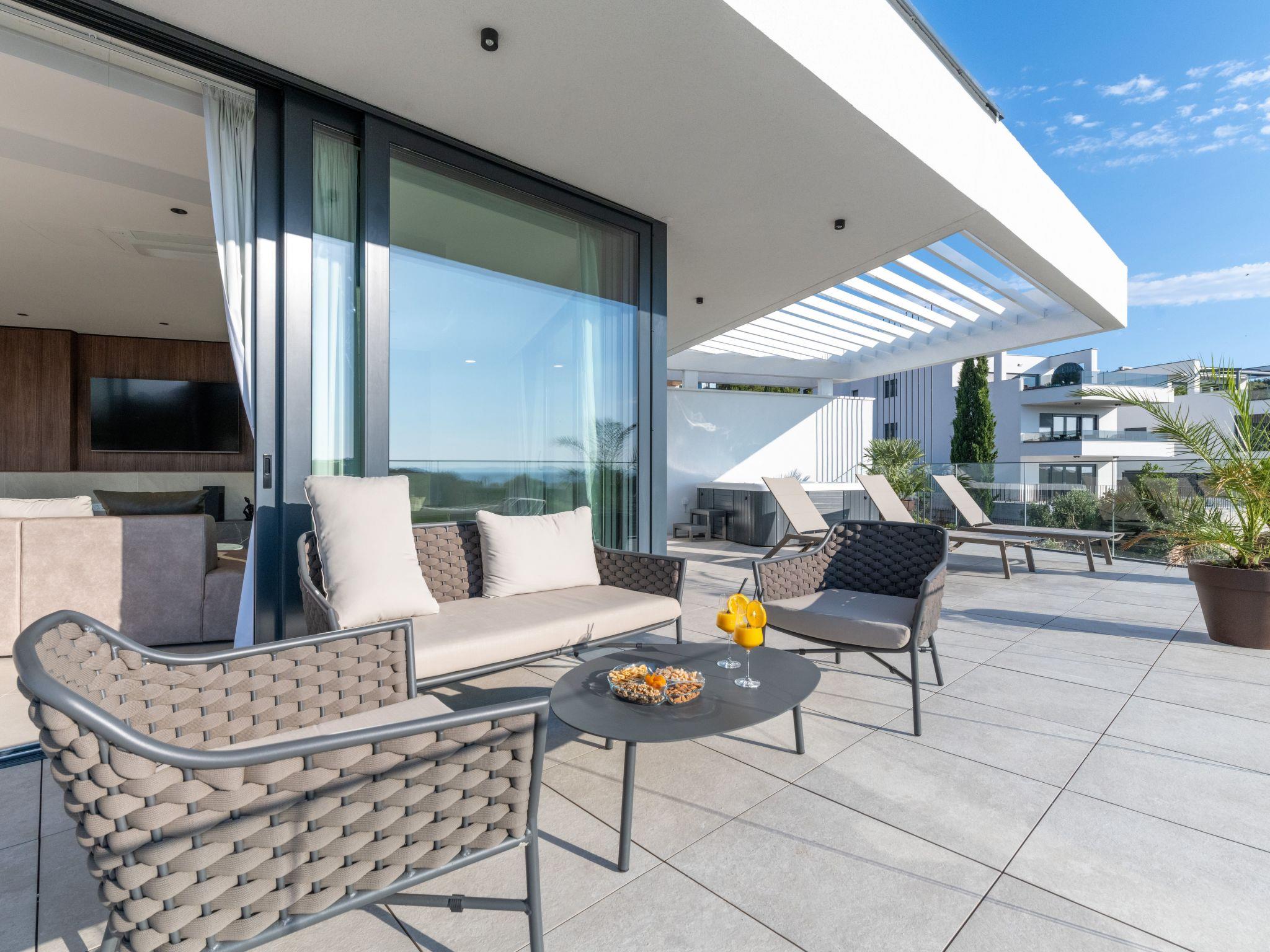 Step outside to discover a beautifully maintained garden that is exclusively yours to enjoy. The pool invites you to take refreshing dips or to simply lounge by its side on sunny days, while the terrace and balcony offer the perfect spots for outdoor dining or enjoying a quiet moment. The roof terrace provides an additional private outdoor space to relax and soak up the surroundings.