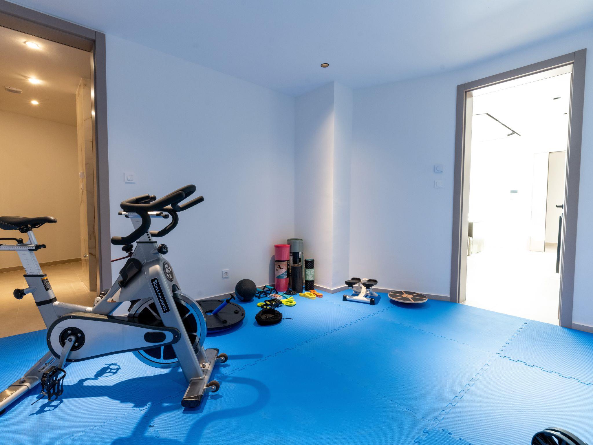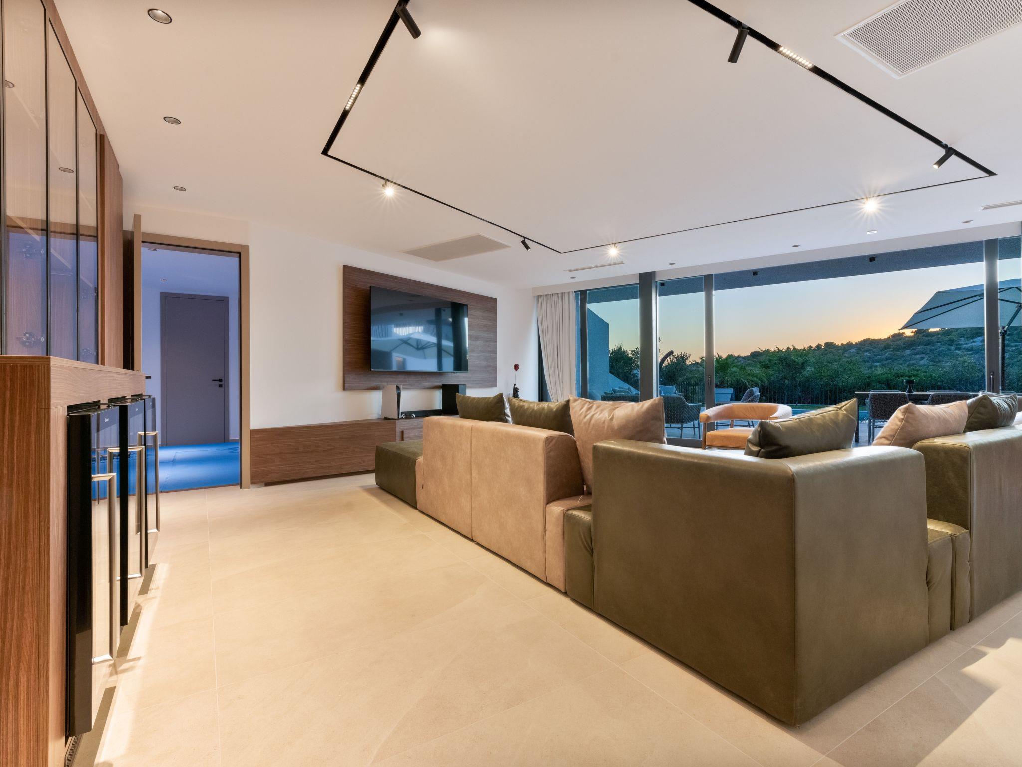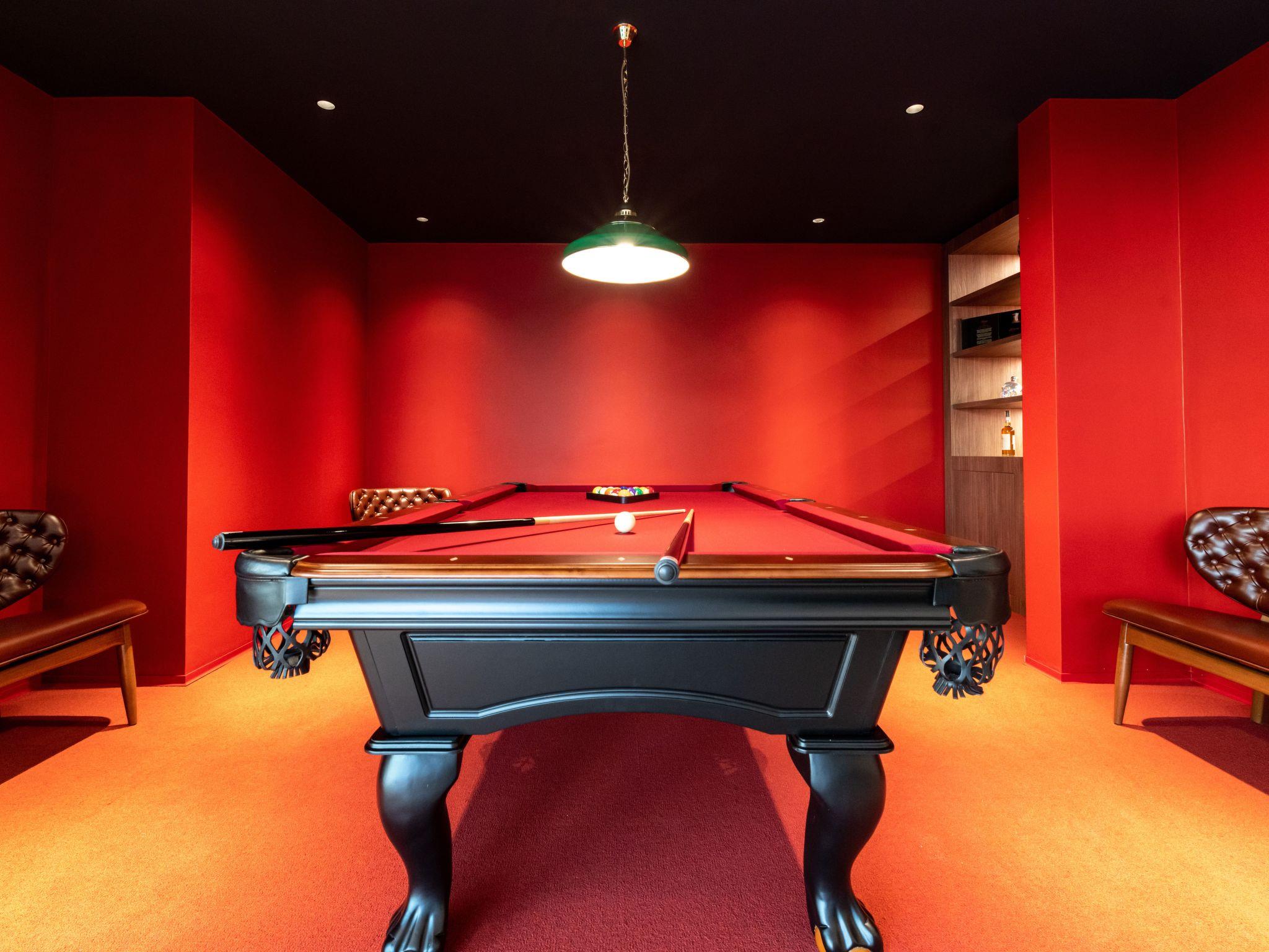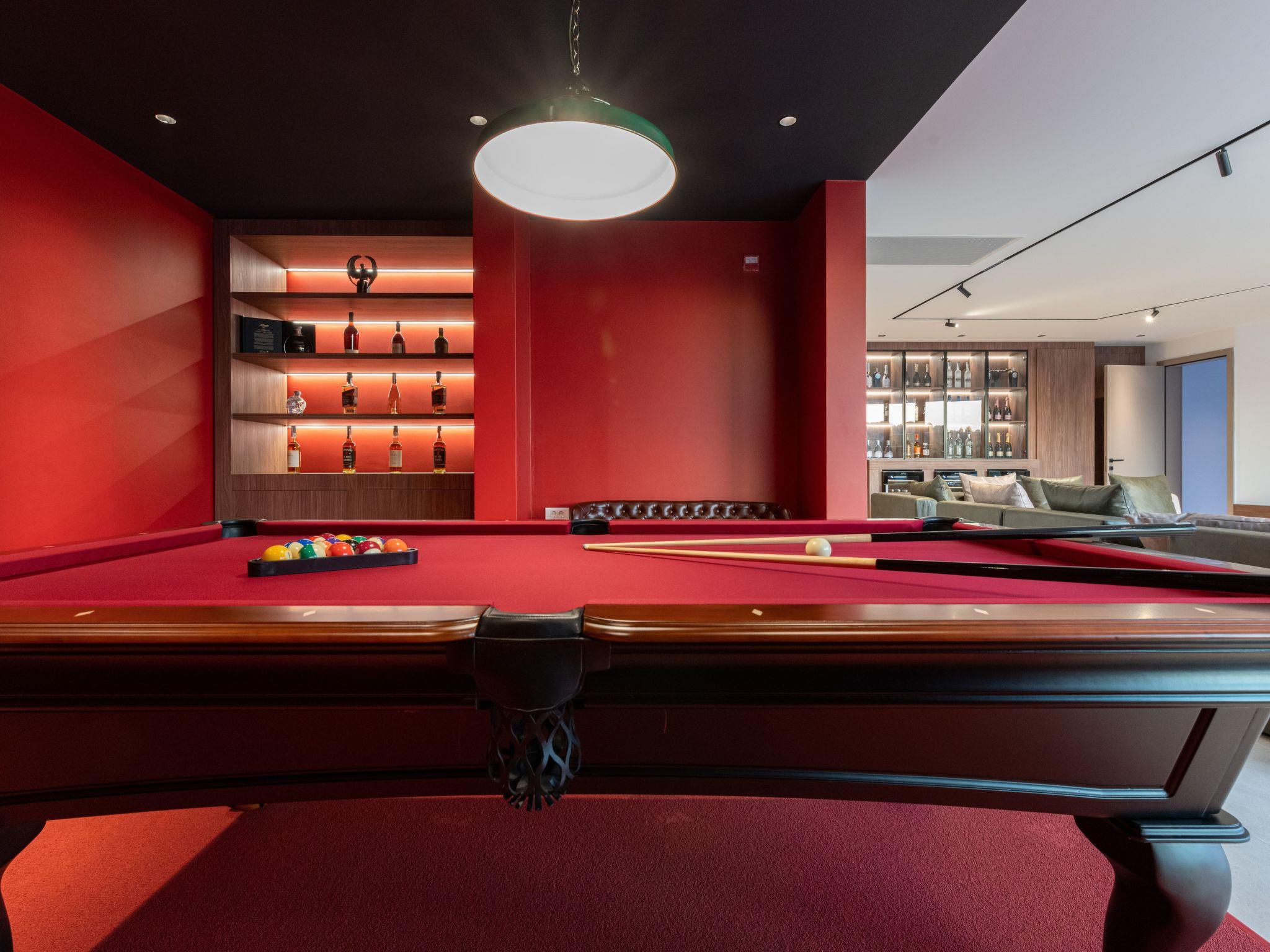 Inside, the villa boasts an array of amenities designed to pamper and entertain its guests. Every room is fitted with air conditioning and underfloor heating, ensuring a comfortable environment regardless of the season. The house comes fully equipped with a washing machine and clothes dryer for your convenience, as well as a dishwasher and coffee machine to make your stay as leisurely as possible. After an adventurous day, relax in the sauna, unwind in the jacuzzi, engage in some friendly competition at the billiards table, or simply enjoy the warmth of the fireplace.