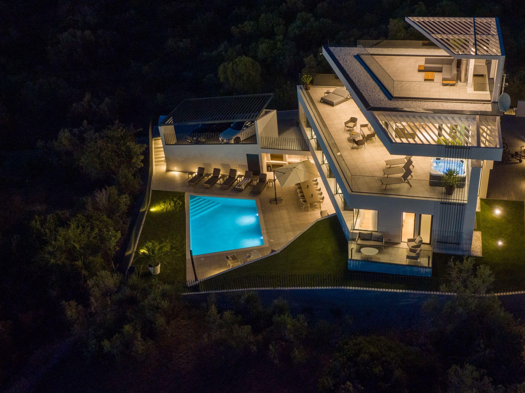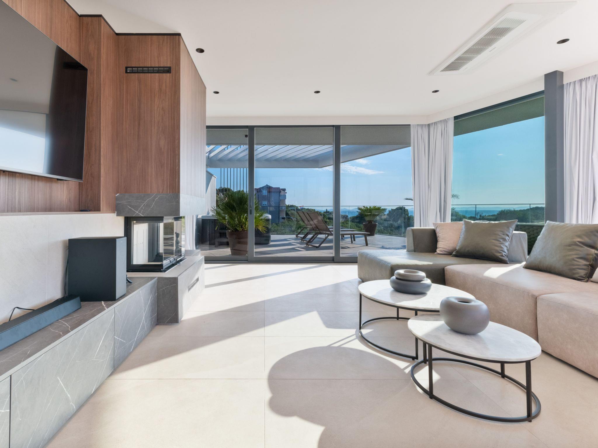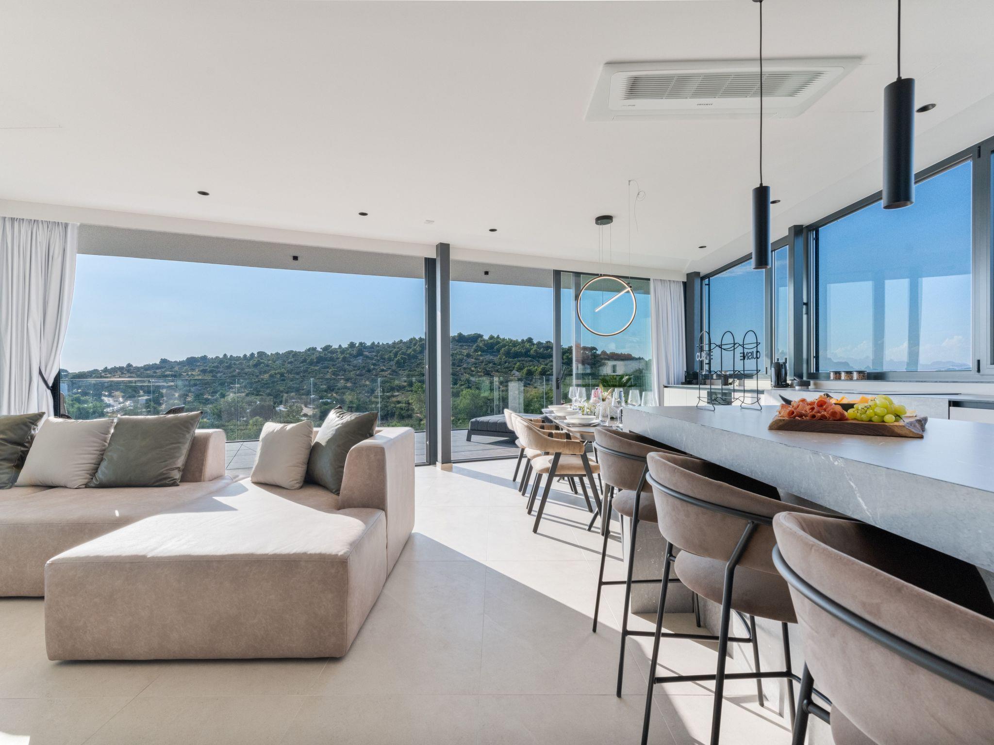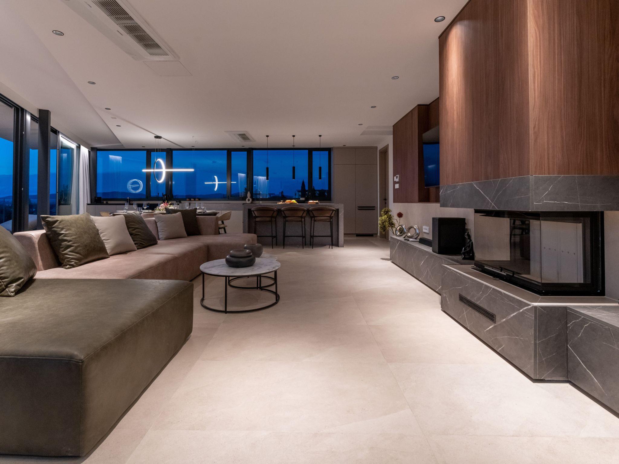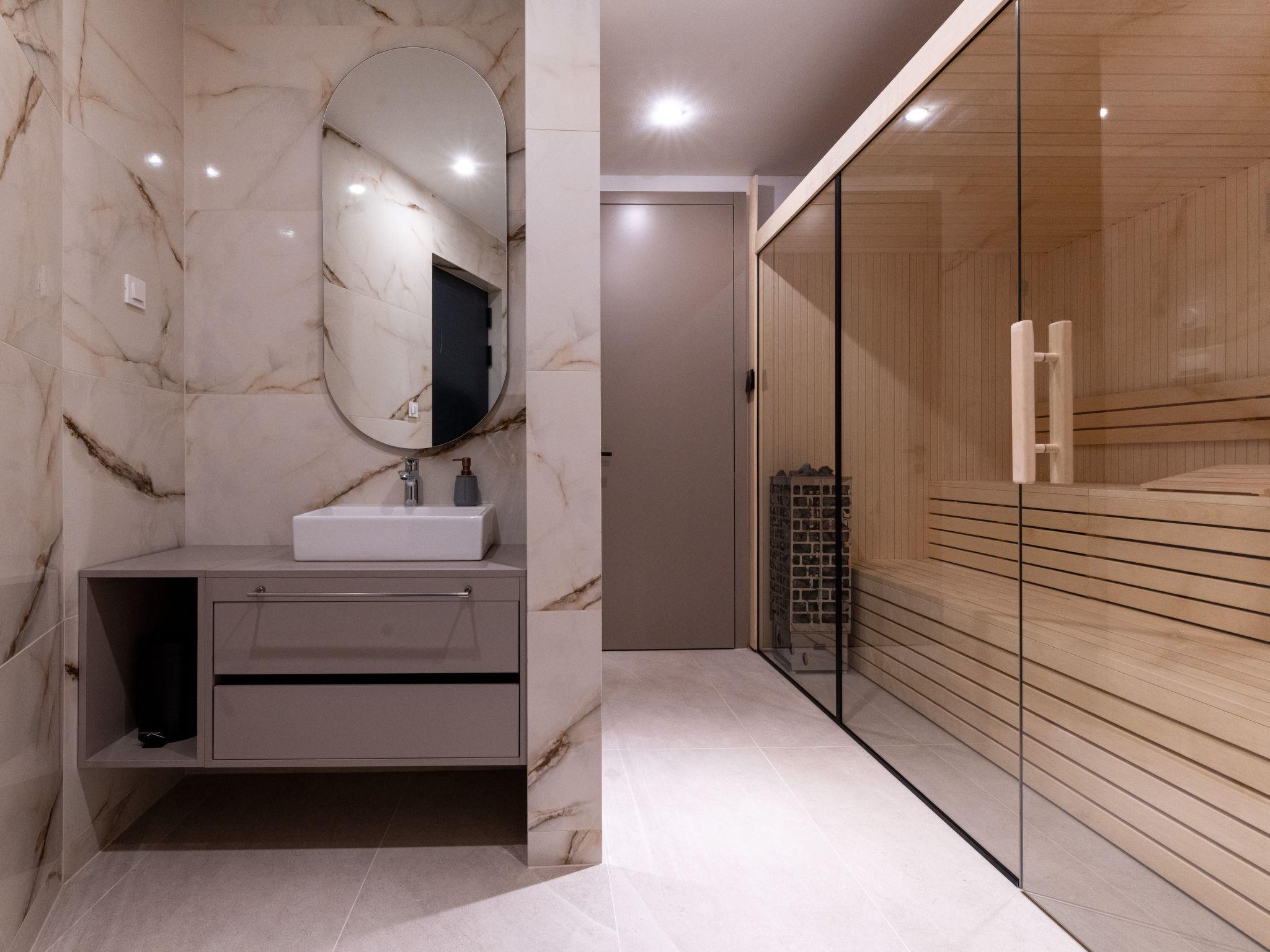 Inside, the villa boasts an array of amenities designed to pamper and entertain its guests. Every room is fitted with air conditioning and underfloor heating, ensuring a comfortable environment regardless of the season. The house comes fully equipped with a washing machine and clothes dryer for your convenience, as well as a dishwasher and coffee machine to make your stay as leisurely as possible. After an adventurous day, relax in the sauna, unwind in the jacuzzi, engage in some friendly competition at the billiards table, or simply enjoy the warmth of the fireplace.