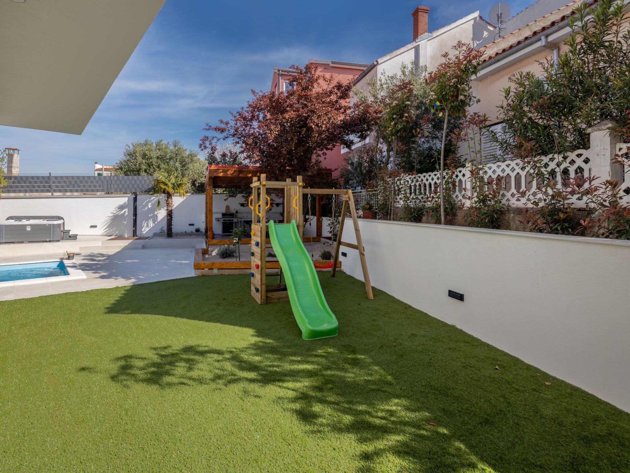 There is a heated pool with 10 sun loungers around it. After the pool you can also use the outside shower. The garden is private and it has a terrace with a sunshade underneath which there is an outdoor kitchen and a dinning area for 10 persons. There are 6 parking spaces outside the villa and the property is fully fenced.