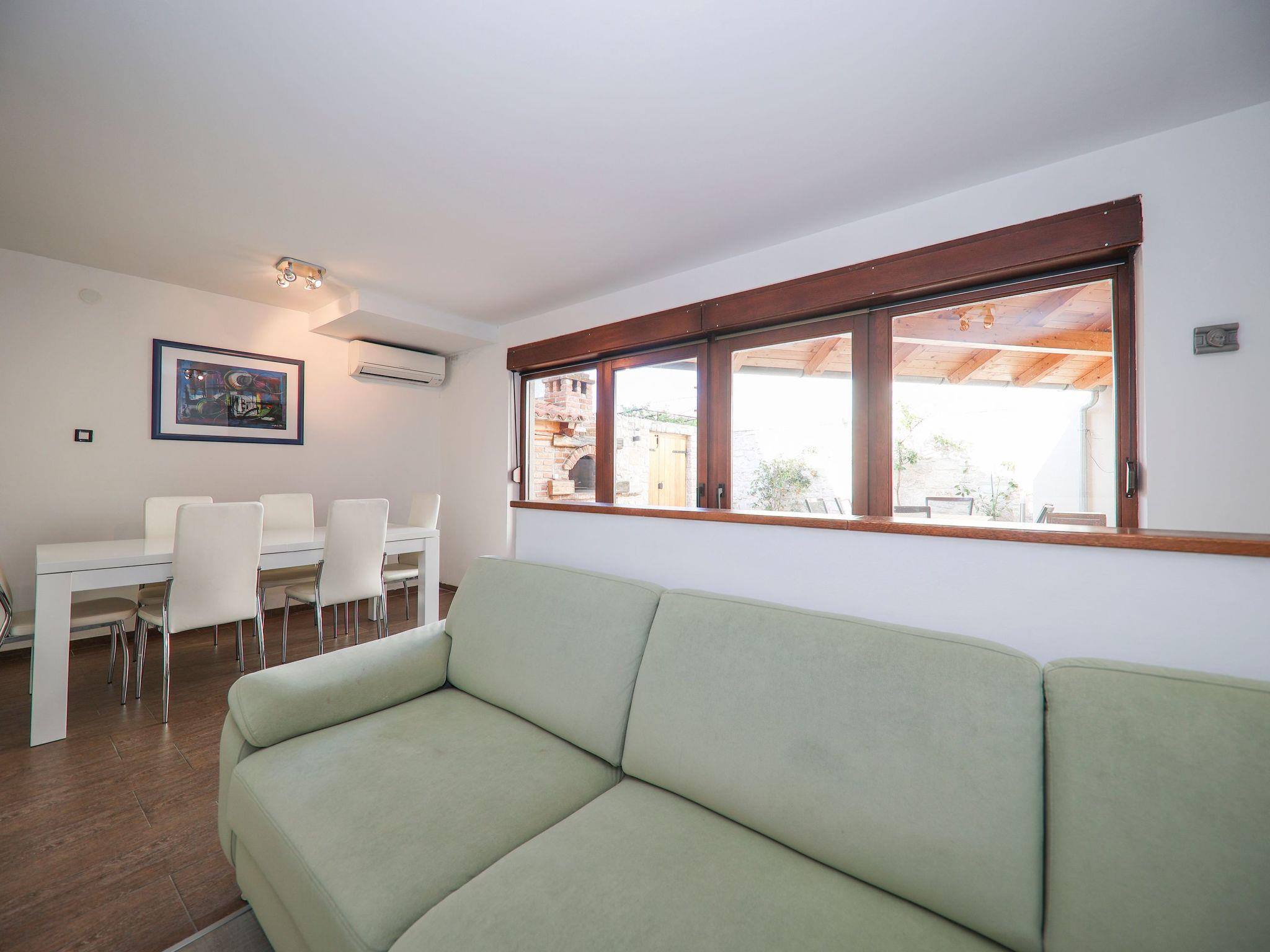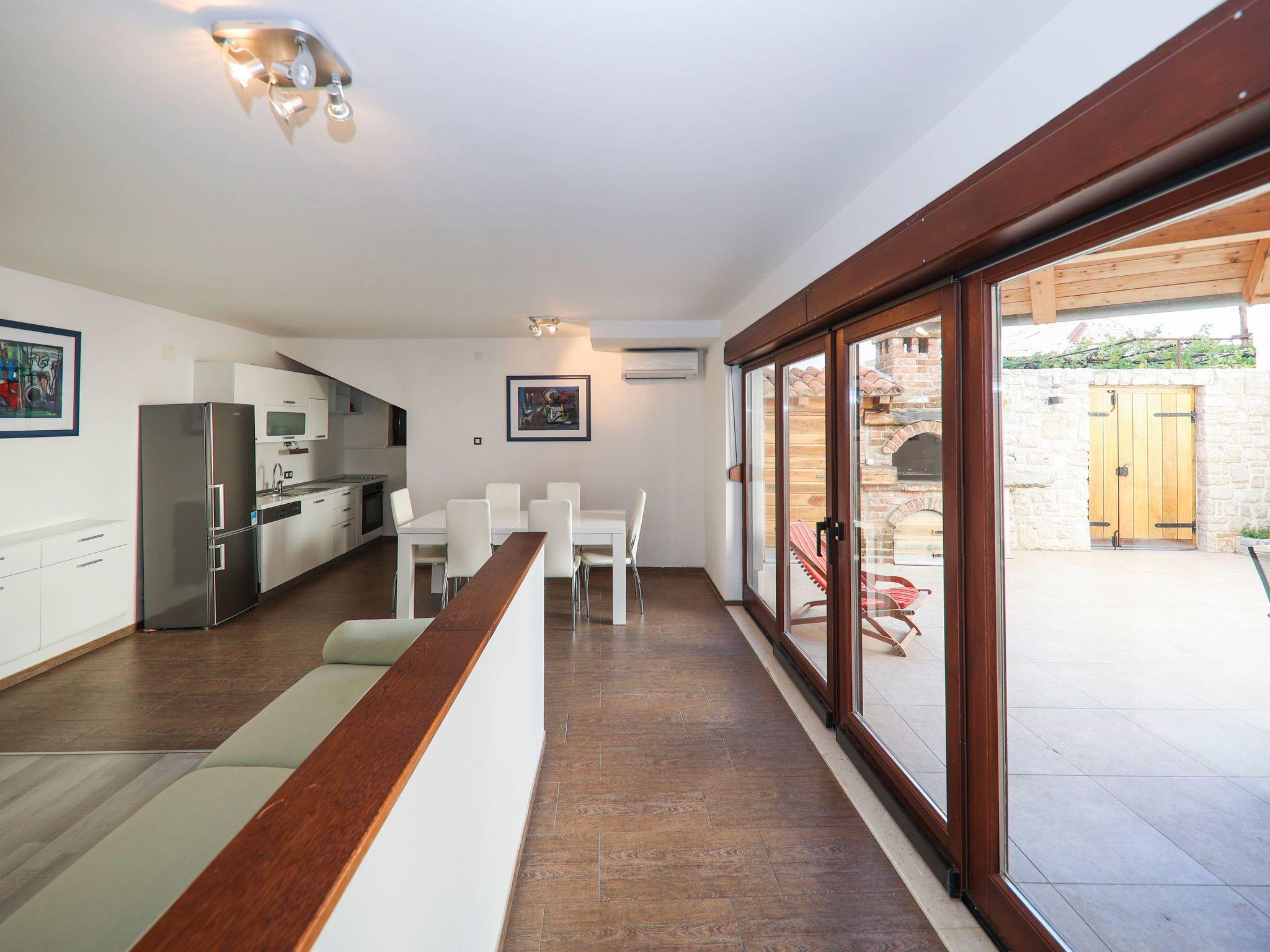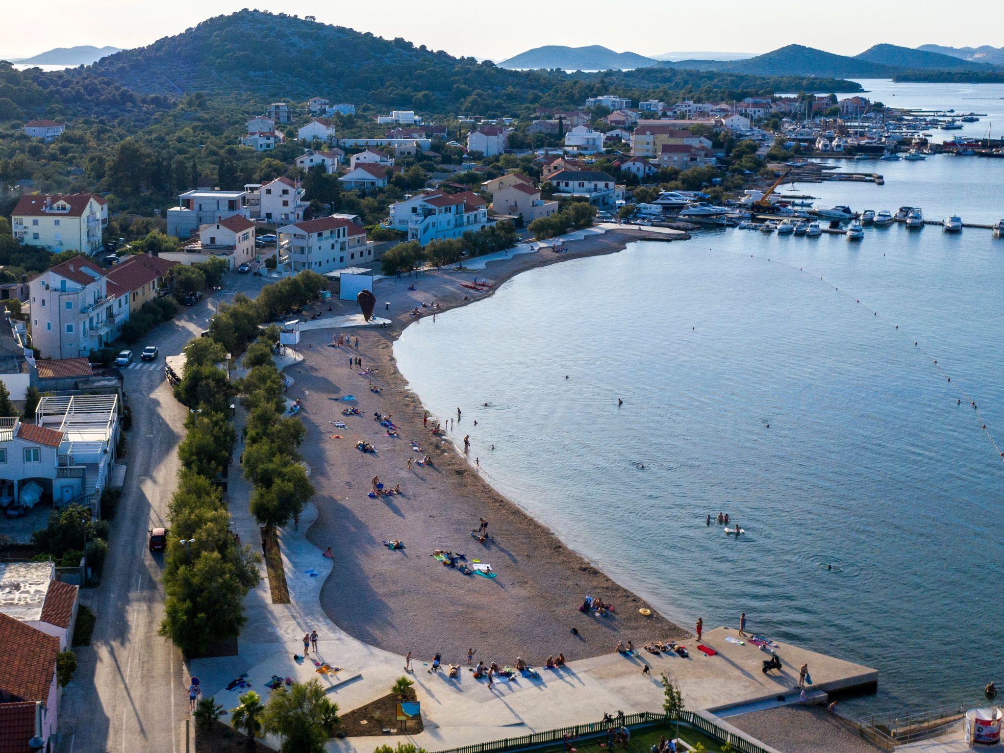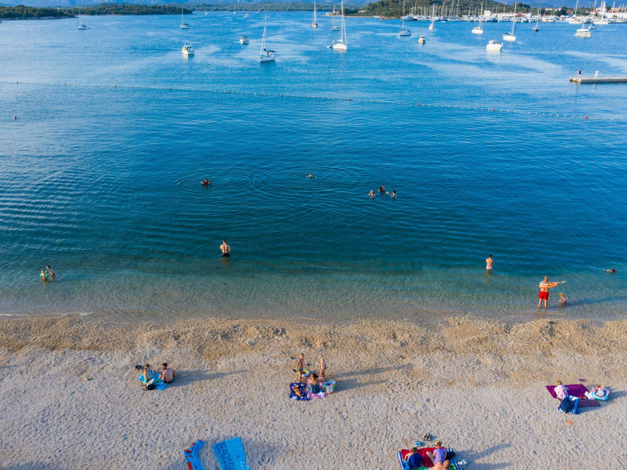 of the house is wonderful for a relaxing holiday in one of the most beatiful regions of the Croatian seaside. The village itself is nice, you are just a stroll away from all the restaurants, bars, stores, bakeries and the market filled with local produce. The pebbled beach is 400 m away, which is a great option for families with smaller children. The island has several exceptional beaches which are famous for their beauty, and they are all within the driving distance of 5 to 10 minutes. You can also rent a boat or an excursion to the nearby Kornati national park, which is an archipelago of 170 mostly uninhabited small islands, surrounded by the clearest, bluest sea you can imagine!Spacious holiday apartment on the upper floor, spread over two floors and with a traditional stone grill on the private roof terrace.
