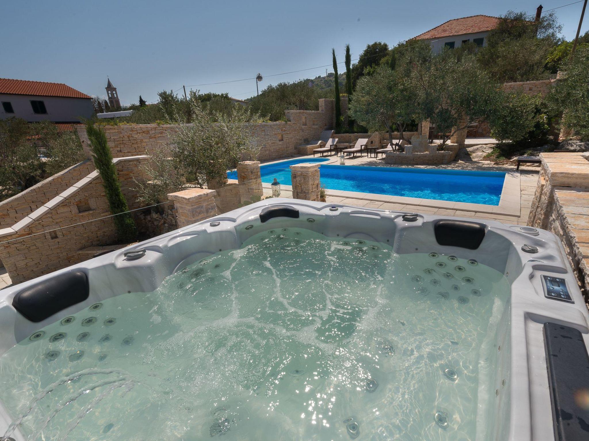 The villa has 6 exclusive apartments with 11 bedrooms, 6 bathrooms, large heated swimming pool and outdoor jacuzzi, outdoor bbq, tavern, panoramic view and romantic ambient, beautiful terraces.