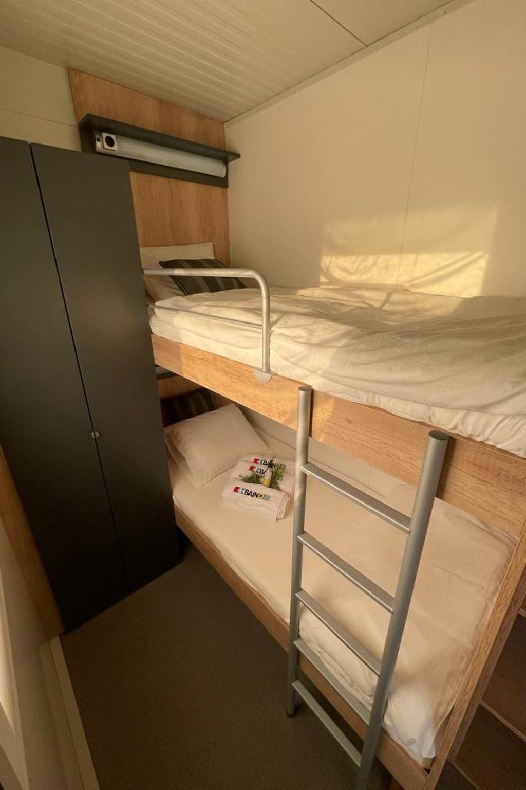 The interior consists of a bright living room with a flat-screen TV and a sofa bed, two bedrooms – one with a double bed, the other with a bunk bed for two people – as well as a dining room and a fully equipped kitchen.