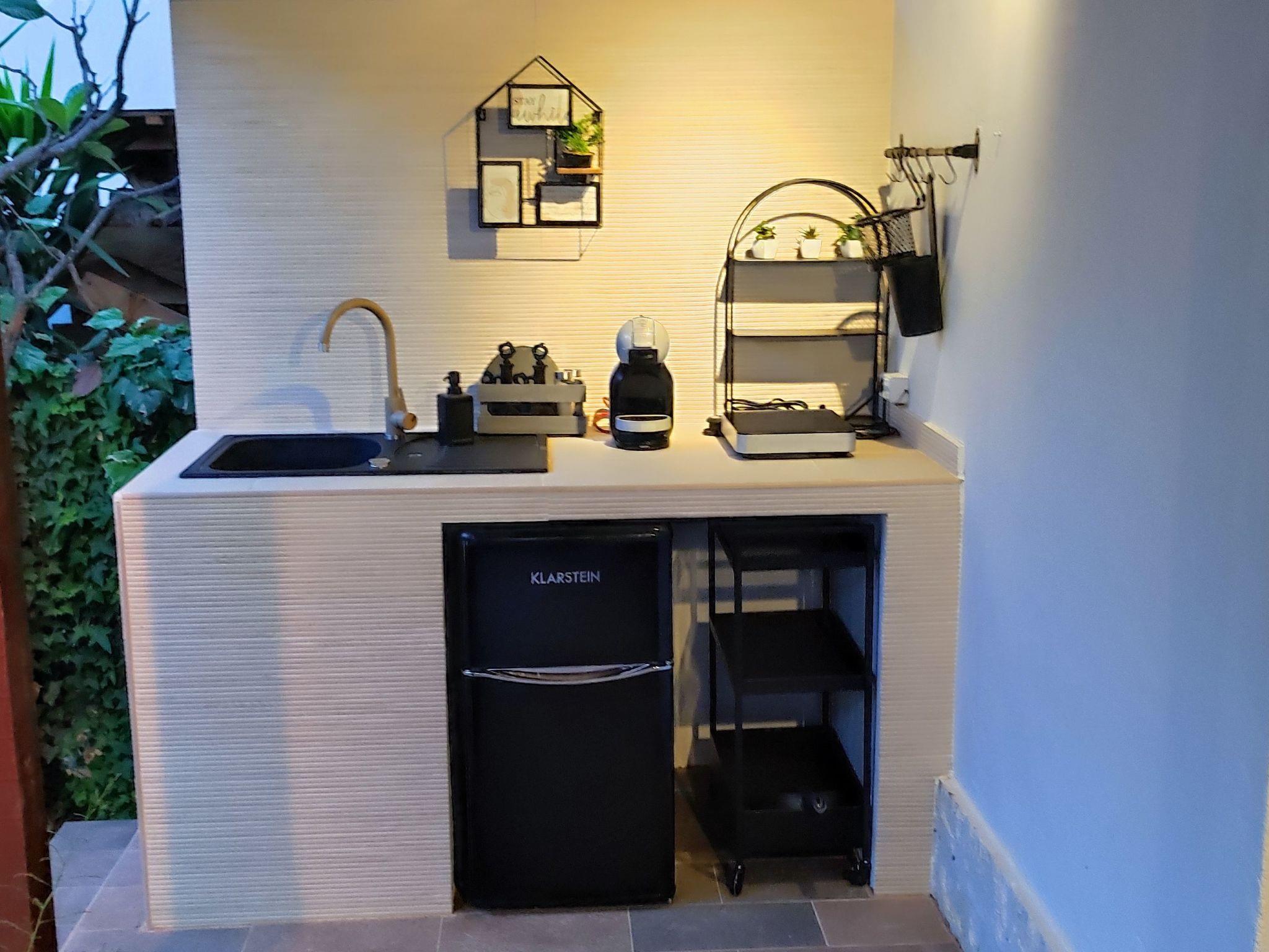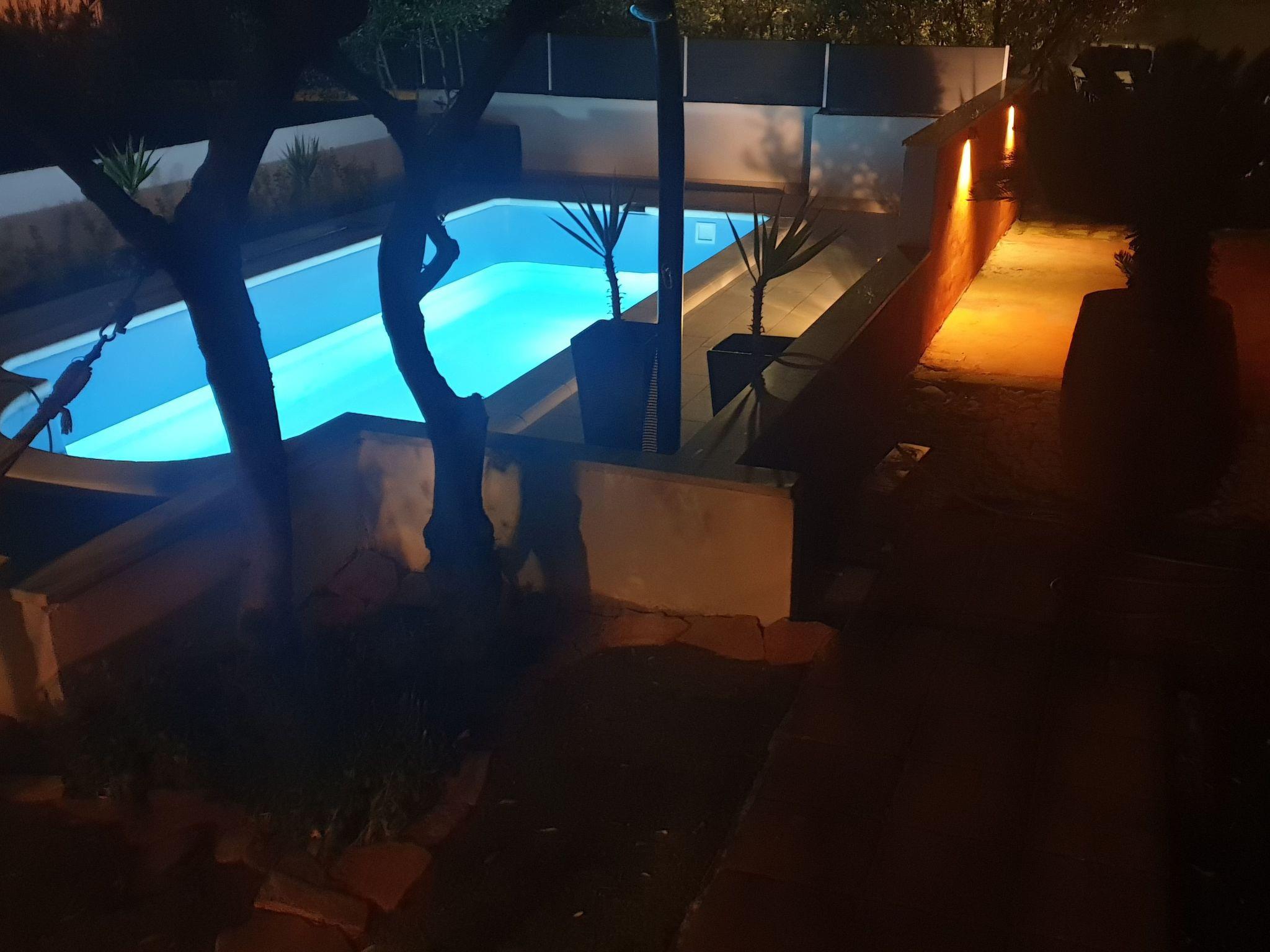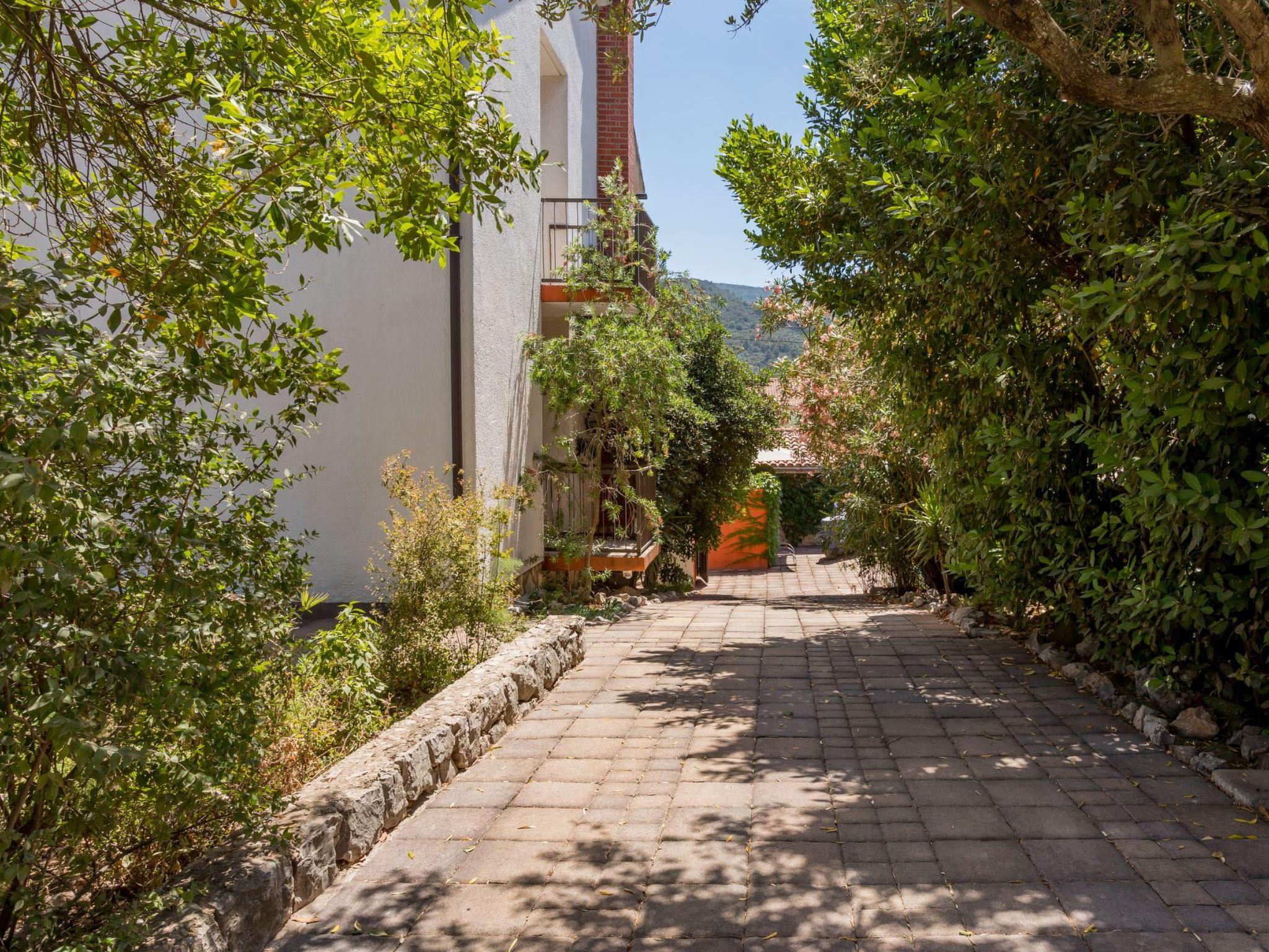 The property is surrounded by a wall and hidden by olive trees. The property has 500m2 where there is a swimming pool, sunbathing areas, deck chairs and seating. Parking is in the garden, fenced for several cars. There is a terrace of 30m2 covered with a seating area. All rooms in the apartment have a balcony and a seating area. There is a barbecue in the garden.