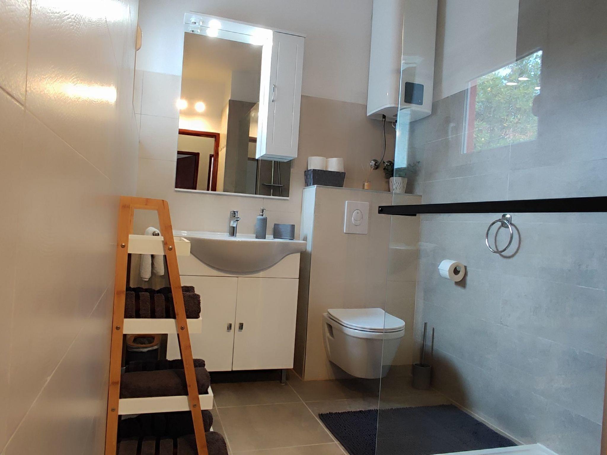 Complex Oliva consists of a detached house 36 m2 with one double bedroom, bathroom, living room, large terrace, kitchen with full equipped and a spacious apartment of 80m2 with three double bedrooms, bathroom, living room, kitchen separtly, fully equipped. Compelx is surrounded by a wall and surrounded by a garden of 500m2 where there is a swimming pool. Parking is located on a fenced area for three cars. In the garden there is a fireplace, garden furniture, deck chairs and a solar shower. The whole property is located surrounded by olive trees.
