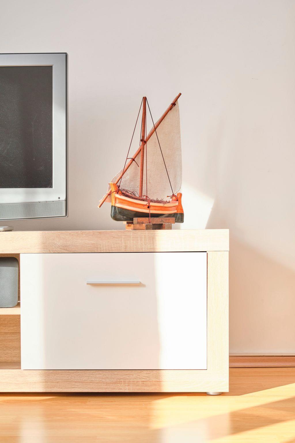 The kitchen is completely equipped, and also there is air conditioning in the living room and one of the bedrooms. The living room, kitchen, and one bedroom all have access to the terrace.