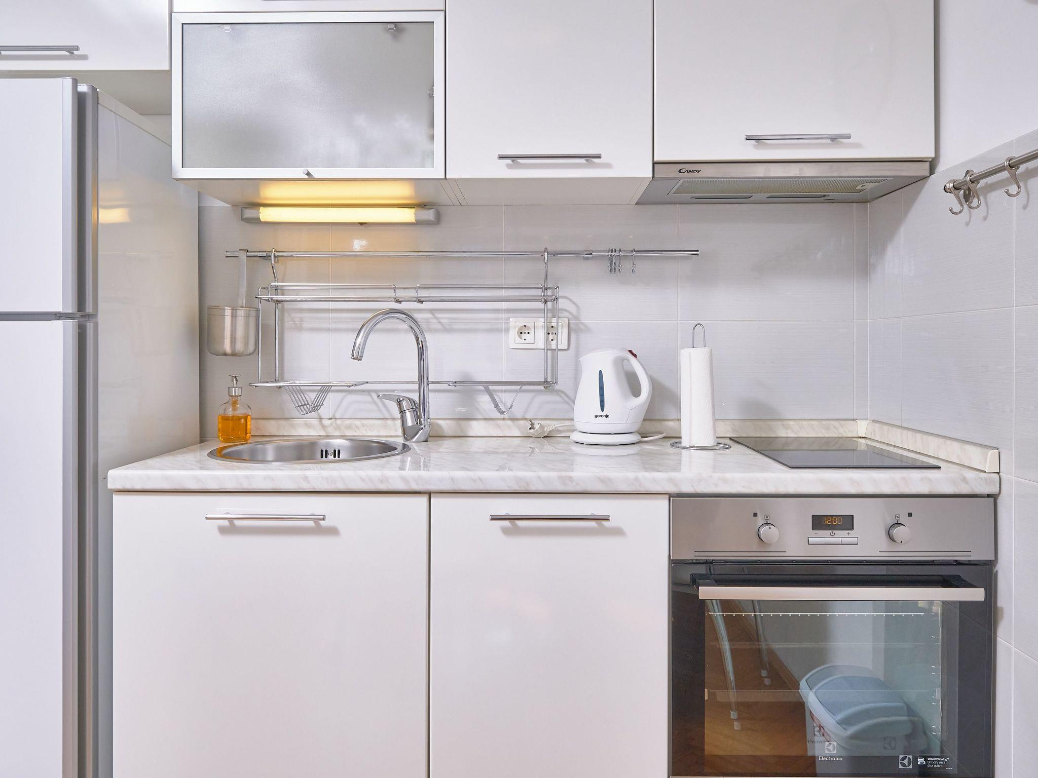 Inside, the apartment reveals a thoughtfully designed space that meets all your needs. The bedroom is a peaceful sanctuary, ensuring restful nights, complemented by the convenience of a bathroom equipped with a shower. Daily living is enhanced by the air-conditioned interiors, a fully equipped kitchen featuring an induction hob and electric kettle, and a dedicated dining area. For added ease, the apartment includes a washing machine for exclusive use, promising all the comforts of home.