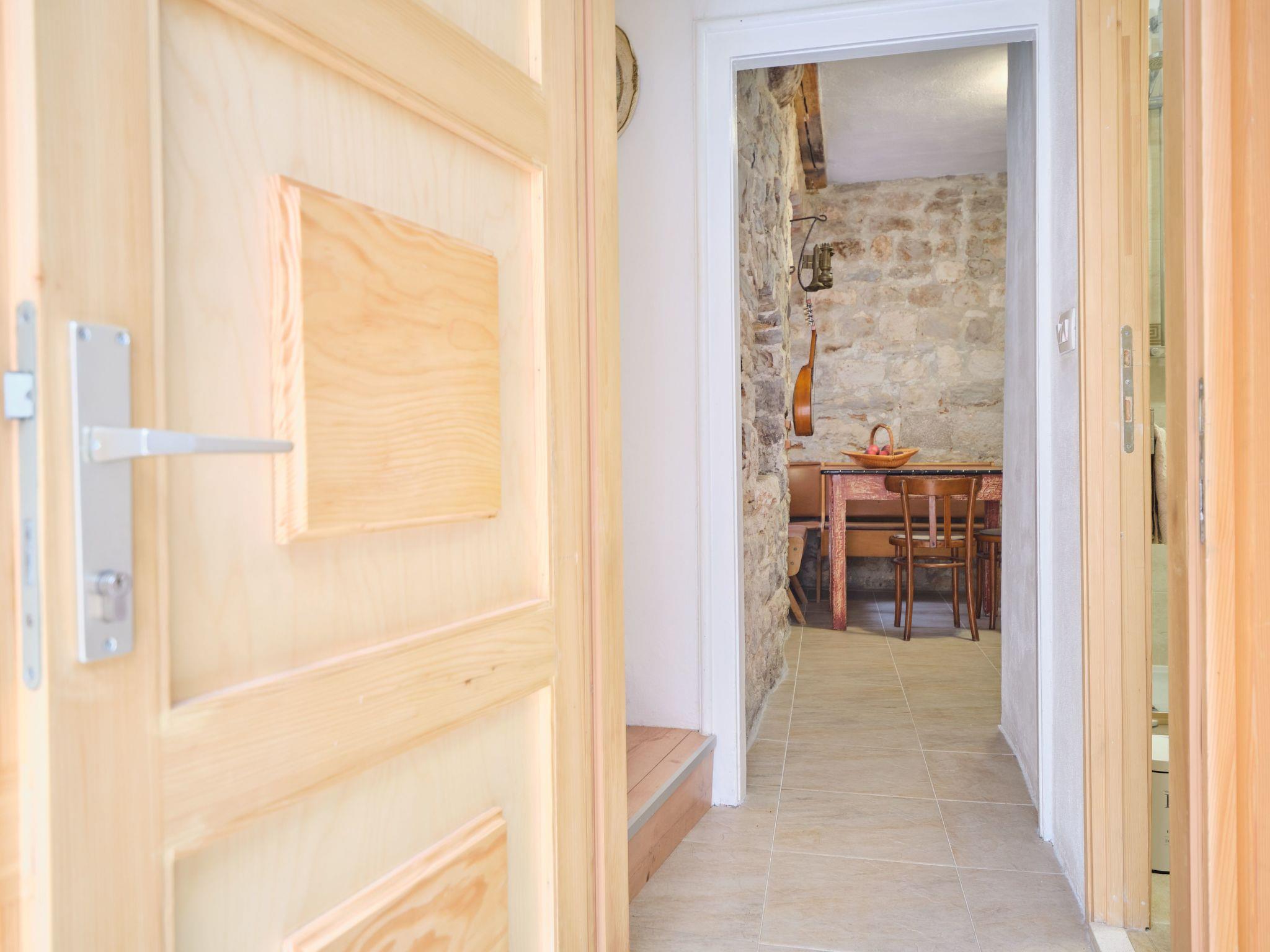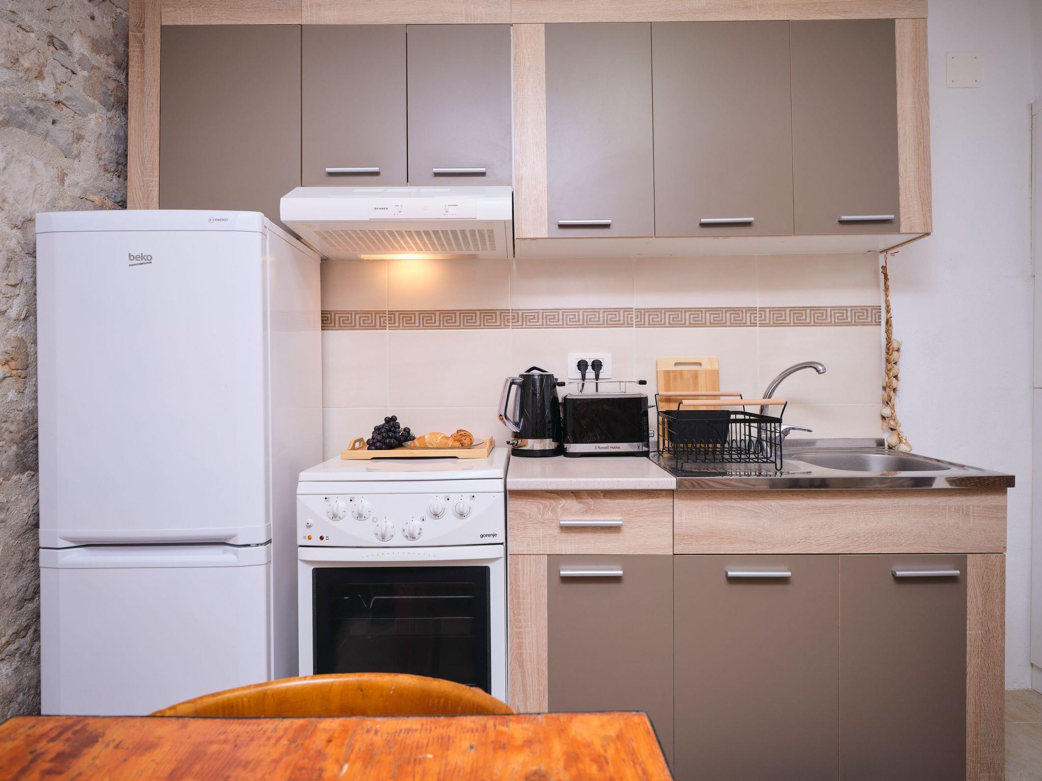 Inside, the apartment is fully equipped to cater to your every need. Each of the two bedrooms is designed for restful nights after a day of exploring. The singular bathroom, complete with a shower, offers convenience and comfort. For added comfort during those warm Dalmatian days and nights, air conditioning is available throughout the apartment. Additionally, an electric kettle is provided, perfect for those moments when you wish to enjoy a warm beverage within the comfort of your temporary home.