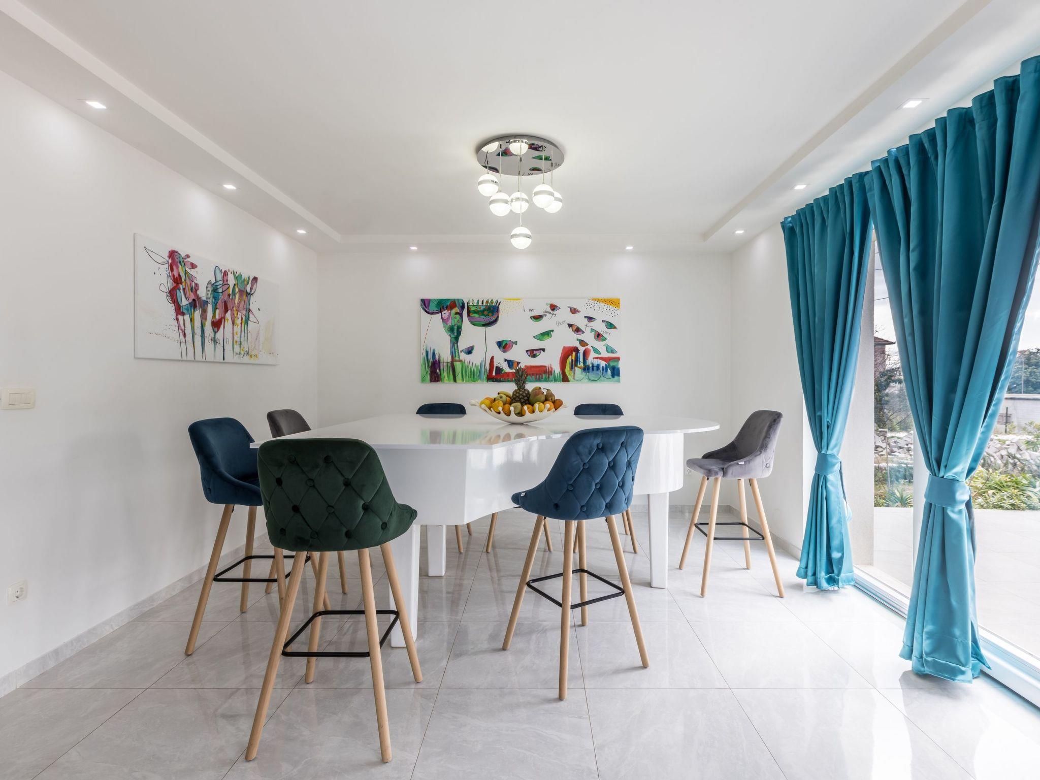 Inside, Villa Perkov is a haven of refined comfort where every detail is thoughtfully curated to enhance your holiday experience. Six spacious bedrooms, each boasting its own en suite bathroom, offer the perfect sanctuaries for rest and rejuvenation. Whether waking up to the gentle morning sunlight filtering through your window or indulging in the privacy of your luxurious bathroom, the interior of Villa Perkov ensures your stay is as comfortable as it is elegant.