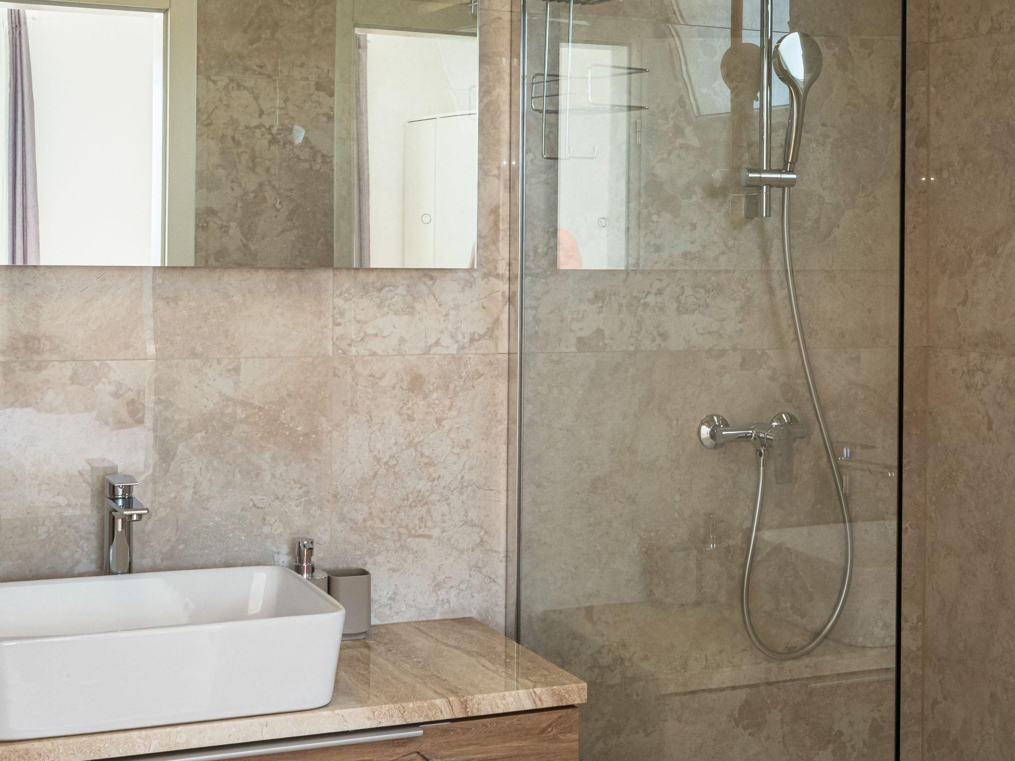 Inside, you’ll find three bedrooms: two with comfortable double beds and one with two single beds, ideal for families or friends traveling together. One of the bedrooms comes with air conditioning and its own private bathroom. There is a fully equipped kitchen and living room with a comfy sofa, air conditioning, and TV – perfect for evenings together.