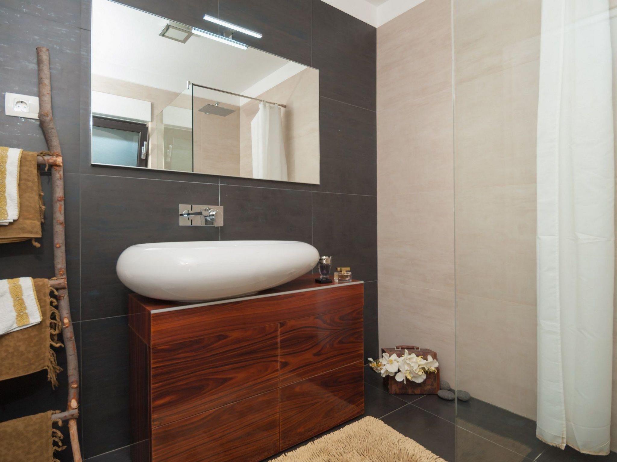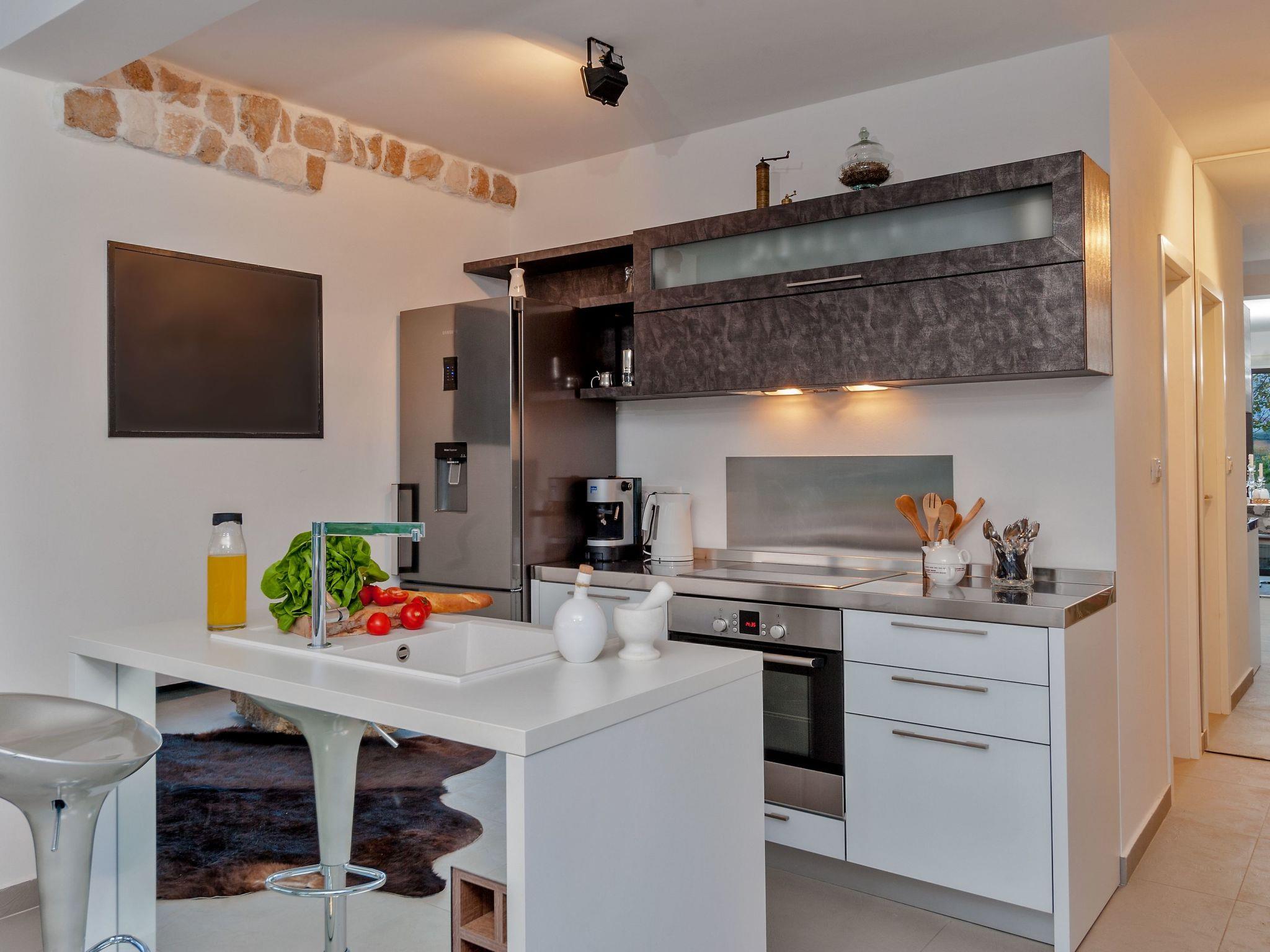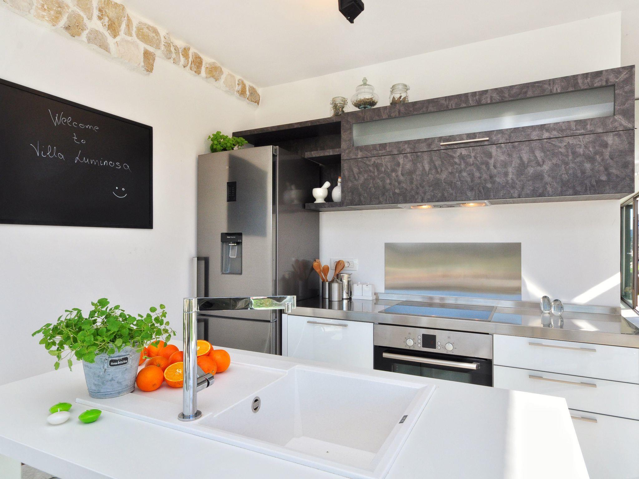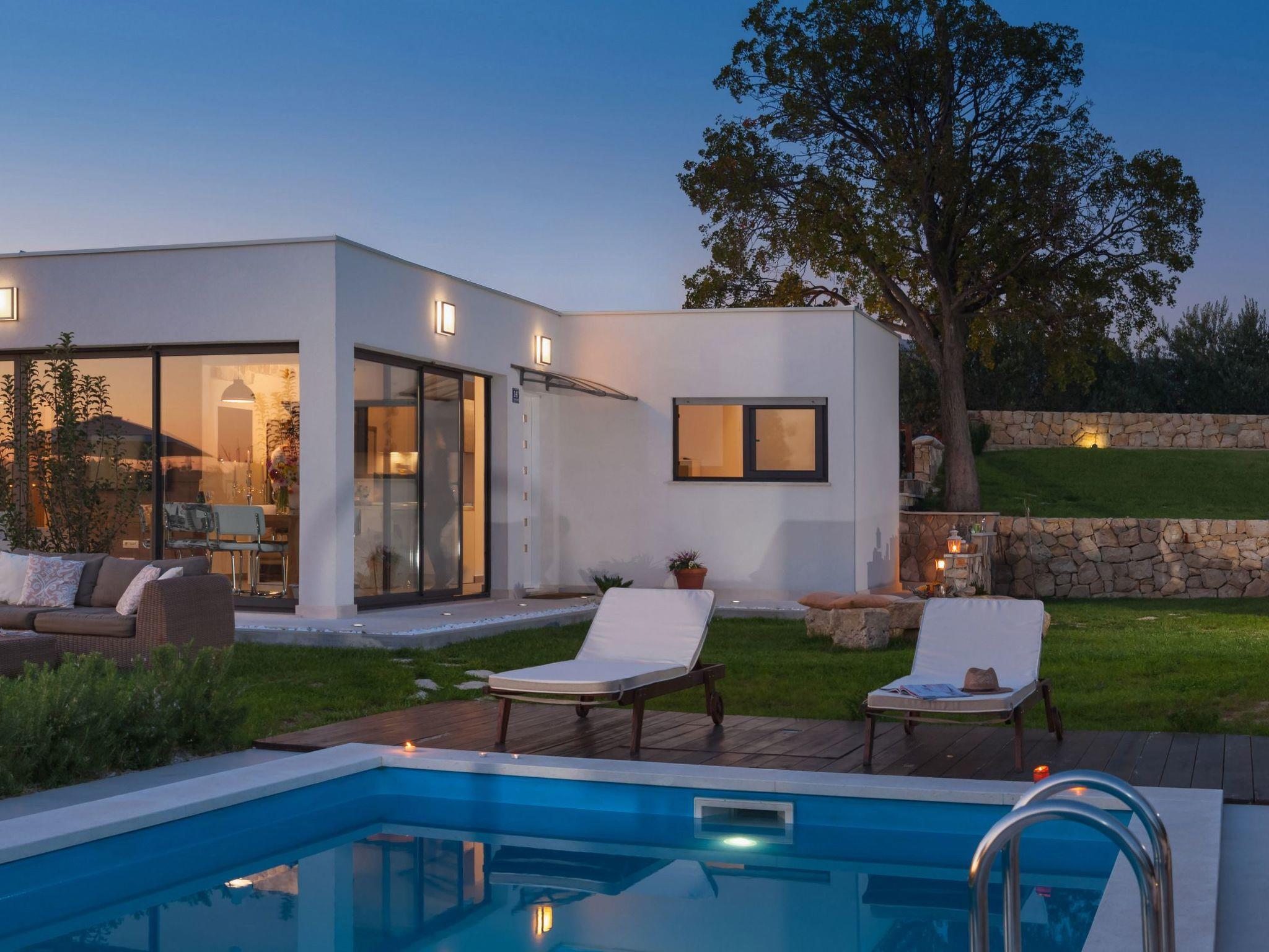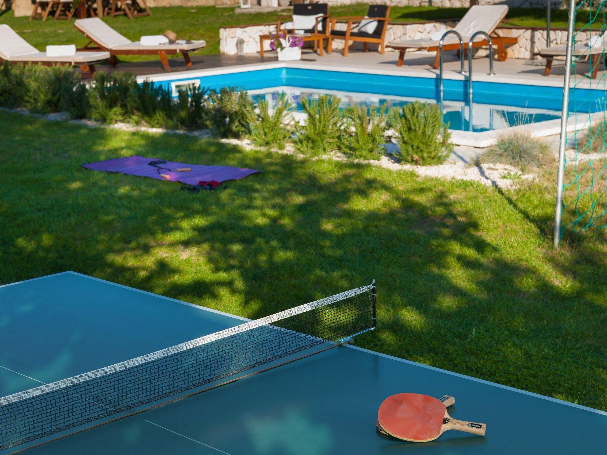 This exclusive designer holiday villa is situated in a quiet residential area of Dracevac near the blue Adriatic, a little outside of the Mediterranean metropolis of Split on the sunny Dalmatian coast.Brand new (built in 2014) luxury holiday villa with a private pool, an outdoor shower, a traditional stone grill on the generous sunny terrace and a football field in the enclosed garden planted with olive and fruit trees.