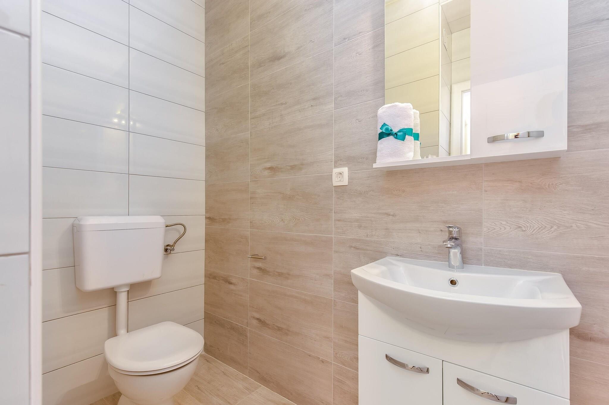 Denne moderne lejlighed med swimmingpool til brug er beliggende i stedet Dramalj. Din bolig tilbyder komplet komfort, udstyret køkken med spiseplads og stue, soveværelser og badeværelse, balkon, air condition, gratis wifi. Lejligheden ligger 90 meter væk fra stranden. Dramalj er en lille turistby forbundet med Crikvenica med lang vej omgivet af middelhavs vegetation kaldet Lungo mare. Ramalj og Crikvenica med deres lange tradition for turisme er perler af Crikvenica Riviera på grund af mild Middelhavet klima, smukke sandede, sten og sten strande og rige historiske og kulturelle arv. Udover vandsport for dem, der søger en aktiv ferie, er der forskellige aktiviteter: cykling, bjergbestigning, fiskeri, dykning, tennis og golf. Nationalpark Risnjak med sine naturlige skønheder samt Gorski Kotar, regionen med bjerge og søer kan nås inden for en times kørsel.