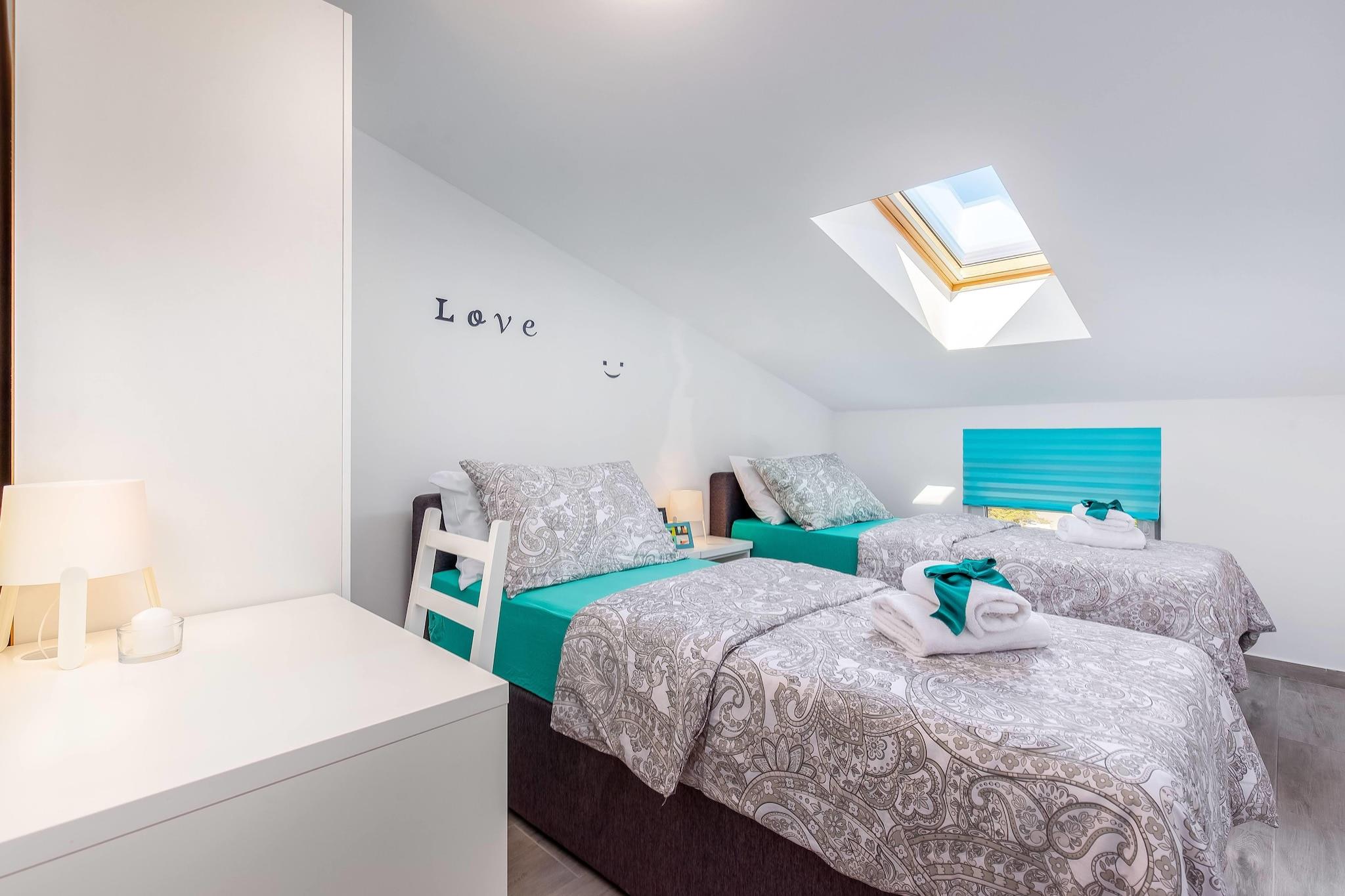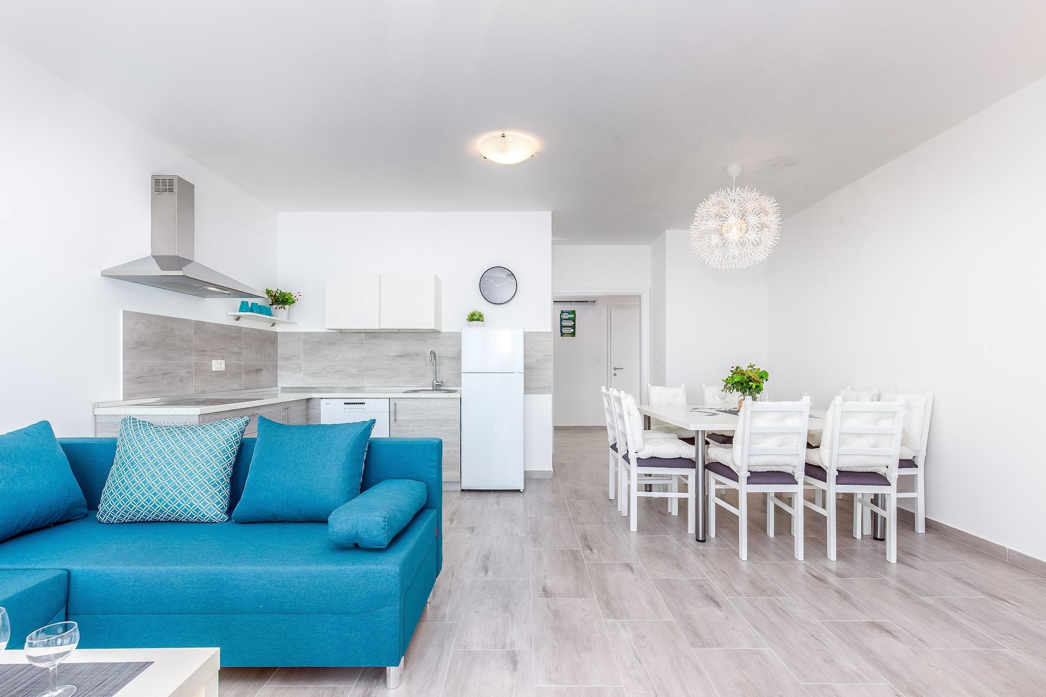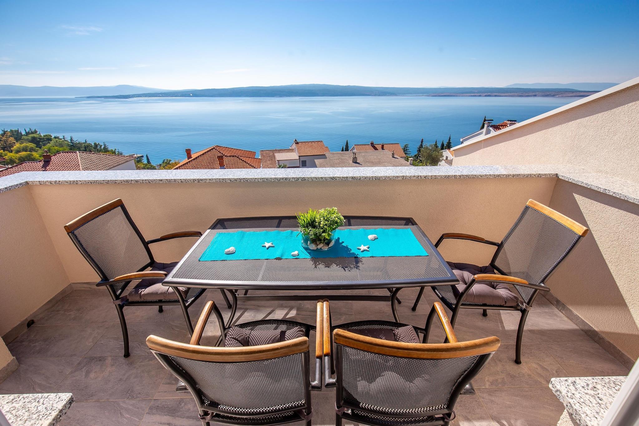 Denne villa lejlighed med swimmingpool til brug og fantastisk havudsigt er beliggende i stedet Dramalj. Din bolig tilbyder komplet komfort, udstyret køkken med spiseplads og stue, soveværelser og badeværelser, balkon, aircondition, gratis wifi. Lejligheden ligger 90 meter væk fra stranden. Dramalj er en lille turistby forbundet med Crikvenica med lang vej omgivet af middelhavs vegetation kaldet Lungo mare. Ramalj og Crikvenica med deres lange tradition for turisme er perler af Crikvenica Riviera på grund af mild Middelhavet klima, smukke sandede, sten og sten strande og rige historiske og kulturelle arv. Udover vandsport for dem, der søger en aktiv ferie, er der forskellige aktiviteter: cykling, bjergbestigning, fiskeri, dykning, tennis og golf. Nationalpark Risnjak med sine naturlige skønheder samt Gorski Kotar, regionen med bjerge og søer kan nås inden for en times kørsel.