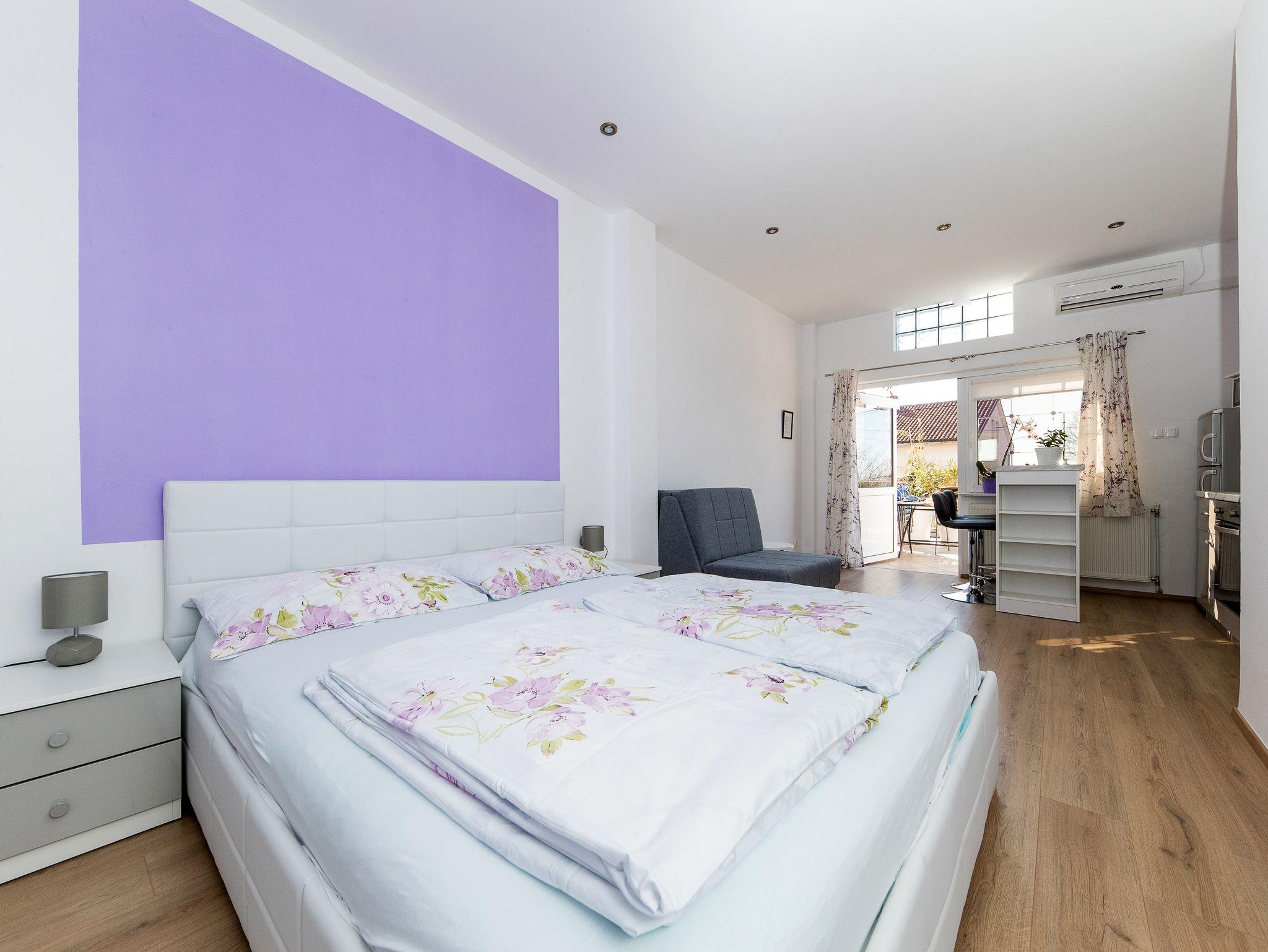 Studio bietet Platz für 2 Gäste. Die Betten sind in Schlafzimmern, die es 1 gibt, innerhalb einer Gesamtfläche von 28m2, angeordnet. Die Gäste haben eine eigene Terrasse zur Verfügung, auf der sie in warmen Sommernächten genießen können. Es ist erlaubt, Speisen auf dem Gemeinschafts-Grill vorzubereiten. Während ihres Aufenthalts können Gäste das gemeinsam zur Nutzung stehende Schwimmbad benutzen. IM PREIS INBEGRIFFEN: Kurtaxe, Endreinigung, Klimatisierung, Zentralheizung, Pool, Parkplatz, Internet, Bügeleisen, Bügelbrett, Föhn. VERBINDLICHE ZUSÄTZLICHE KOSTEN: Aufzahlung für Kurzaufenthalte (prozentualer Zuschlag pro Nächtigungsanzahl: 30% - 1, 20% - 2, 10% - 3). UNVERBINDLICHE ZUSÄTZLICHE KOSTEN: Wäschewaschen (5,00 € Waschen). Die Verfügbarkeit zusätzlicher Dienstleistungen in Ihrem reservierten Termin und die Preise derselben (falls nicht aufgeführt) müssen im Voraus überprüft werden. Zusätzliche Dienstleistungen die in der Zahlungsaufforderung nicht aufgeführt sind werden direkt beim Vermieter bezahlt, angenommen der Gast nutzt auch diese.