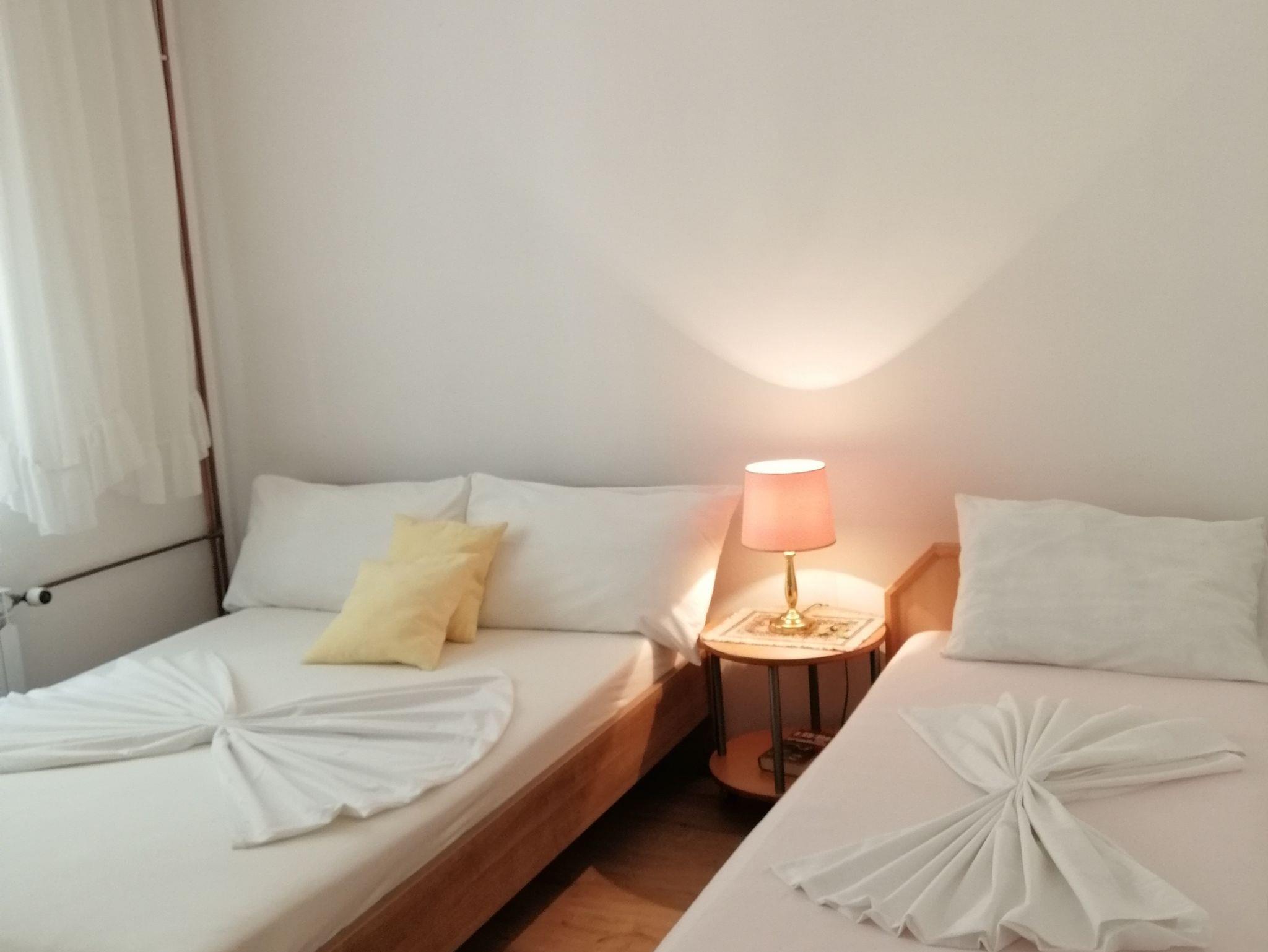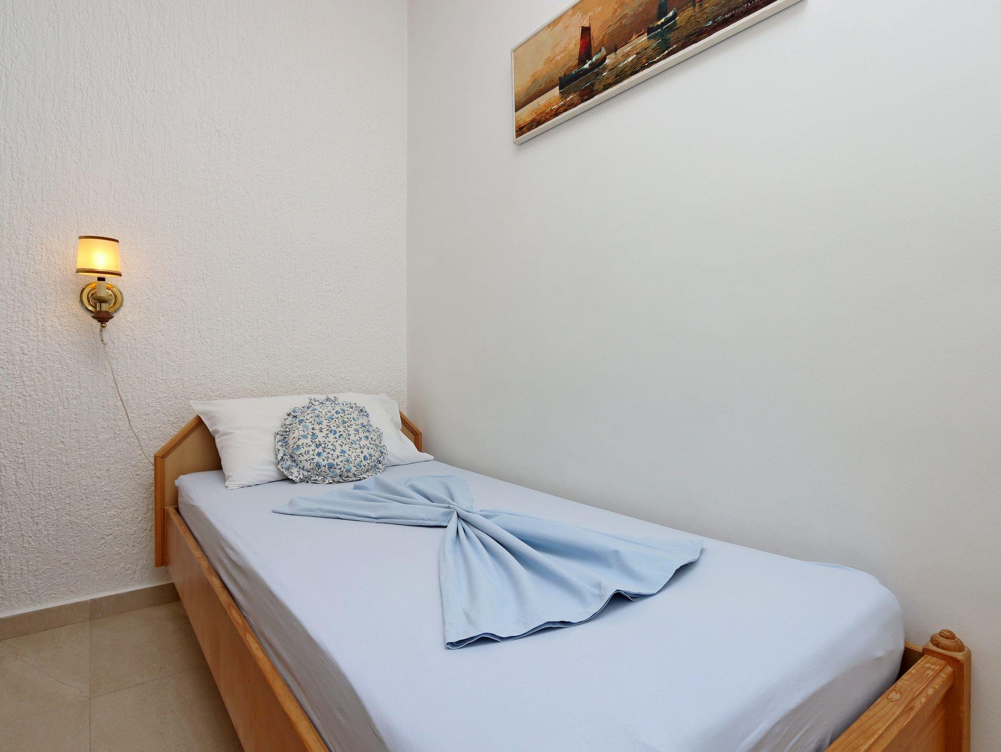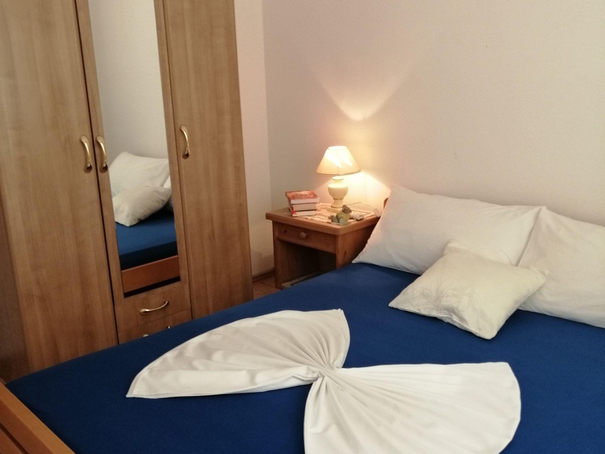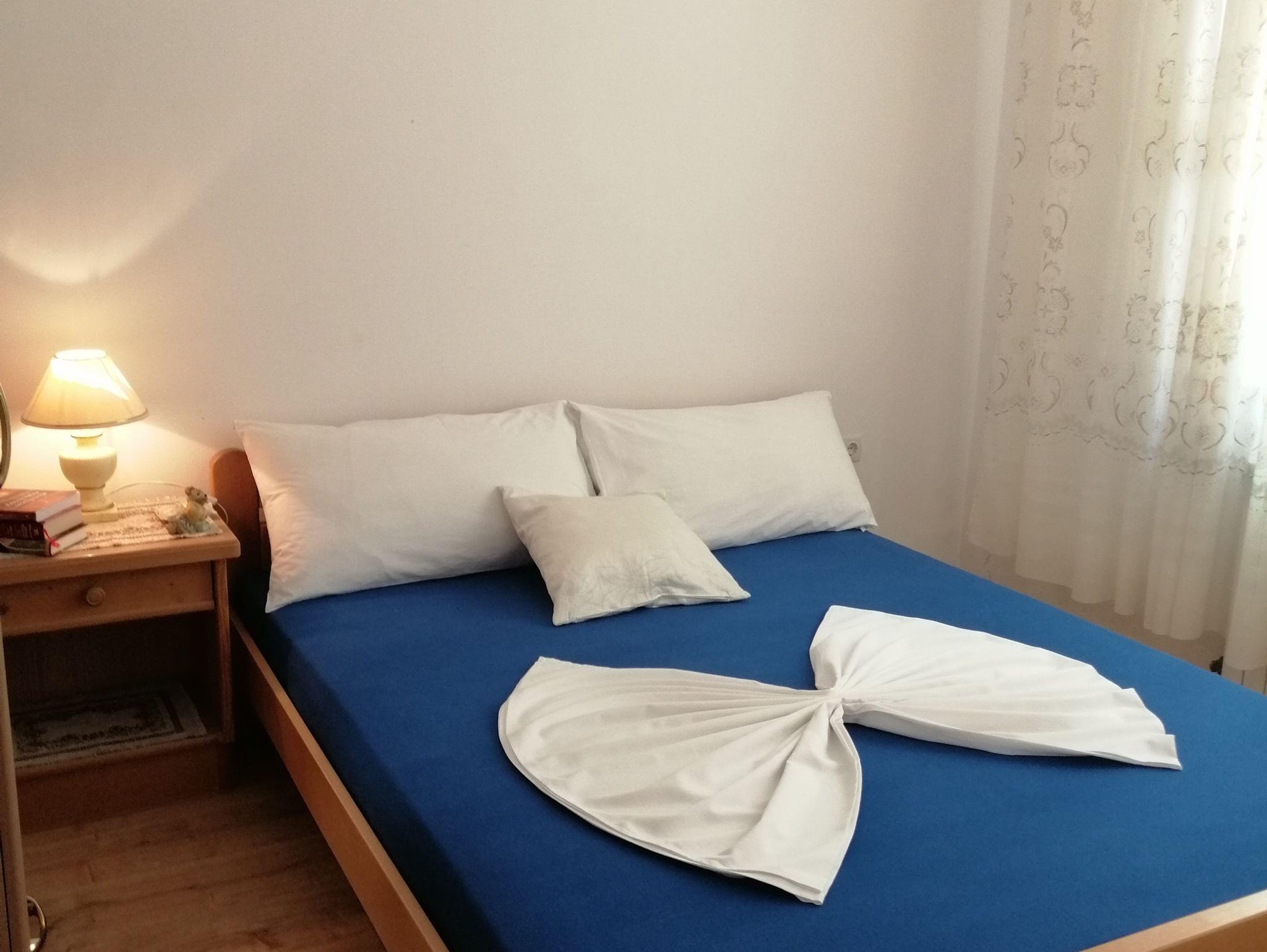 Ferienwohnung bietet Platz für 7 Gäste. Die Betten sind in Schlafzimmern, die es 2 gibt, und in Wohnzimmer, innerhalb einer Gesamtfläche von 74m2, angeordnet. Die Gäste haben eine eigene Terrasse zur Verfügung, auf der sie in warmen Sommernächten genießen können. Das Apartment bietet Meerblick. Es ist erlaubt, Speisen auf dem Gemeinschafts-Grill vorzubereiten. IM PREIS INBEGRIFFEN: Kurtaxe, Endreinigung, Klimatisierung, Parkplatz, Internet, Kinderbett, Bügeleisen, Bügelbrett, Föhn. VERBINDLICHE ZUSÄTZLICHE KOSTEN: Aufzahlung für Kurzaufenthalte (prozentualer Zuschlag pro Nächtigungsanzahl: 30% - 1, 20% - 2, 10% - 3). UNVERBINDLICHE ZUSÄTZLICHE KOSTEN: Wäschewaschen (5,00 € Waschen), Zusatzbett (10,00 € pro Nacht). Die Verfügbarkeit zusätzlicher Dienstleistungen in Ihrem reservierten Termin und die Preise derselben (falls nicht aufgeführt) müssen im Voraus überprüft werden. Zusätzliche Dienstleistungen die in der Zahlungsaufforderung nicht aufgeführt sind werden direkt beim Vermieter bezahlt, angenommen der Gast nutzt auch diese. Ermäßigung auf den Grundpreis: Gratistag 14=13 (bei einem Aufenthalt von 14 Tagen oder mehr erhalten Sie einen Gratistag für den Aufenthalt bis 31.12.26).