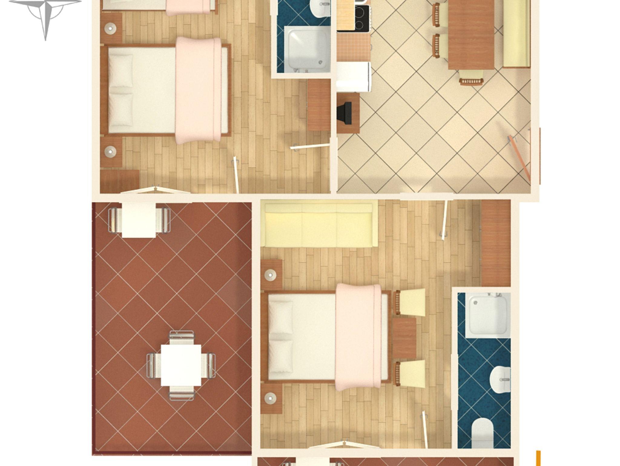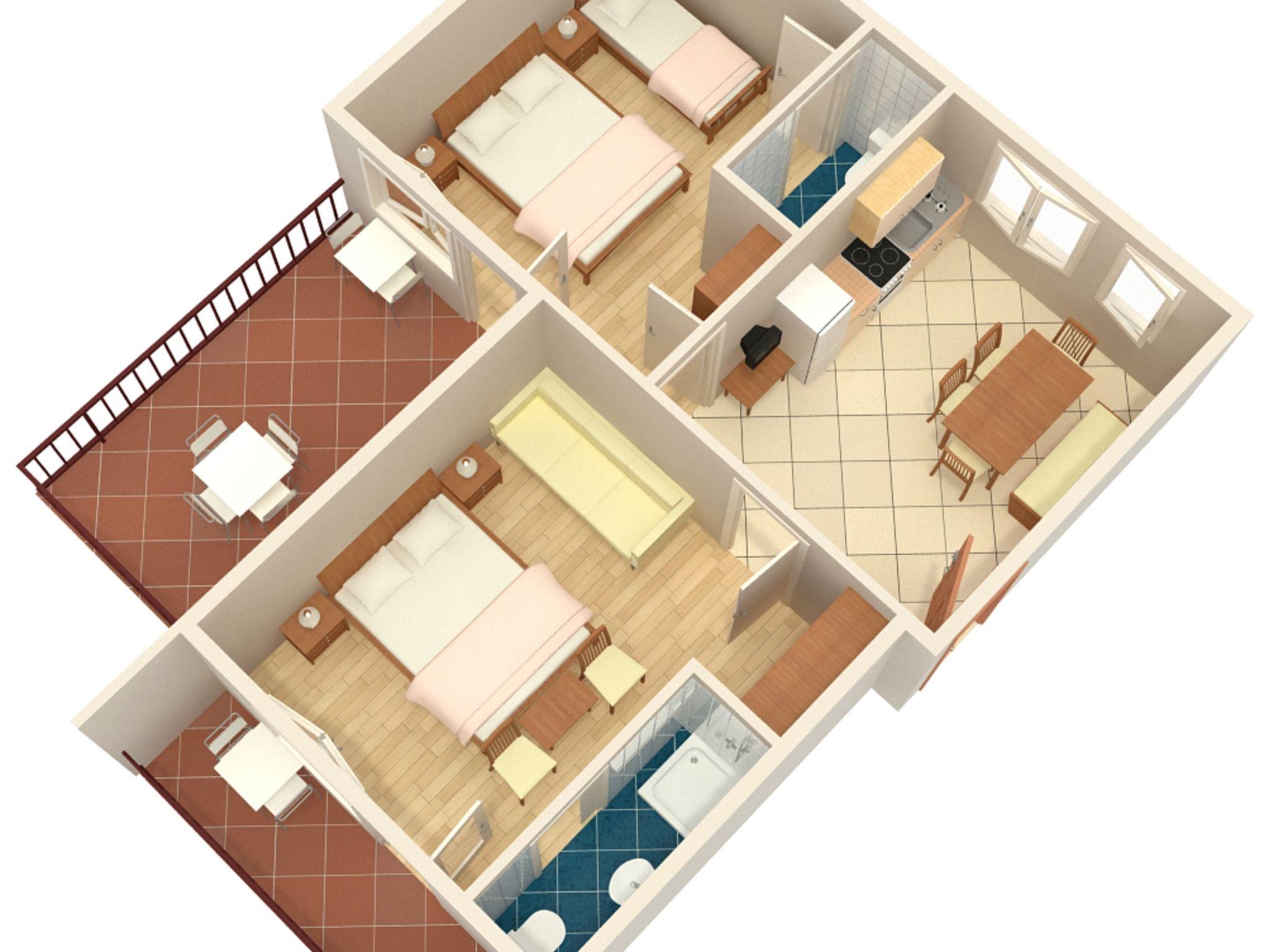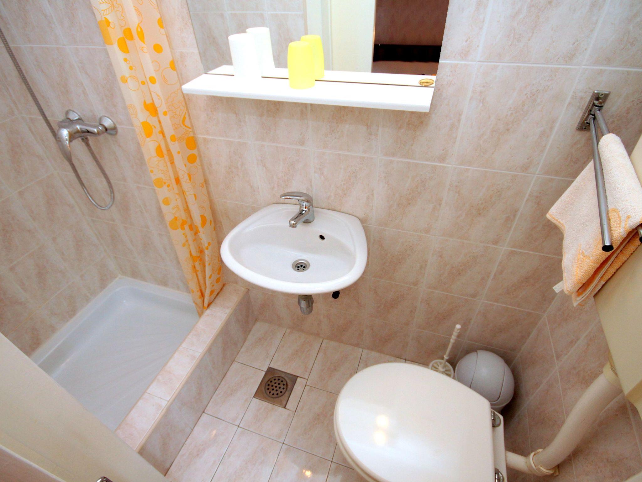 Ferienwohnung bietet Platz für 5 Gäste. Die Betten sind in Schlafzimmern, die es 1 gibt, und in Wohnzimmer, innerhalb einer Gesamtfläche von 46m2, angeordnet. Die Gäste haben eine eigene Terrasse zur Verfügung, auf der sie in warmen Sommernächten genießen können. Das Apartment bietet Meerblick. Es ist erlaubt, Speisen auf dem Gemeinschafts-Grill vorzubereiten. In der Unterkunftseinheit besteht die Möglichkeit des Mitbringens von Haustieren gegen Aufpreis. IM PREIS INBEGRIFFEN: Kurtaxe, Endreinigung, Klimatisierung, Parkplatz, Internet, Bügeleisen, Bügelbrett, Föhn, tragbarer Grill. VERBINDLICHE ZUSÄTZLICHE KOSTEN: Aufzahlung für Kurzaufenthalte (prozentualer Zuschlag pro Nächtigungsanzahl: 30% - 1, 20% - 2, 10% - 3). UNVERBINDLICHE ZUSÄTZLICHE KOSTEN: Wäschewaschen (5,00 € Waschen), Haustiere (12,00 € pro Nacht). Die Verfügbarkeit zusätzlicher Dienstleistungen in Ihrem reservierten Termin und die Preise derselben (falls nicht aufgeführt) müssen im Voraus überprüft werden. Zusätzliche Dienstleistungen die in der Zahlungsaufforderung nicht aufgeführt sind werden direkt beim Vermieter bezahlt, angenommen der Gast nutzt auch diese.
