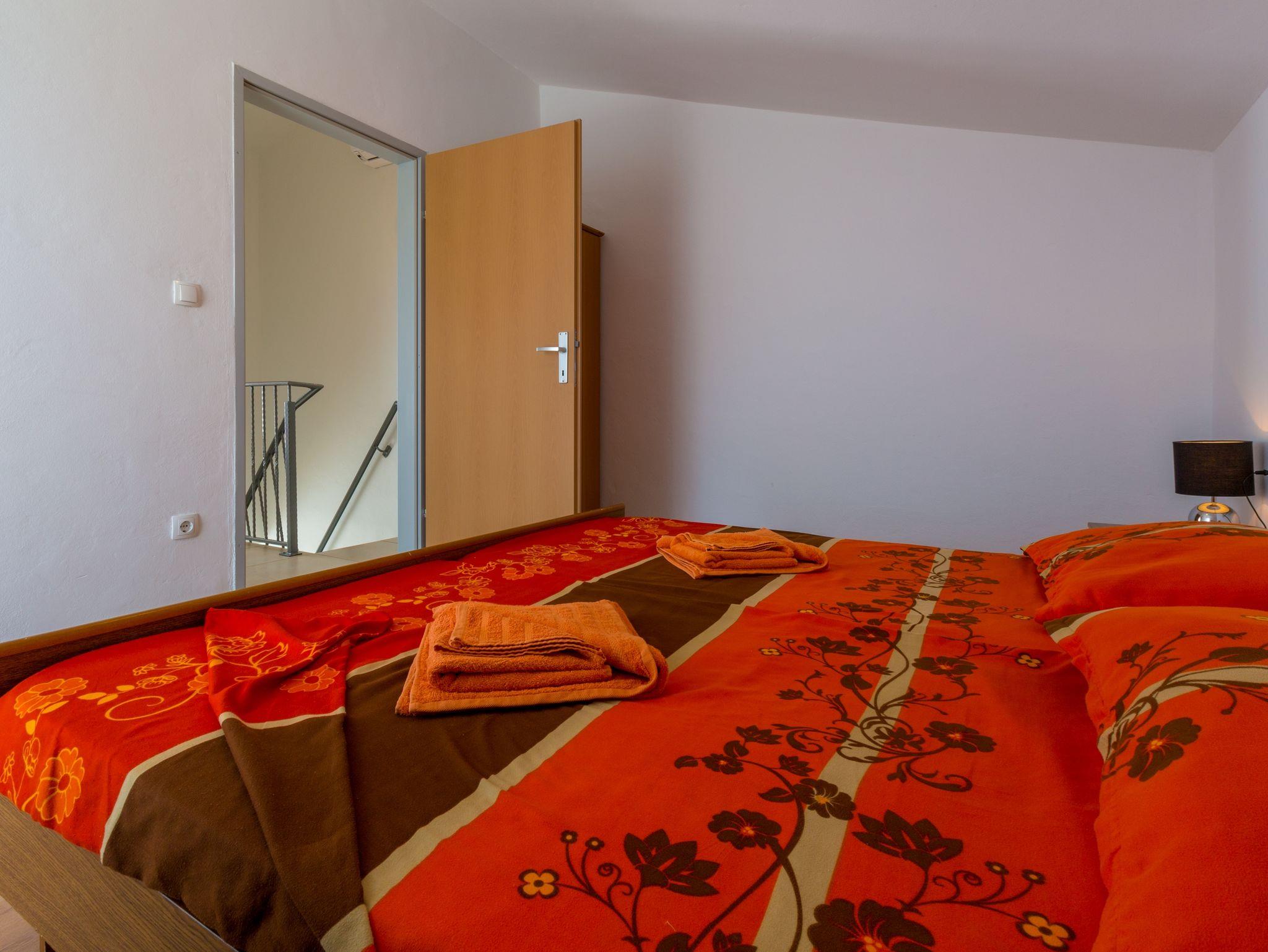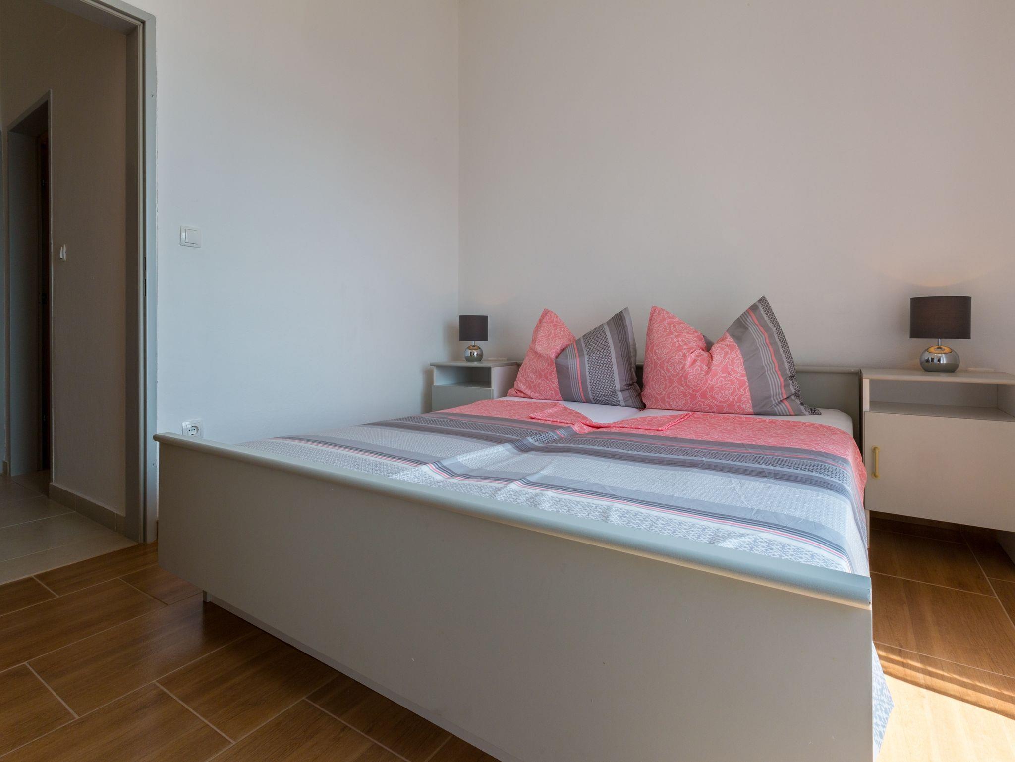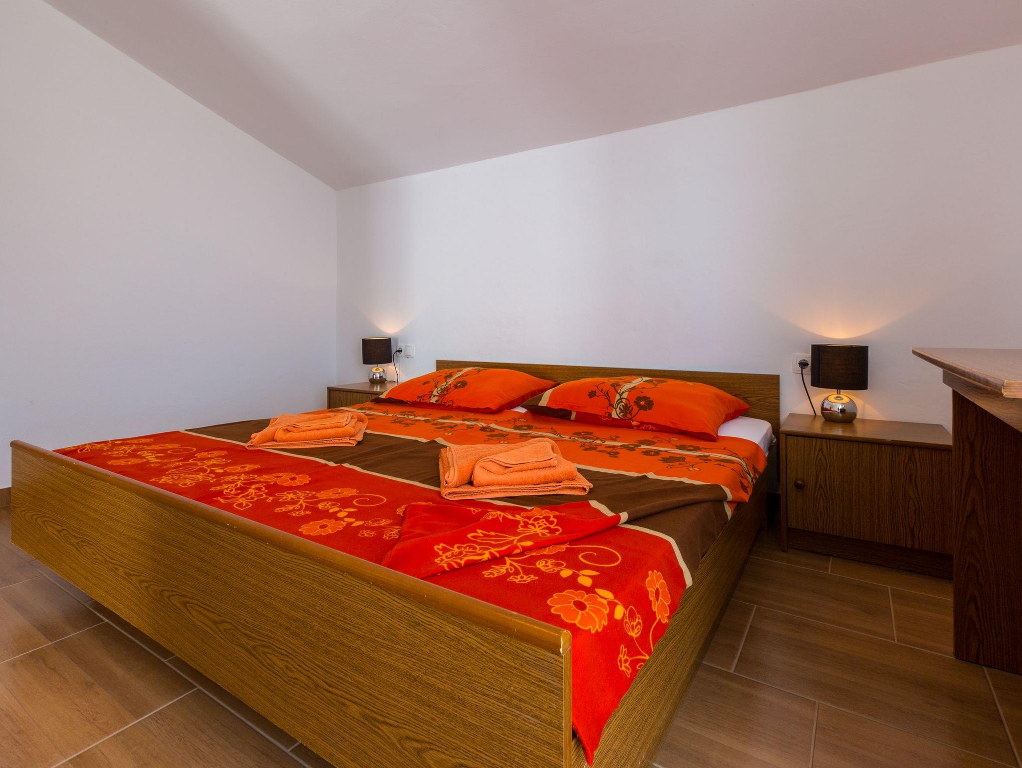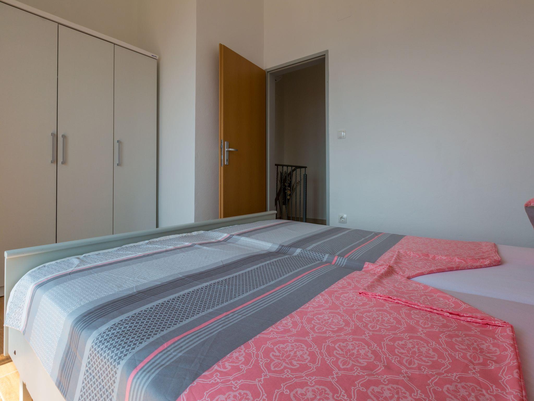Ferienwohnung bietet Platz für 4 Gäste. Die Betten sind in Schlafzimmern, die es 2 gibt, innerhalb einer Gesamtfläche von 75m2, angeordnet. Die Gäste haben eine eigene Terrasse zur Verfügung, auf der sie in warmen Sommernächten genießen können. Das Apartment bietet Meerblick. Es ist erlaubt, Speisen auf dem Gemeinschafts-Grill vorzubereiten. Während ihres Aufenthalts können Gäste das gemeinsam zur Nutzung stehende Schwimmbad benutzen. IM PREIS INBEGRIFFEN: Kurtaxe, Endreinigung, Pool, Parkplatz, Internet, Kinderbett. VERBINDLICHE ZUSÄTZLICHE KOSTEN: Aufzahlung für Kurzaufenthalte (prozentualer Zuschlag pro Nächtigungsanzahl: 30% - 1, 20% - 2, 10% - 3). UNVERBINDLICHE ZUSÄTZLICHE KOSTEN: Klimatisierung (7,00 € pro Nacht). Die Verfügbarkeit zusätzlicher Dienstleistungen in Ihrem reservierten Termin und die Preise derselben (falls nicht aufgeführt) müssen im Voraus überprüft werden. Zusätzliche Dienstleistungen die in der Zahlungsaufforderung nicht aufgeführt sind werden direkt beim Vermieter bezahlt, angenommen der Gast nutzt auch diese.