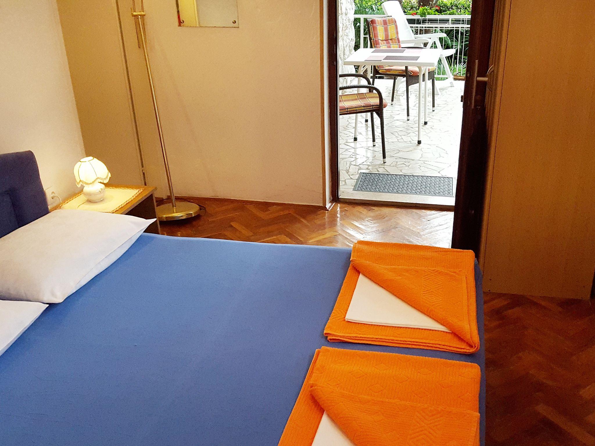 Ferienwohnung bietet Platz für 3 Gäste. Die Betten sind in Schlafzimmern, die es 1 gibt, innerhalb einer Gesamtfläche von 27m2, angeordnet. Die Gäste haben eine eigene Terrasse zur Verfügung, auf der sie in warmen Sommernächten genießen können. Es ist erlaubt, Speisen auf dem Gemeinschafts-Grill vorzubereiten. In der Unterkunftseinheit besteht die Möglichkeit des Mitbringens von Haustieren gegen Aufpreis. Durch das Schlafzimmer der gebuchten Unterkunftseinheit geht man in die andere Räume der Einheit. IM PREIS INBEGRIFFEN: Kurtaxe, Endreinigung, Klimatisierung, Parkplatz, Internet, Bügeleisen, Bügelbrett, Föhn, tragbarer Grill. VERBINDLICHE ZUSÄTZLICHE KOSTEN: Aufzahlung für Kurzaufenthalte (prozentualer Zuschlag pro Nächtigungsanzahl: 30% - 1, 20% - 2, 10% - 3). UNVERBINDLICHE ZUSÄTZLICHE KOSTEN: Wäschewaschen (5,00 € Waschen), Haustiere (12,00 € pro Nacht). Die Verfügbarkeit zusätzlicher Dienstleistungen in Ihrem reservierten Termin und die Preise derselben (falls nicht aufgeführt) müssen im Voraus überprüft werden. Zusätzliche Dienstleistungen die in der Zahlungsaufforderung nicht aufgeführt sind werden direkt beim Vermieter bezahlt, angenommen der Gast nutzt auch diese.