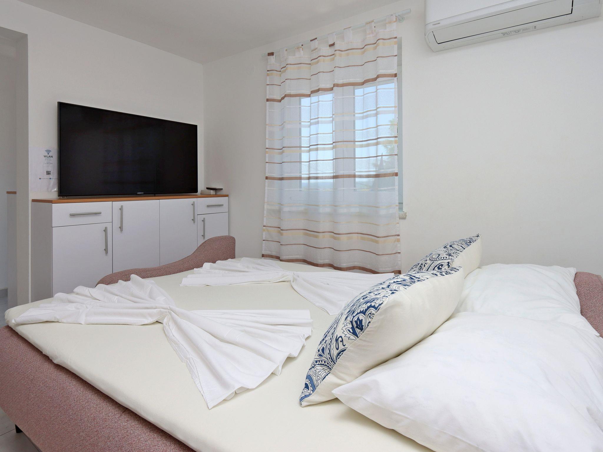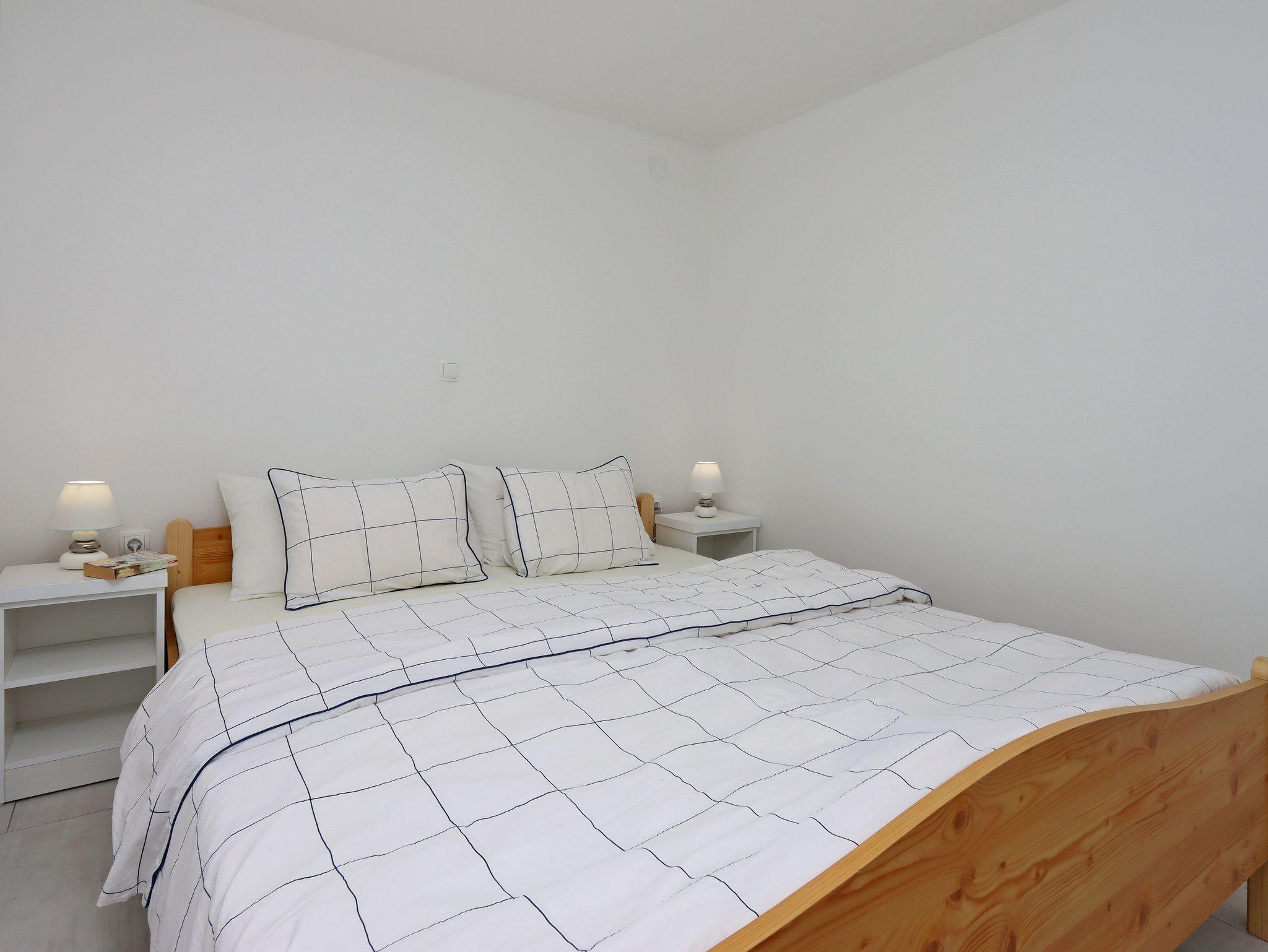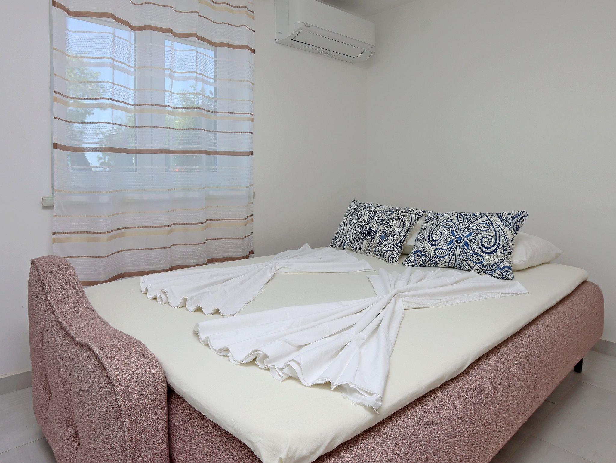 Ferienwohnung bietet Platz für 4 Gäste. Die Betten sind in Schlafzimmern, die es 1 gibt, und in Wohnzimmer, innerhalb einer Gesamtfläche von 43m2, angeordnet. Die Gäste haben eine eigene Terrasse zur Verfügung, auf der sie in warmen Sommernächten genießen können. Das Apartment bietet Meerblick. Es ist erlaubt, Speisen auf dem Gemeinschafts-Grill vorzubereiten. Unterkunftseinheit hat Räume, die von dem Rest der Einheit abgetrennt werden. IM PREIS INBEGRIFFEN: Kurtaxe, Endreinigung, Klimatisierung, Parkplatz, Internet, Kinderbett, Bügeleisen, Bügelbrett, Föhn. VERBINDLICHE ZUSÄTZLICHE KOSTEN: Aufzahlung für Kurzaufenthalte (prozentualer Zuschlag pro Nächtigungsanzahl: 30% - 1, 20% - 2, 10% - 3). UNVERBINDLICHE ZUSÄTZLICHE KOSTEN: Wäschewaschen (5,00 € Waschen). Die Verfügbarkeit zusätzlicher Dienstleistungen in Ihrem reservierten Termin und die Preise derselben (falls nicht aufgeführt) müssen im Voraus überprüft werden. Zusätzliche Dienstleistungen die in der Zahlungsaufforderung nicht aufgeführt sind werden direkt beim Vermieter bezahlt, angenommen der Gast nutzt auch diese. Ermäßigung auf den Grundpreis: Gratistag 14=13 (bei einem Aufenthalt von 14 Tagen oder mehr erhalten Sie einen Gratistag für den Aufenthalt bis 31.12.26).