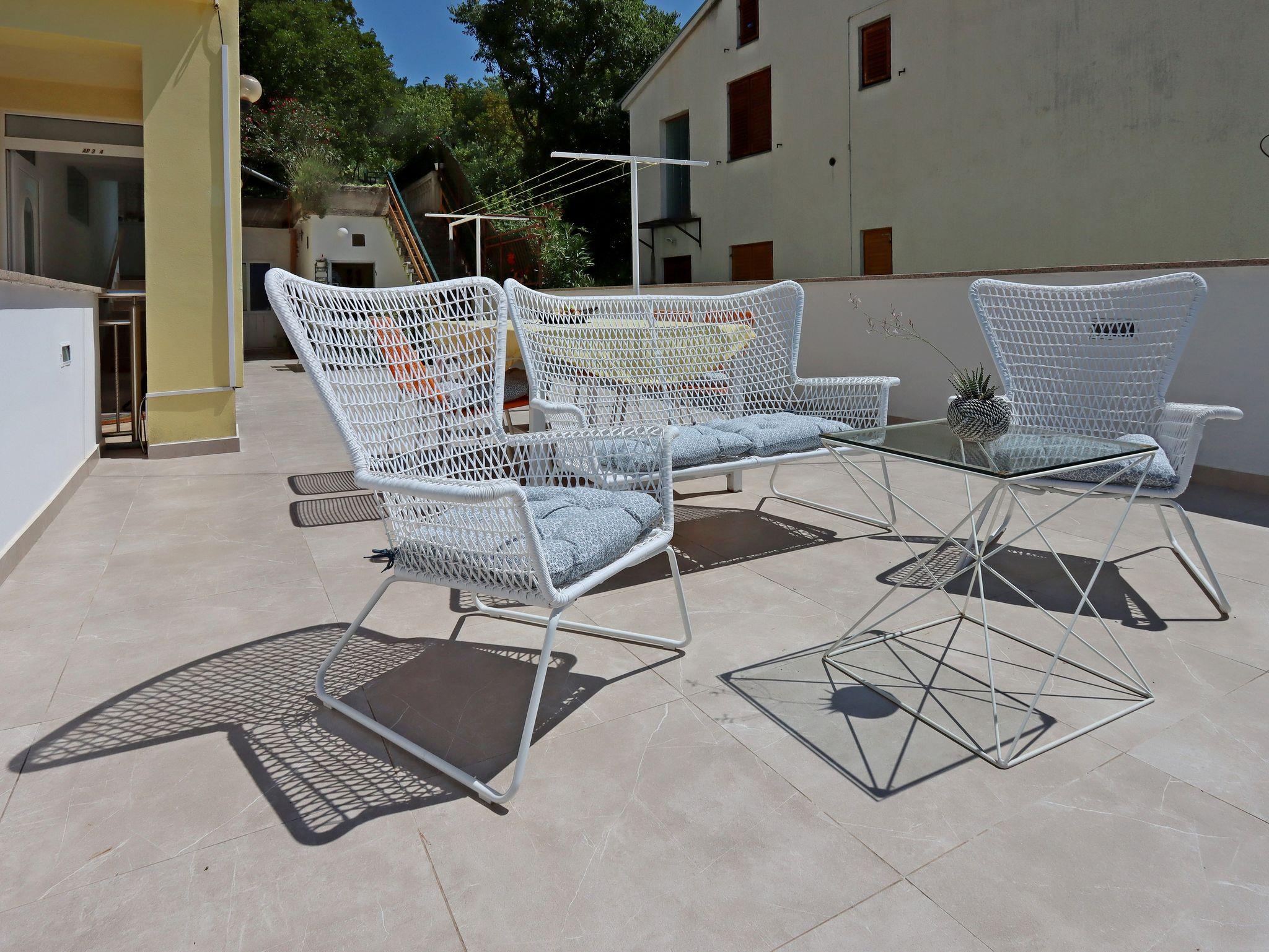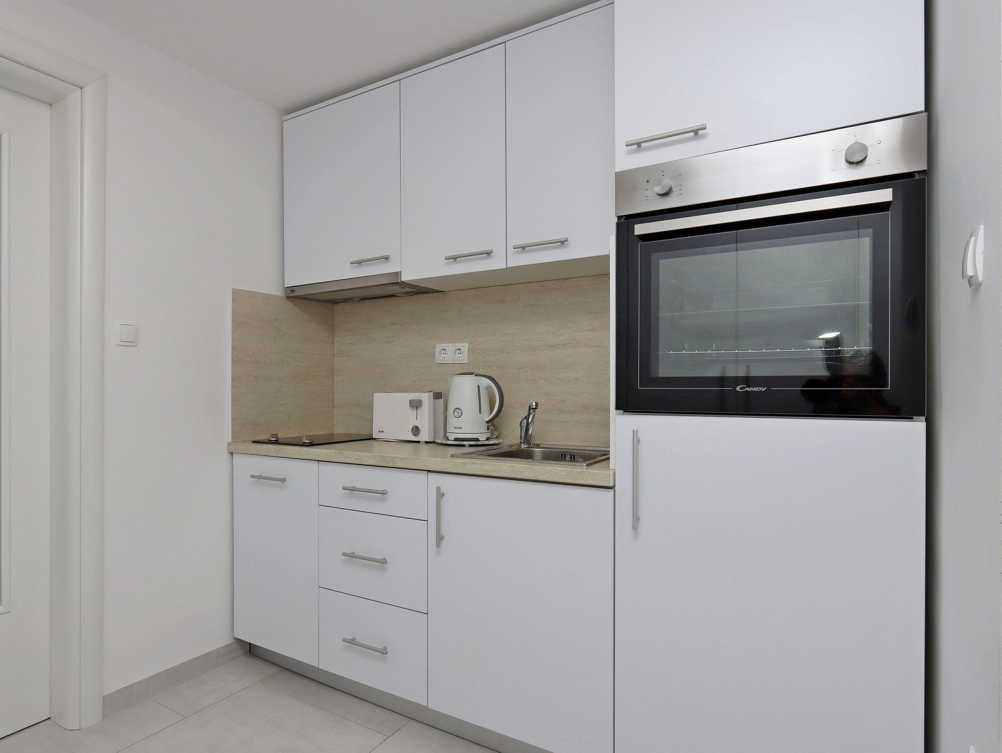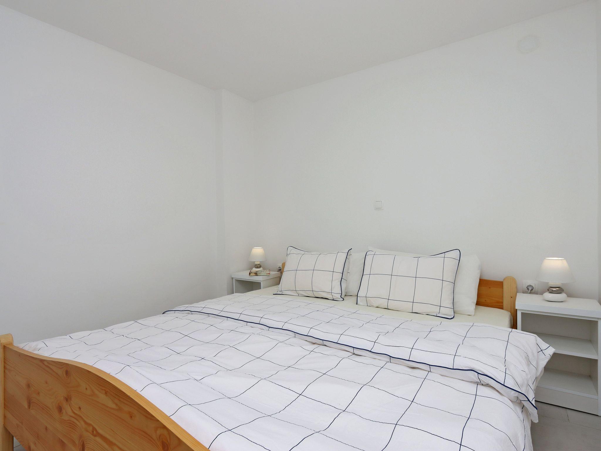 Ferienwohnung bietet Platz für 4 Gäste. Die Betten sind in Schlafzimmern, die es 1 gibt, und in Wohnzimmer, innerhalb einer Gesamtfläche von 43m2, angeordnet. Die Gäste haben eine eigene Terrasse zur Verfügung, auf der sie in warmen Sommernächten genießen können. Das Apartment bietet Meerblick. Es ist erlaubt, Speisen auf dem Gemeinschafts-Grill vorzubereiten. Unterkunftseinheit hat Räume, die von dem Rest der Einheit abgetrennt werden. IM PREIS INBEGRIFFEN: Kurtaxe, Endreinigung, Klimatisierung, Parkplatz, Internet, Kinderbett, Bügeleisen, Bügelbrett, Föhn. VERBINDLICHE ZUSÄTZLICHE KOSTEN: Aufzahlung für Kurzaufenthalte (prozentualer Zuschlag pro Nächtigungsanzahl: 30% - 1, 20% - 2, 10% - 3). UNVERBINDLICHE ZUSÄTZLICHE KOSTEN: Wäschewaschen (5,00 € Waschen). Die Verfügbarkeit zusätzlicher Dienstleistungen in Ihrem reservierten Termin und die Preise derselben (falls nicht aufgeführt) müssen im Voraus überprüft werden. Zusätzliche Dienstleistungen die in der Zahlungsaufforderung nicht aufgeführt sind werden direkt beim Vermieter bezahlt, angenommen der Gast nutzt auch diese. Ermäßigung auf den Grundpreis: Gratistag 14=13 (bei einem Aufenthalt von 14 Tagen oder mehr erhalten Sie einen Gratistag für den Aufenthalt bis 31.12.26).