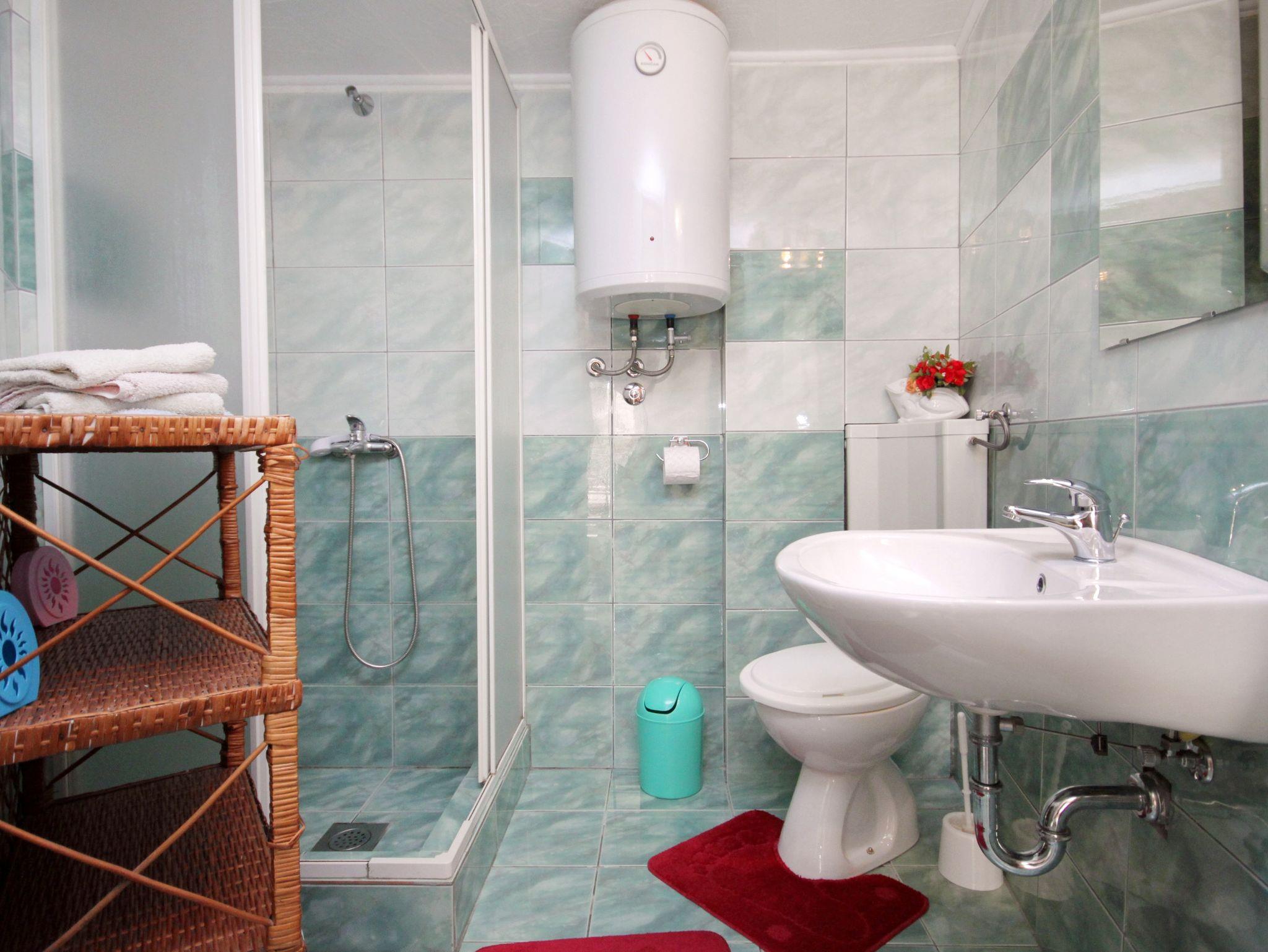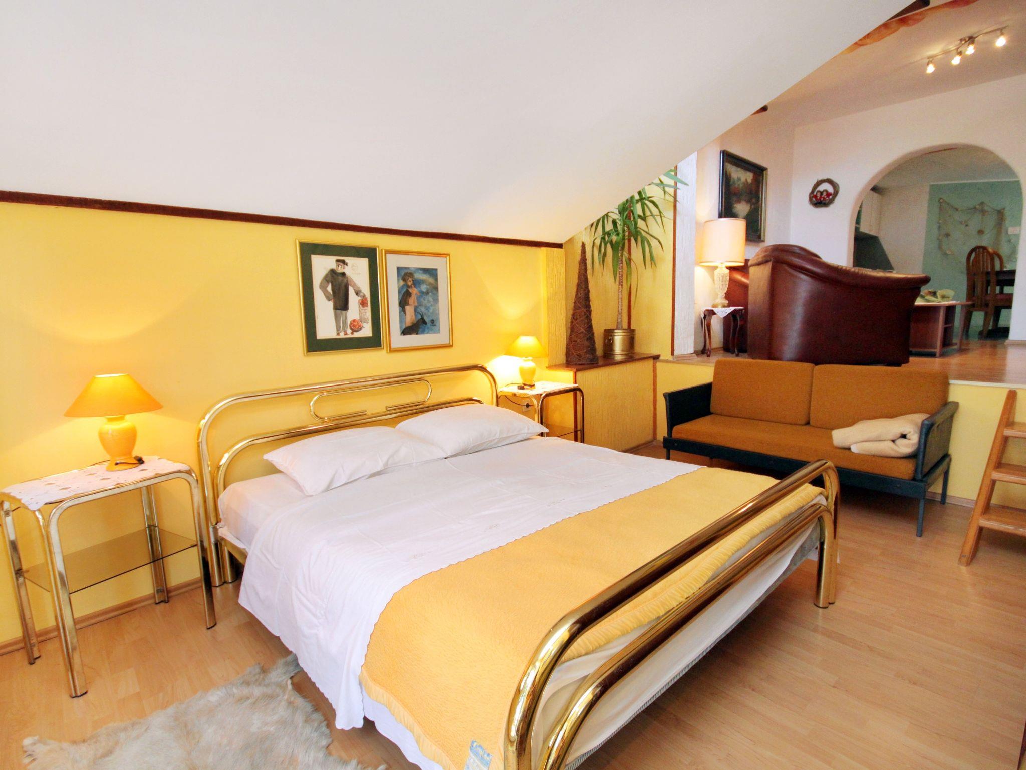 Studio bietet Platz für 3 Gäste. Die Betten sind in Schlafzimmern, die es 1 gibt, und in Wohnzimmer, innerhalb einer Gesamtfläche von 42m2, angeordnet. Die Gäste haben eine eigene Terrasse zur Verfügung, auf der sie in warmen Sommernächten genießen können. Das Studio-Apartment bietet Meerblick. Für vollen Genuss und Entspannung gibt es einen privaten Grill für Gäste dieser Unterkunft. In der Unterkunftseinheit besteht die Möglichkeit des Mitbringens von Haustieren gegen Aufpreis. IM PREIS INBEGRIFFEN: Kurtaxe, Endreinigung, Parkplatz, Internet, Bügeleisen, Bügelbrett, Föhn. VERBINDLICHE ZUSÄTZLICHE KOSTEN: Aufzahlung für Kurzaufenthalte (prozentualer Zuschlag pro Nächtigungsanzahl: 30% - 1, 20% - 2, 10% - 3). UNVERBINDLICHE ZUSÄTZLICHE KOSTEN: Klimatisierung (8,00 € pro Nacht), Wäschewaschen (5,00 € Waschen), Haustiere (8,00 € pro Nacht). Die Verfügbarkeit zusätzlicher Dienstleistungen in Ihrem reservierten Termin und die Preise derselben (falls nicht aufgeführt) müssen im Voraus überprüft werden. Zusätzliche Dienstleistungen die in der Zahlungsaufforderung nicht aufgeführt sind werden direkt beim Vermieter bezahlt, angenommen der Gast nutzt auch diese.
