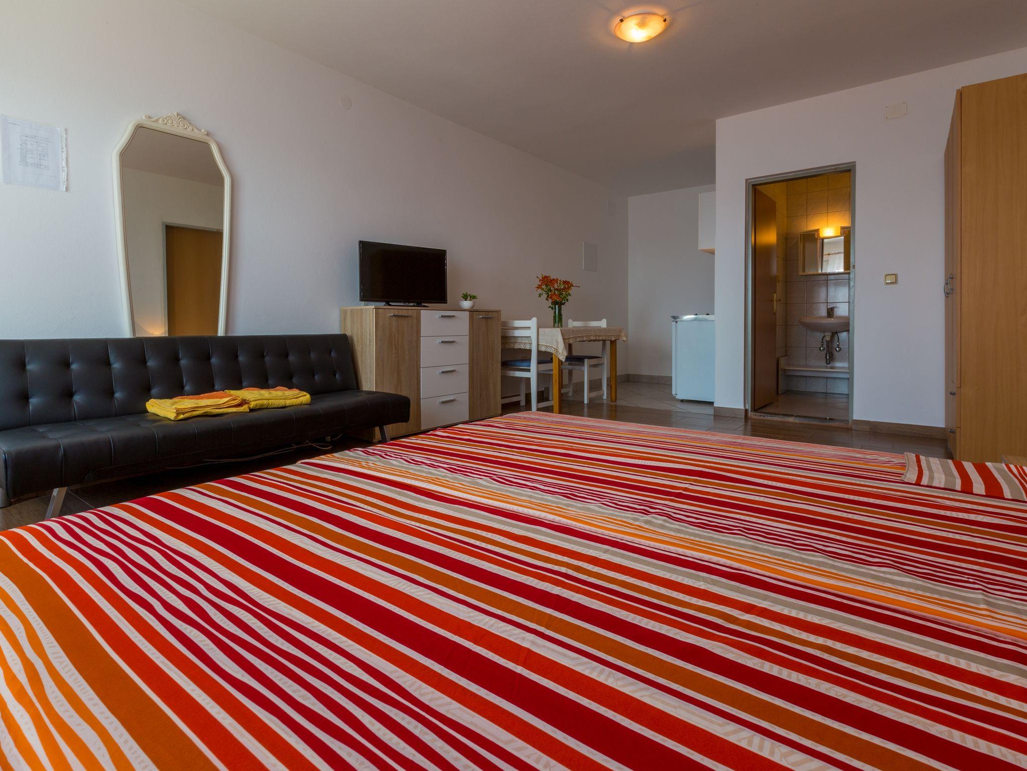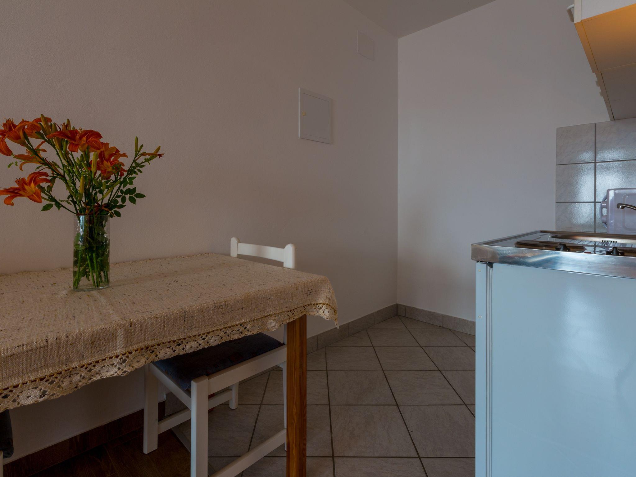 Studio bietet Platz für 2 Gäste. Die Betten sind in Schlafzimmern, die es 1 gibt, innerhalb einer Gesamtfläche von 30m2, angeordnet. Die Gäste haben einen eigenen Balkon zur Verfügung, auf der sie in warmen Sommernächten genießen können. Das Studio-Apartment bietet Meerblick. Es ist erlaubt, Speisen auf dem Gemeinschafts-Grill vorzubereiten. Während ihres Aufenthalts können Gäste das gemeinsam zur Nutzung stehende Schwimmbad benutzen. IM PREIS INBEGRIFFEN: Kurtaxe, Endreinigung, Pool, Parkplatz, Internet, Kinderbett. VERBINDLICHE ZUSÄTZLICHE KOSTEN: Aufzahlung für Kurzaufenthalte (prozentualer Zuschlag pro Nächtigungsanzahl: 30% - 1, 20% - 2, 10% - 3). UNVERBINDLICHE ZUSÄTZLICHE KOSTEN: Klimatisierung (7,00 € pro Nacht). Die Verfügbarkeit zusätzlicher Dienstleistungen in Ihrem reservierten Termin und die Preise derselben (falls nicht aufgeführt) müssen im Voraus überprüft werden. Zusätzliche Dienstleistungen die in der Zahlungsaufforderung nicht aufgeführt sind werden direkt beim Vermieter bezahlt, angenommen der Gast nutzt auch diese.