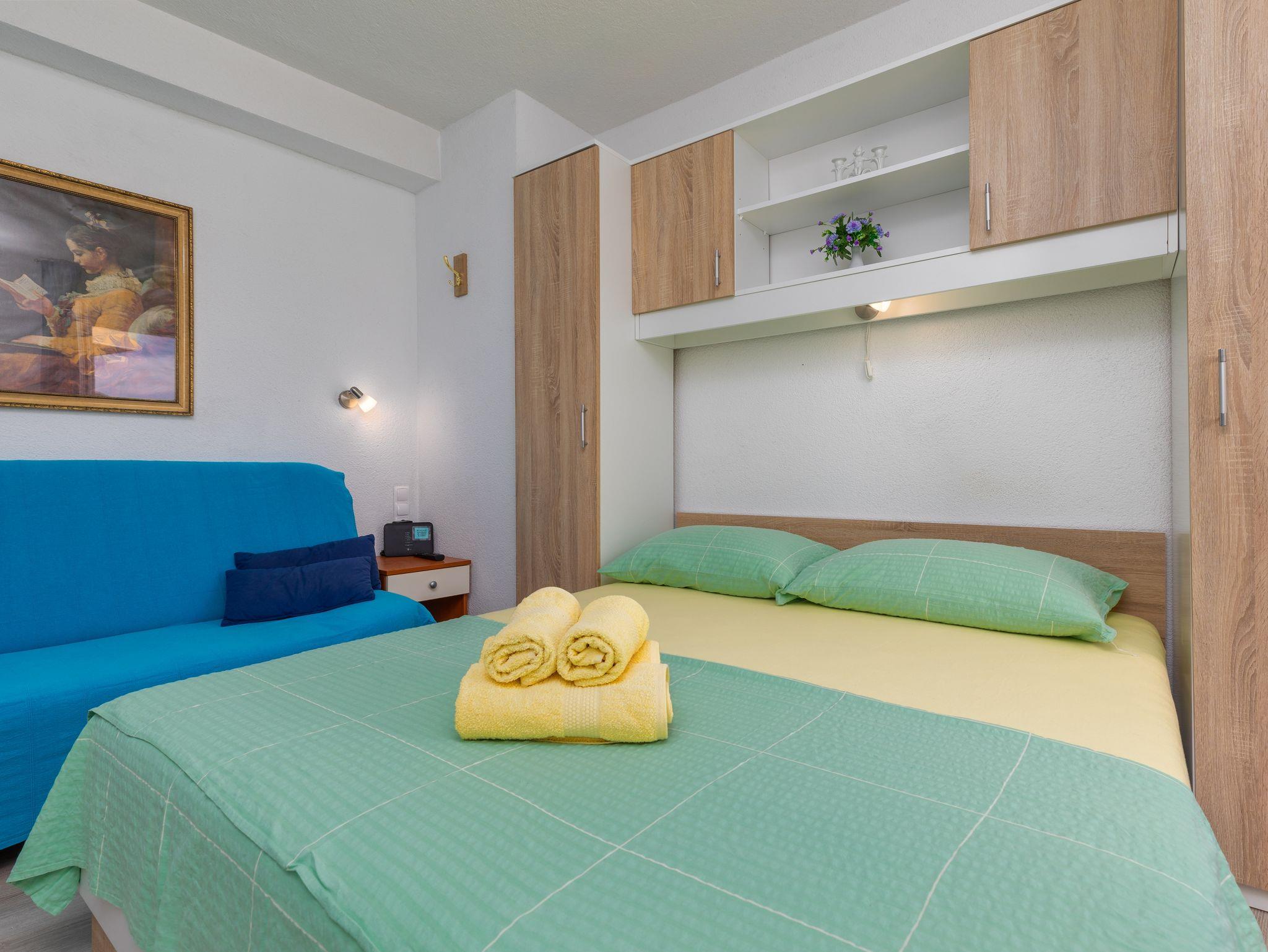 Studio bietet Platz für 2 Gäste. Die Betten sind in Schlafzimmern, die es 1 gibt, innerhalb einer Gesamtfläche von 22m2, angeordnet. Die Gäste haben einen eigenen Balkon zur Verfügung, auf der sie in warmen Sommernächten genießen können. Das Studio-Apartment bietet Meerblick. IM PREIS INBEGRIFFEN: Kurtaxe, Endreinigung, Klimatisierung, Parkplatz, Internet. Die Verfügbarkeit zusätzlicher Dienstleistungen in Ihrem reservierten Termin und die Preise derselben (falls nicht aufgeführt) müssen im Voraus überprüft werden. Zusätzliche Dienstleistungen die in der Zahlungsaufforderung nicht aufgeführt sind werden direkt beim Vermieter bezahlt, angenommen der Gast nutzt auch diese.