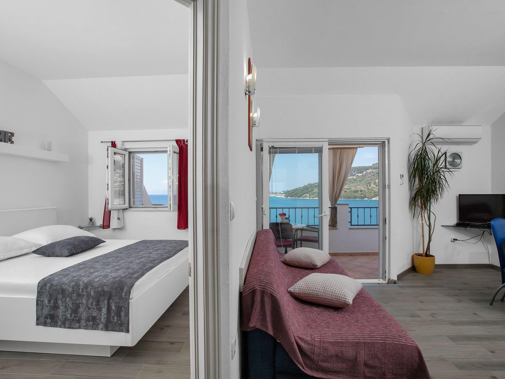 Ferienwohnung bietet Platz für 3 Gäste. Die Betten sind in Schlafzimmern, die es 1 gibt, und in Wohnzimmer, innerhalb einer Gesamtfläche von 33m2, angeordnet. Die Gäste haben eine eigene Terrasse zur Verfügung, auf der sie in warmen Sommernächten genießen können. Das Apartment bietet Meerblick. IM PREIS INBEGRIFFEN: Kurtaxe, Endreinigung, Klimatisierung, Parkplatz, Internet, Bügeleisen, Bügelbrett, Föhn. VERBINDLICHE ZUSÄTZLICHE KOSTEN: Aufzahlung für Kurzaufenthalte (prozentualer Zuschlag pro Nächtigungsanzahl: 30% - 1, 20% - 2, 10% - 3). Die Verfügbarkeit zusätzlicher Dienstleistungen in Ihrem reservierten Termin und die Preise derselben (falls nicht aufgeführt) müssen im Voraus überprüft werden. Zusätzliche Dienstleistungen die in der Zahlungsaufforderung nicht aufgeführt sind werden direkt beim Vermieter bezahlt, angenommen der Gast nutzt auch diese.