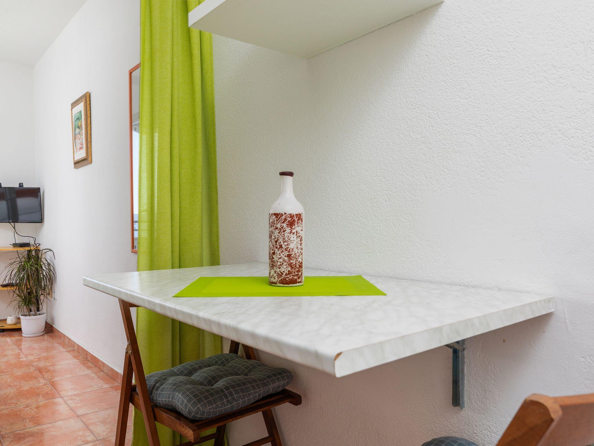 Studio bietet Platz für 2 Gäste. Die Betten sind in Schlafzimmern, die es 1 gibt, innerhalb einer Gesamtfläche von 25m2, angeordnet. Die Gäste haben einen eigenen Balkon zur Verfügung, auf der sie in warmen Sommernächten genießen können. Das Studio-Apartment bietet Meerblick. IM PREIS INBEGRIFFEN: Kurtaxe, Endreinigung, Klimatisierung, Parkplatz, Internet, 1 Bett für Kinder (im Preis enthalten). VERBINDLICHE ZUSÄTZLICHE KOSTEN: Aufzahlung für Kurzaufenthalte (prozentualer Zuschlag pro Nächtigungsanzahl: 30% - 1, 20% - 2, 10% - 3). Die Verfügbarkeit zusätzlicher Dienstleistungen in Ihrem reservierten Termin und die Preise derselben (falls nicht aufgeführt) müssen im Voraus überprüft werden. Zusätzliche Dienstleistungen die in der Zahlungsaufforderung nicht aufgeführt sind werden direkt beim Vermieter bezahlt, angenommen der Gast nutzt auch diese.