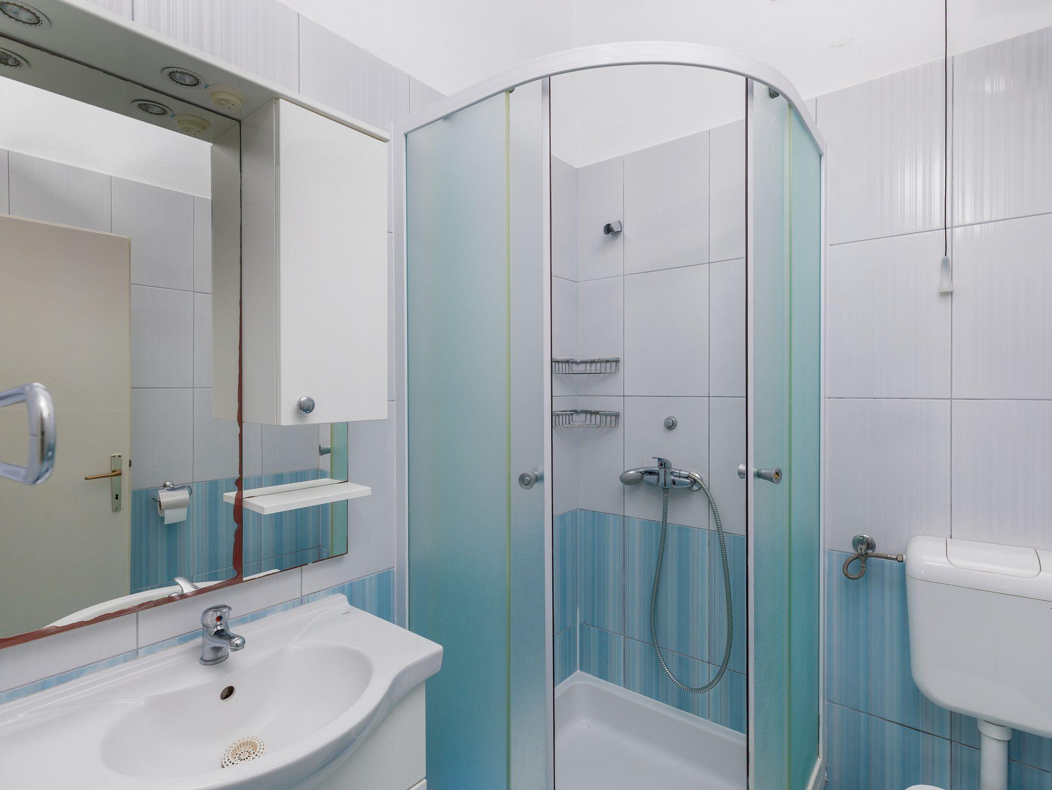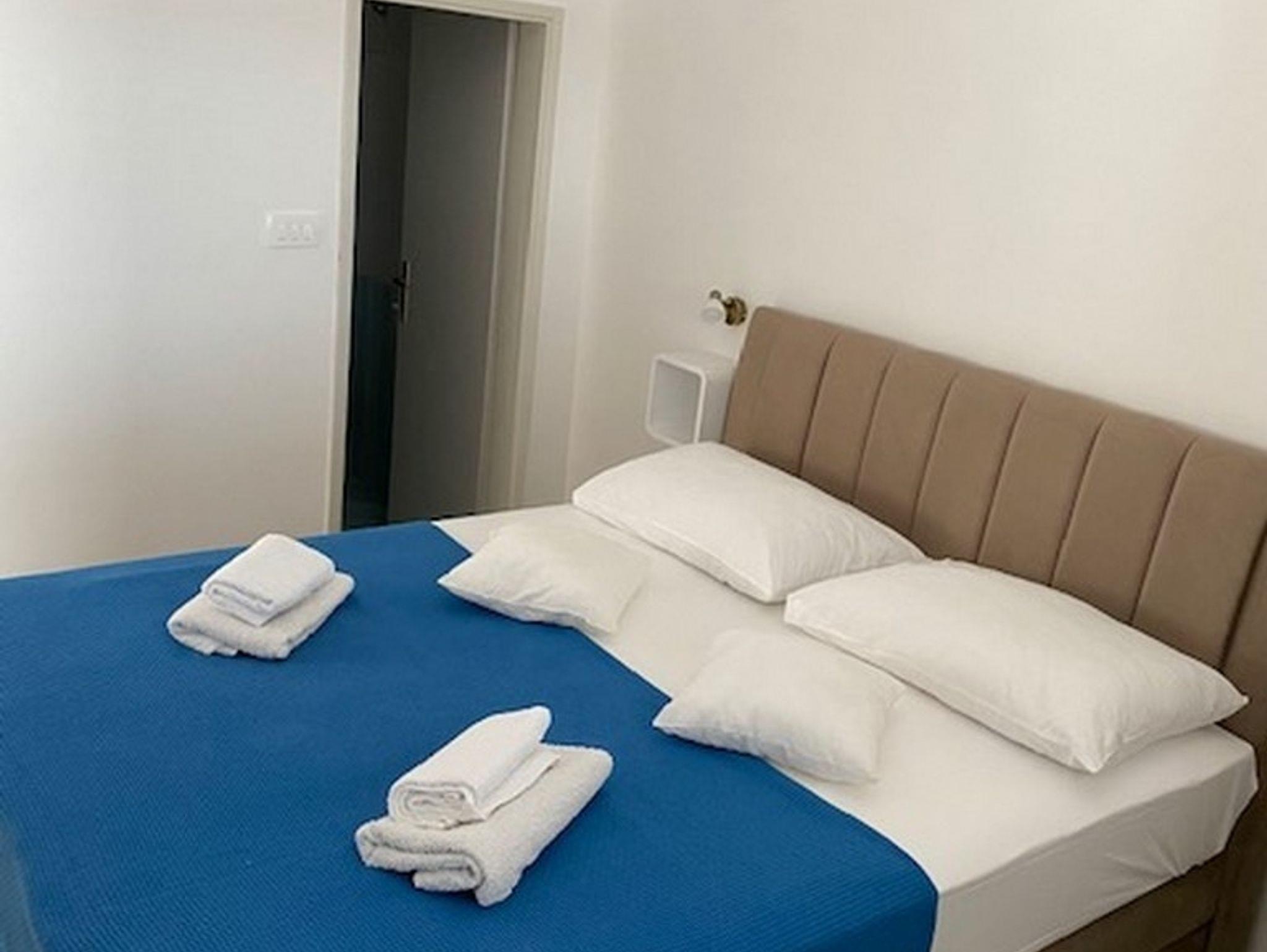 Ferienwohnung bietet Platz für 4 Gäste. Die Betten sind in Schlafzimmern, die es 1 gibt, und in Wohnzimmer, innerhalb einer Gesamtfläche von 45m2, angeordnet. Die Gäste haben eine eigene Terrasse zur Verfügung, auf der sie in warmen Sommernächten genießen können. Das Apartment bietet Meerblick. Räume der gebuchten Unterkunftseinheit werden nicht in eine Ganze verbunden. Unterkunftseinheit hat Räume, die von dem Rest der Einheit abgetrennt werden. IM PREIS INBEGRIFFEN: Kurtaxe, Endreinigung, Klimatisierung, Parkplatz, Internet. VERBINDLICHE ZUSÄTZLICHE KOSTEN: Aufzahlung für Kurzaufenthalte (prozentualer Zuschlag pro Nächtigungsanzahl: 30% - 1, 20% - 2, 10% - 3). Die Verfügbarkeit zusätzlicher Dienstleistungen in Ihrem reservierten Termin und die Preise derselben (falls nicht aufgeführt) müssen im Voraus überprüft werden. Zusätzliche Dienstleistungen die in der Zahlungsaufforderung nicht aufgeführt sind werden direkt beim Vermieter bezahlt, angenommen der Gast nutzt auch diese.