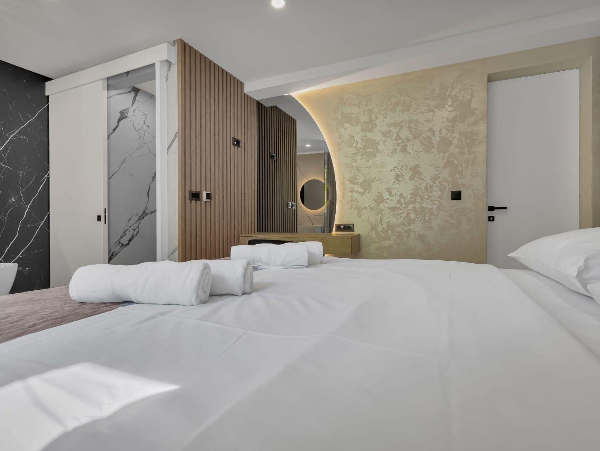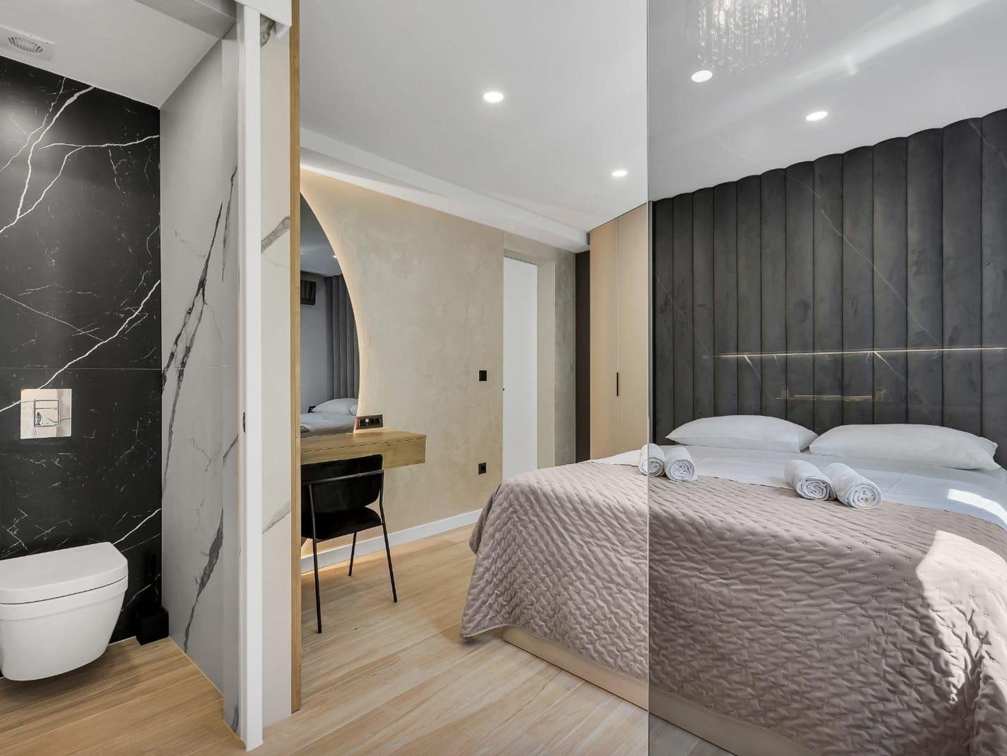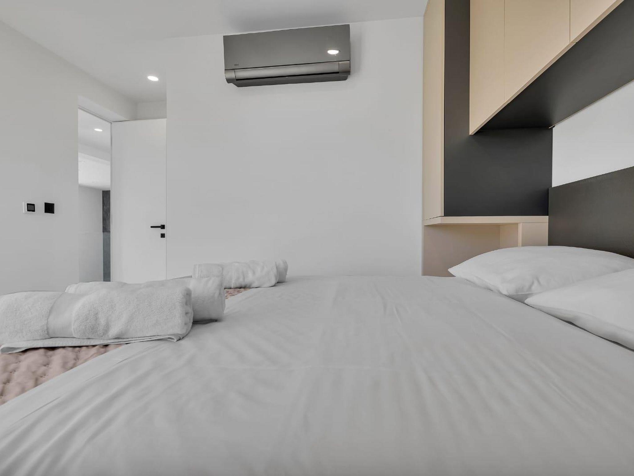 Ferienwohnung bietet Platz für 8 Gäste. Die Betten sind in Schlafzimmern, die es 4 gibt, innerhalb einer Gesamtfläche von 162m2, angeordnet. Die Gäste haben eine eigene Terrasse zur Verfügung, auf der sie in warmen Sommernächten genießen können. Das Apartment bietet Meerblick. Es ist erlaubt, Speisen auf dem Gemeinschafts-Grill vorzubereiten. IM PREIS INBEGRIFFEN: Kurtaxe, Endreinigung, Klimatisierung, Parkplatz, Internet, Zusatzbett, Bügeleisen, Bügelbrett, Föhn. UNVERBINDLICHE ZUSÄTZLICHE KOSTEN: Frühstück (15,00 €, 50% Nachlass für Kinder zwischen 4 und 12 Jahren, Kinder bis 4 Jahre sind frei.). Die Verfügbarkeit zusätzlicher Dienstleistungen in Ihrem reservierten Termin und die Preise derselben (falls nicht aufgeführt) müssen im Voraus überprüft werden. Zusätzliche Dienstleistungen die in der Zahlungsaufforderung nicht aufgeführt sind werden direkt beim Vermieter bezahlt, angenommen der Gast nutzt auch diese.