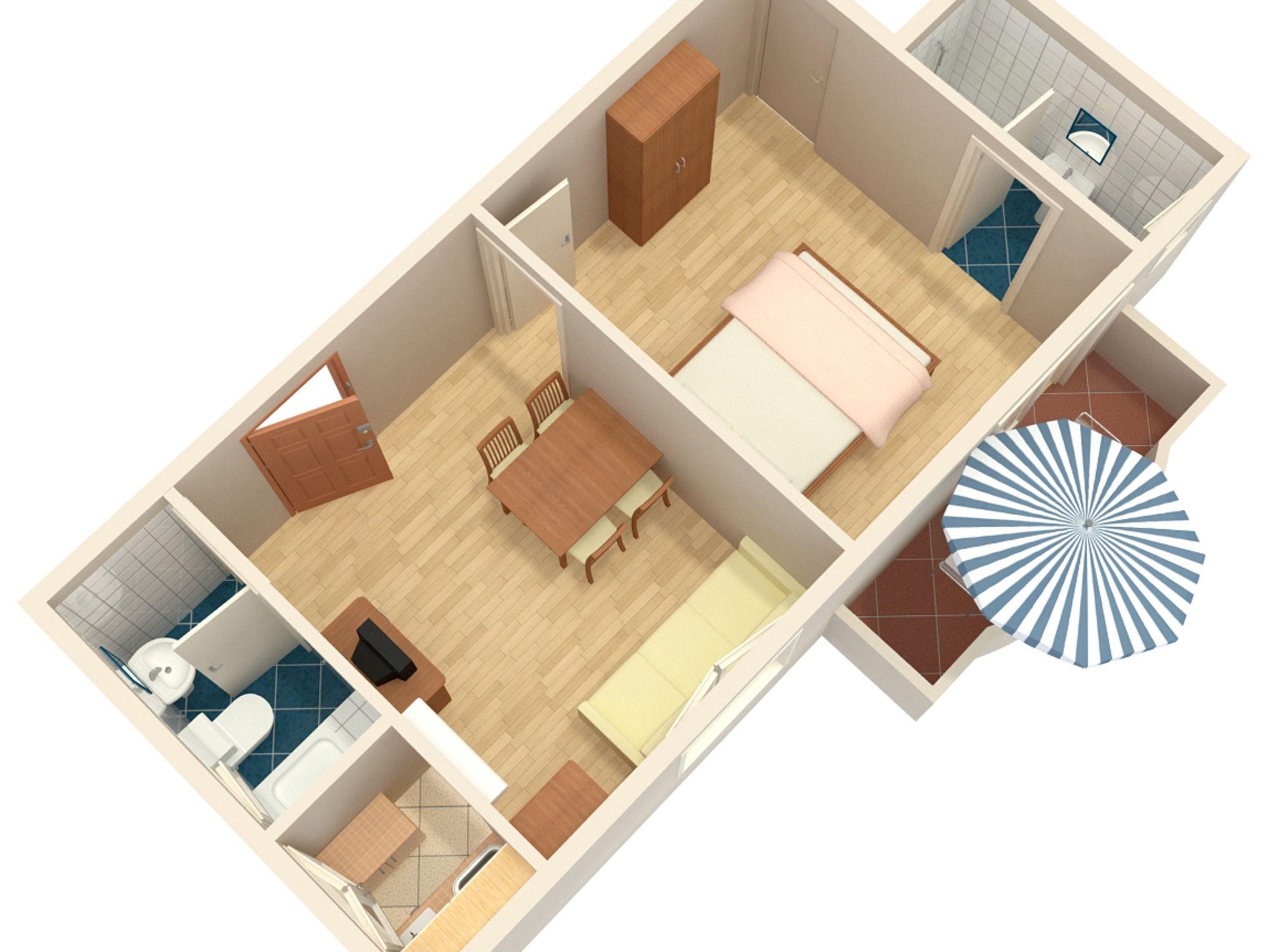 Ferienwohnung bietet Platz für 3 Gäste. Die Betten sind in Schlafzimmern, die es 1 gibt, und in Wohnzimmer, innerhalb einer Gesamtfläche von 32m2, angeordnet. Die Gäste haben einen eigenen Balkon zur Verfügung, auf der sie in warmen Sommernächten genießen können. Das Apartment bietet Meerblick. Es ist erlaubt, Speisen auf dem Gemeinschafts-Grill vorzubereiten. In der Unterkunftseinheit besteht die Möglichkeit des Mitbringens von Haustieren gegen Aufpreis. IM PREIS INBEGRIFFEN: Kurtaxe, Endreinigung, Internet, Kinderbett, Bügeleisen, Bügelbrett, Föhn. VERBINDLICHE ZUSÄTZLICHE KOSTEN: Aufzahlung für Kurzaufenthalte (prozentualer Zuschlag pro Nächtigungsanzahl: 30% - 1, 20% - 2, 10% - 3). UNVERBINDLICHE ZUSÄTZLICHE KOSTEN: Klimatisierung (6,00 € pro Nacht), Haustiere (6,00 € pro Nacht). Die Verfügbarkeit zusätzlicher Dienstleistungen in Ihrem reservierten Termin und die Preise derselben (falls nicht aufgeführt) müssen im Voraus überprüft werden. Zusätzliche Dienstleistungen die in der Zahlungsaufforderung nicht aufgeführt sind werden direkt beim Vermieter bezahlt, angenommen der Gast nutzt auch diese. Ermäßigung auf den Grundpreis: Gratistag 14=13 (bei einem Aufenthalt von 14 Tagen oder mehr erhalten Sie einen Gratistag für den Aufenthalt bis 31.12.26).
