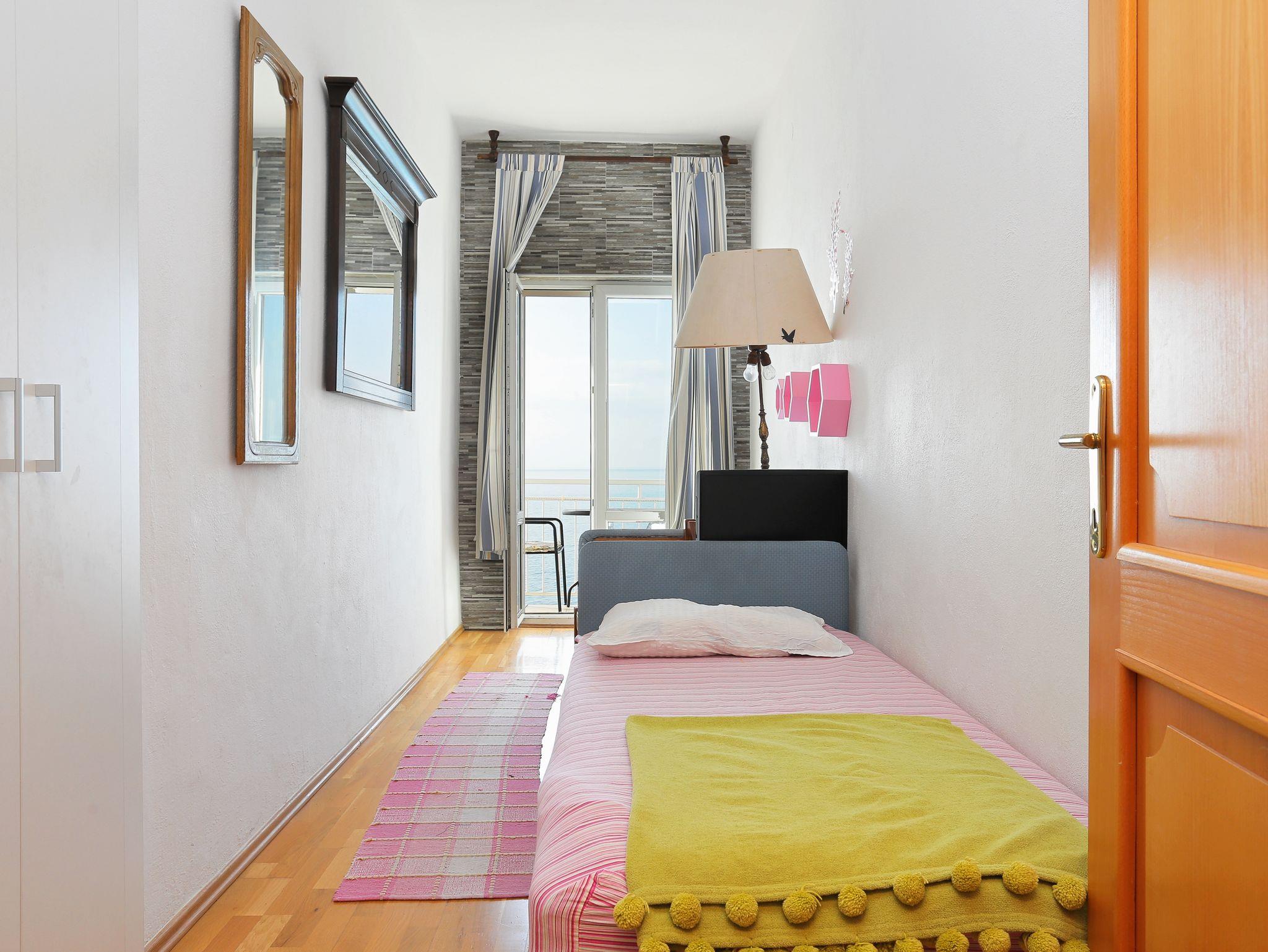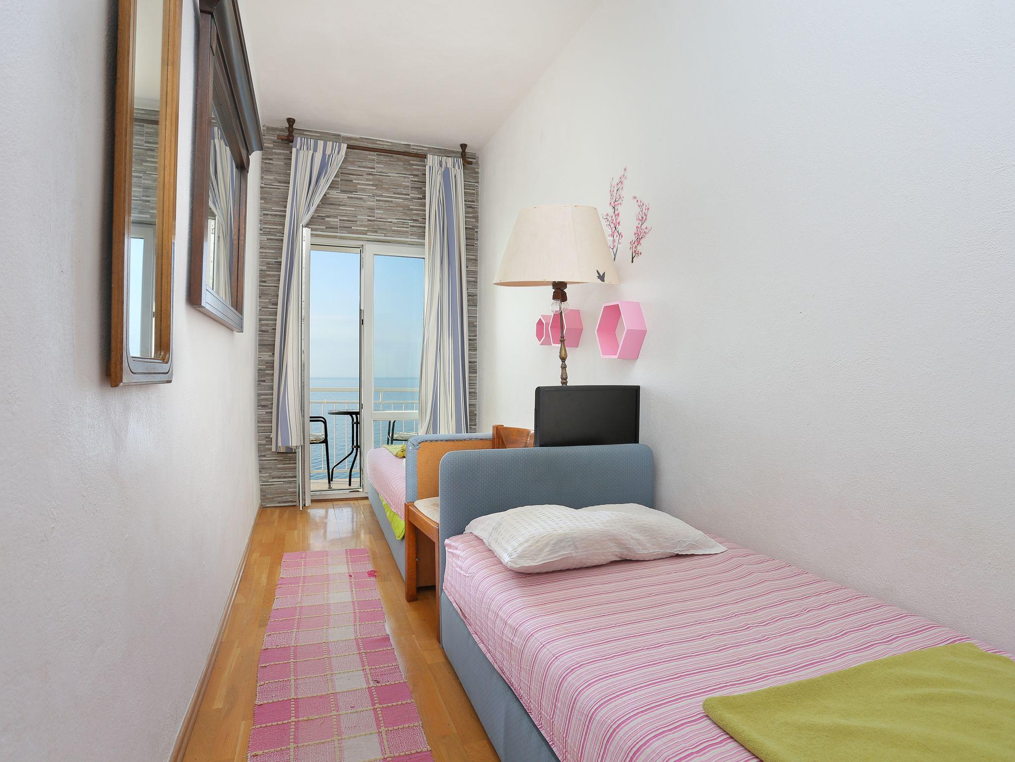 Ferienwohnung bietet Platz für 4 Gäste. Die Betten sind in Schlafzimmern, die es 2 gibt, innerhalb einer Gesamtfläche von 36m2, angeordnet. Die Gäste haben einen eigenen Balkon zur Verfügung, auf der sie in warmen Sommernächten genießen können. Das Apartment bietet Meerblick. Es ist erlaubt, Speisen auf dem Gemeinschafts-Grill vorzubereiten. In der Unterkunftseinheit besteht die Möglichkeit des Mitbringens von Haustieren gegen Aufpreis. IM PREIS INBEGRIFFEN: Kurtaxe, Endreinigung, Klimatisierung, Parkplatz, Bügeleisen, Bügelbrett, Föhn. VERBINDLICHE ZUSÄTZLICHE KOSTEN: Aufzahlung für Kurzaufenthalte (prozentualer Zuschlag pro Nächtigungsanzahl: 30% - 1, 20% - 2, 10% - 3). UNVERBINDLICHE ZUSÄTZLICHE KOSTEN: Wäschewaschen (5,00 € Waschen), Haustiere (15,00 € pro Nacht). Die Verfügbarkeit zusätzlicher Dienstleistungen in Ihrem reservierten Termin und die Preise derselben (falls nicht aufgeführt) müssen im Voraus überprüft werden. Zusätzliche Dienstleistungen die in der Zahlungsaufforderung nicht aufgeführt sind werden direkt beim Vermieter bezahlt, angenommen der Gast nutzt auch diese.