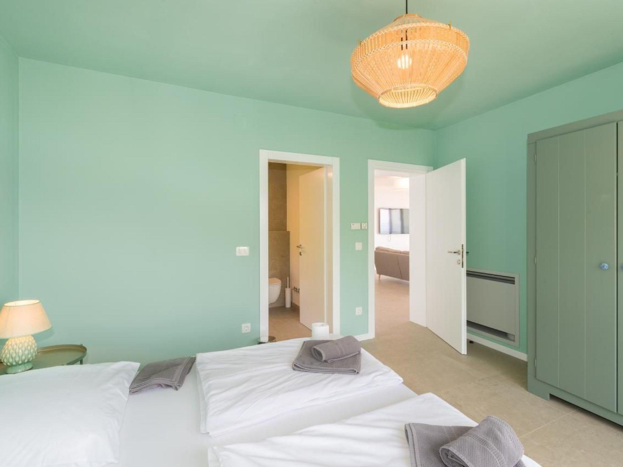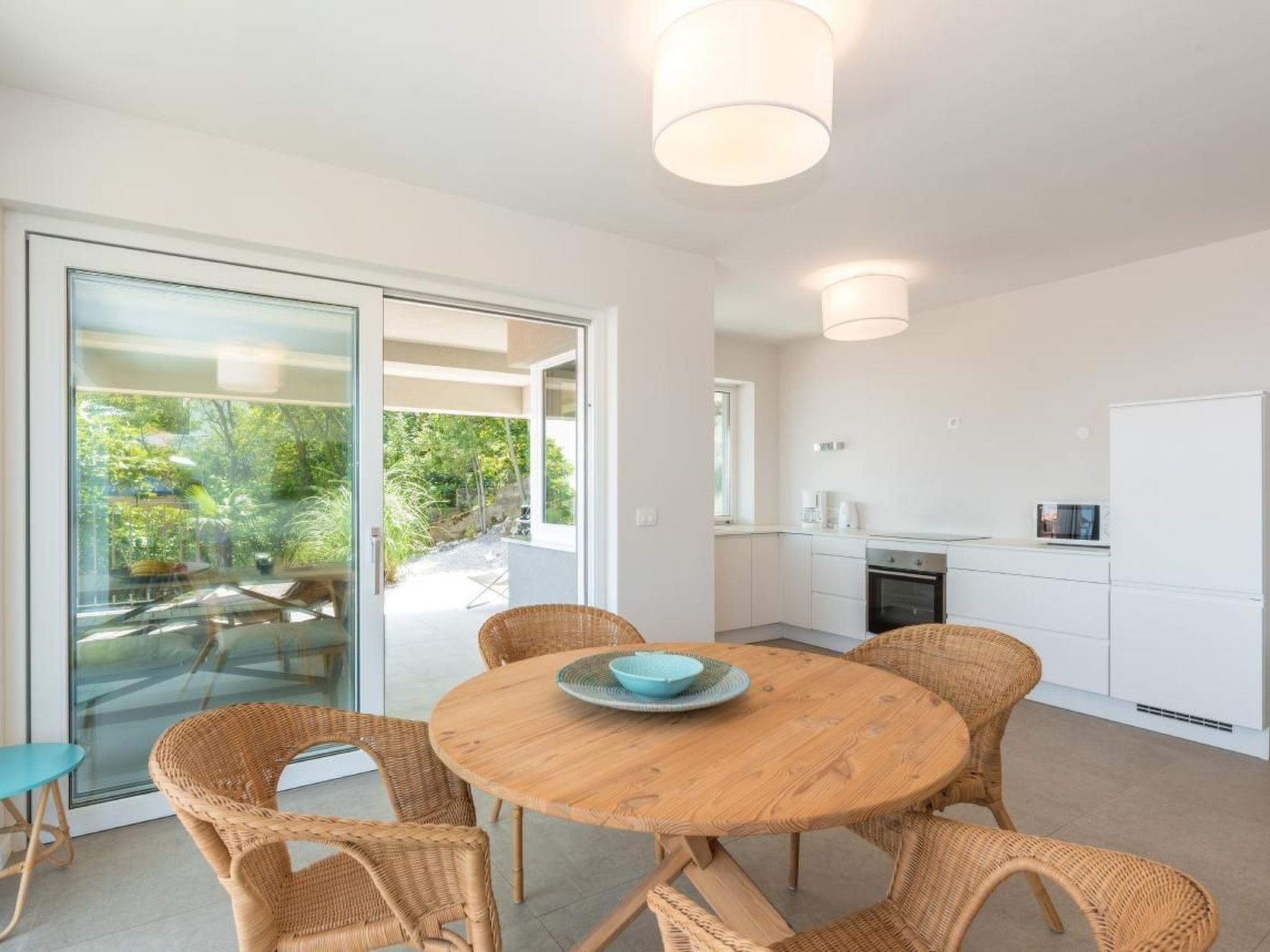 Beautiful, spacious luxury ground-floor apartment of a house newly built in 2017 in the middle of the small, Mediterranean fishing village "Sveta Marina". The region is known for its extremely clean sea water and naturalness. You will find the first swimming opportunity only 2 minutes away on foot. The apartment is very comfortable, equipped with modern, high quality interior and kitchen and offers a breathtaking view of the open sea and the quiet bay. It has a large living / dining area and 2 separate bedrooms, each with its own spacious bathroom. Private parking spaces available, a buoy for mooring boats can be provided depending on availability and prior agreement. The equipment and the location of this apartment certainly make it one of the top offers in this region. SmartTV, WiFi, SAT