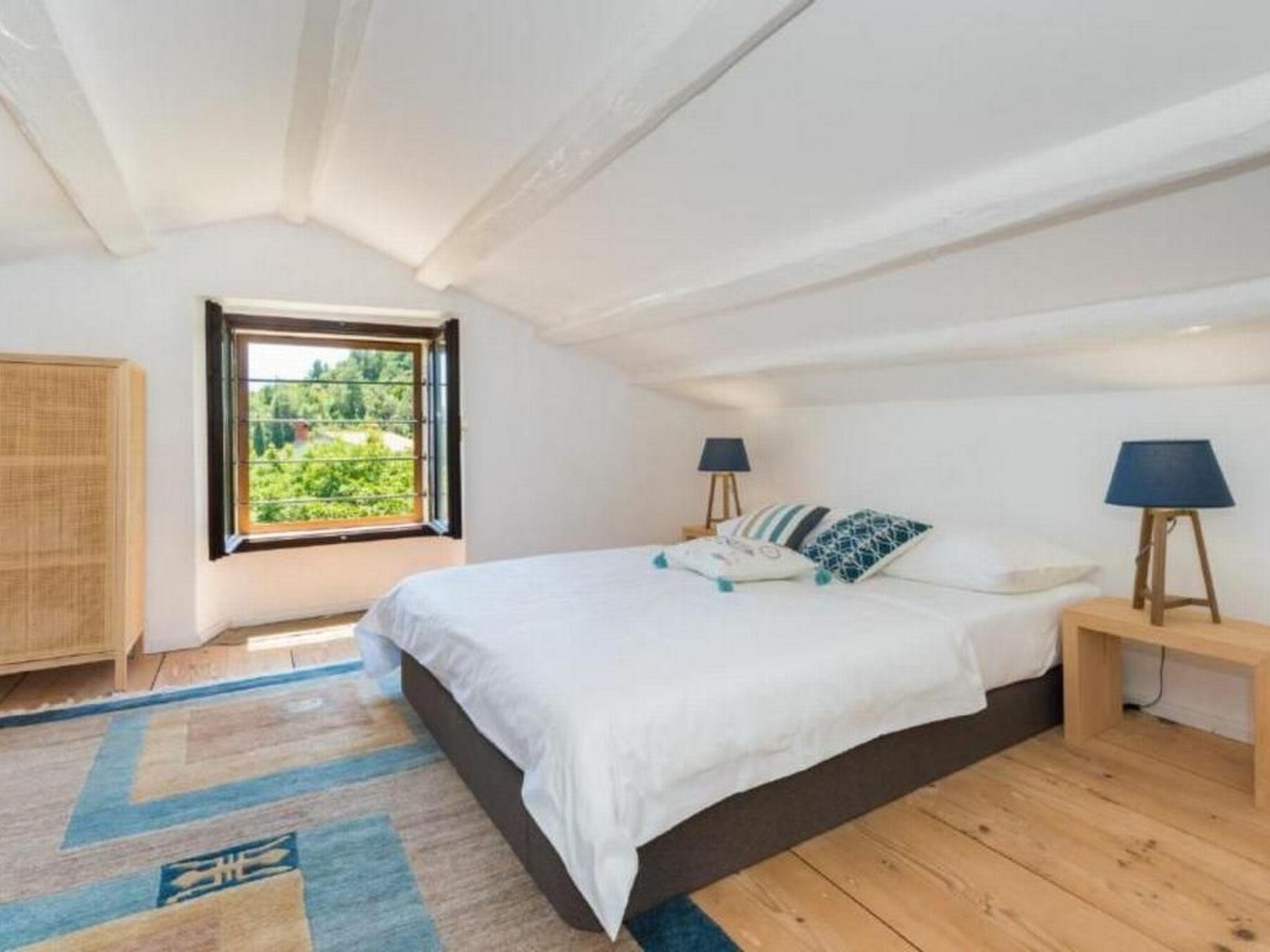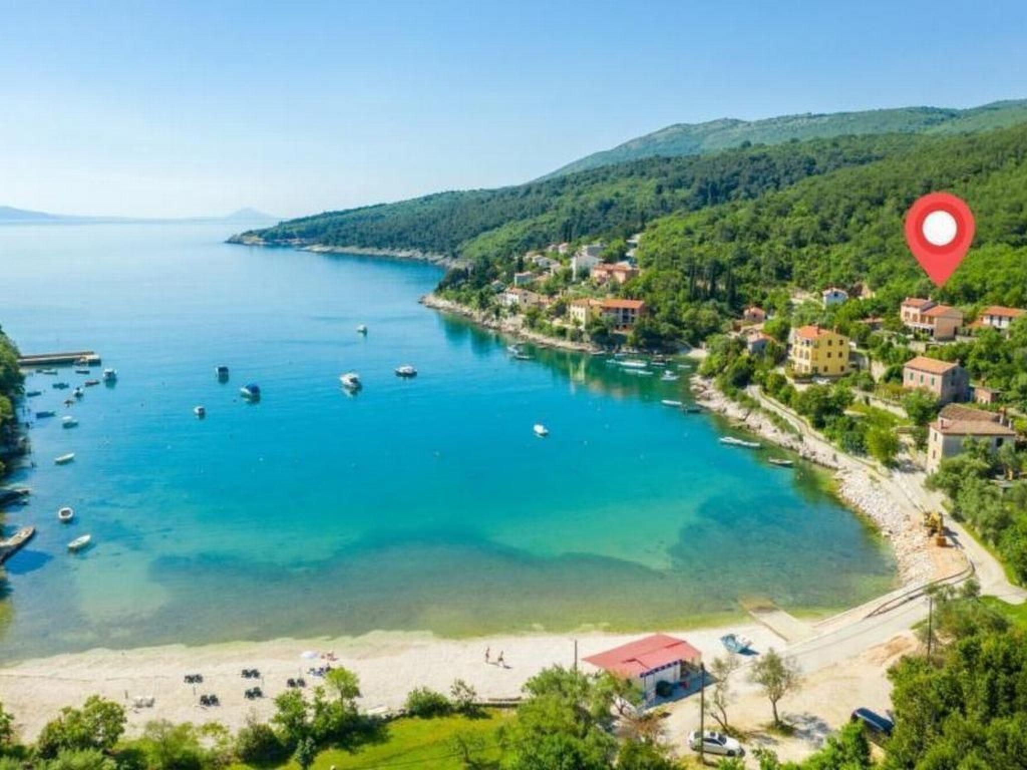 Villa Paula - your family home in Sveta Marina! Villa Paula is a uniquely positioned holiday home in the middle of the village, so to speak in the old core. In 2017 the house was completely renovated and equipped with all the amenities that make for a relaxing and luxurious holiday. Spacious outdoor terraces and well-kept lawns, covered barbecue and cooking area with open fireplace, sufficient parking space directly at the house, 4 comfortable bedrooms, each with sea view, 4 bathrooms, a large, modern kitchen with sea view, living room with fireplace and sea view. The combination of traditional architecture with modern comfort is the great specialty of this house. In the holiday home you can expect comfortably furnished interiors that extend from the ground floor, first floor to the attic (sloping roof to 100 cm). A well-tended garden with Mediterranean trees and well-tended lawn precedes the living rooms. Behind the house you will find a beautiful olive grove. The location by the sea, with a view of the Kvarner Bay, the island of Cres and Losinj is terrific, uninterrupted views as far as Rijeka. The house has a rare, very pleasant charm that infects you, that never tires you and always surprises you. It is a pleasure to be in and around the house. Simply ideal to relax and unwind. The best way to relax from the summer heat is to jump into the crystal clear water. The beach is below the house. The house has its own "plaza", a concrete decking platform right on the coast (not exclusive, as beaches in Croatia must always be open to the public). The large public beach of the village is less than 3 minutes walk from the house, also directly under the property. A supermarket and restaurants are located just 350 meters from the house. In a few minutes you can actually walk to everything you need on vacation. The car can stand still…. The region also has a lot to offer in terms of cuisine. We are happy to give you appropriate recommendations on our highlights. There is something for every taste and almost every budget. The town of Labin, about a 10-minute drive away, is the hub of the area. A visit to the historic old town with its churches, narrow streets, shops, museums, galleries, bars and restaurants is always worth a trip. In the city market you can experience the hustle and bustle of the regional sellers, there is fresh local produce, excellent meat and sensational fish. The picturesque harbor town of Sveta Marina is located in the Kvarner Bay. This part of Istria is known for its Mediterranean climate, its subtropical vegetation and its unique, unspoiled nature. Sveta Marina is located at the foot of the Ucka massif. The seaside resort of Opatija, which was appreciated by Austrian emperors at an early age, is approx. 40 km to the east, approx. 40 km to the west is the coastal town of Pula with its famous amphitheater, in which first-class theater / music performances take place all year round. There is also an international airport here. This small, former fishing village is far from the major tourist centers of the Istrian peninsula. Time seems to have stopped here. You can still enjoy the tranquility and the original Istria, in its best purity. Sveta Marina lives from its simple simplicity, its still preserved, original character. The few old houses testify to the historical history of Croatia. And yet you will find amenities such as a supermarket, restaurants, bars, ice cream parlors, diving schools, a campsite, SUP and boat rental. Without exaggerating, we can say that the water is “crystal clear”. Kvarner Bay is known for its cleanliness and biodiversity. It is not uncommon to see dolphins here - not only on the open sea, but also in the immediate vicinity of the coast, with the naked eye. Playing and playing the dolphins is always a pleasure that cannot be forgotten. The beach in the village is still not overcrowded, you never have to fear that you can no longer "put a towel in between". A few minutes walk and you will always find a quiet place to devote yourself entirely to sunbathing. Along the entire coast towards Ravni, the next town in the south, there is a road directly along the sea, past picturesque empty bays. All subsequent bays around Sveta Marina can be easily reached on foot. Sveta Marina is not only predestined for pure relaxation. Sports addicts also get their money's worth here. Diving, Cycling, swimming or surfing.....