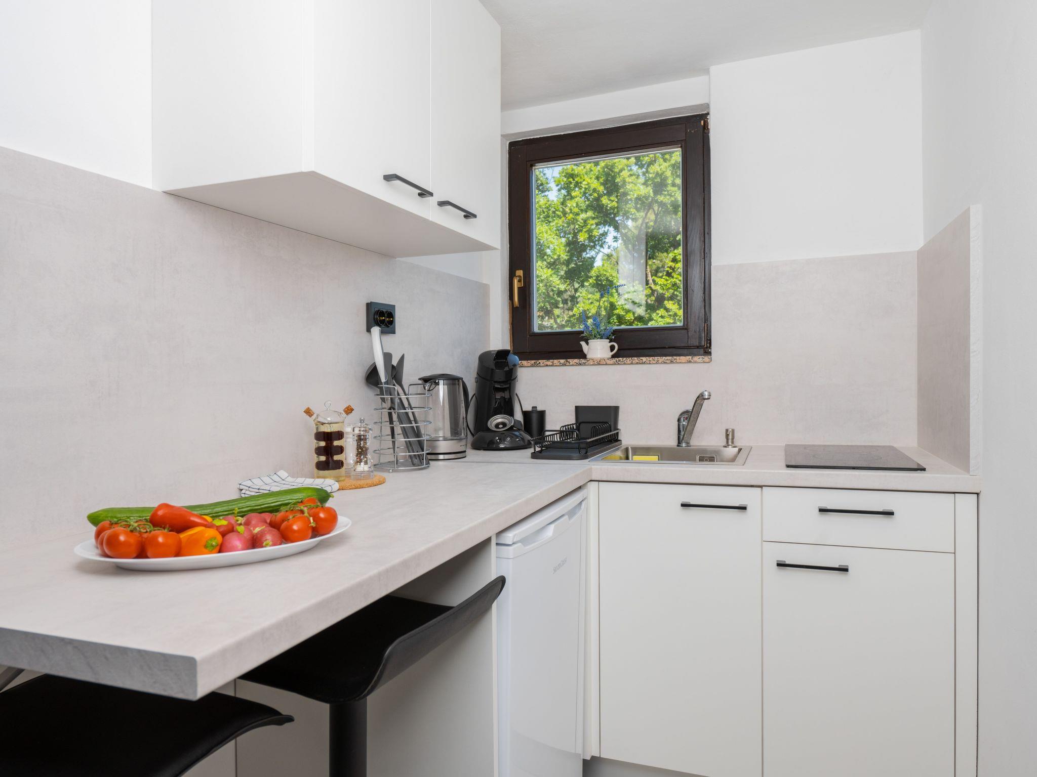 All rooms were completely renovated and modernised at the beginning of 2023. They are air-conditioned and have free WiFi. The rooms are equipped with a box-spring bed, a SMART TV, a fully equipped kitchen, a private bathroom with a shower and free toiletries. The windows and balcony/terrace doors are fitted with mosquito nets. From the rooms you can enjoy a unique view of the island of Cres.